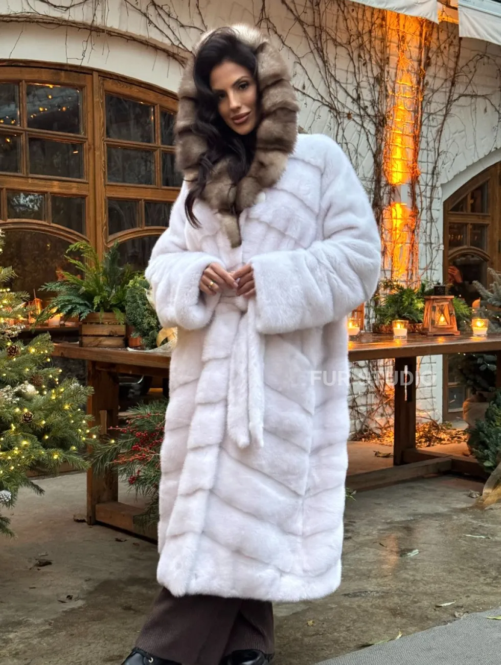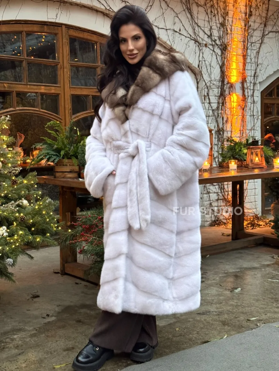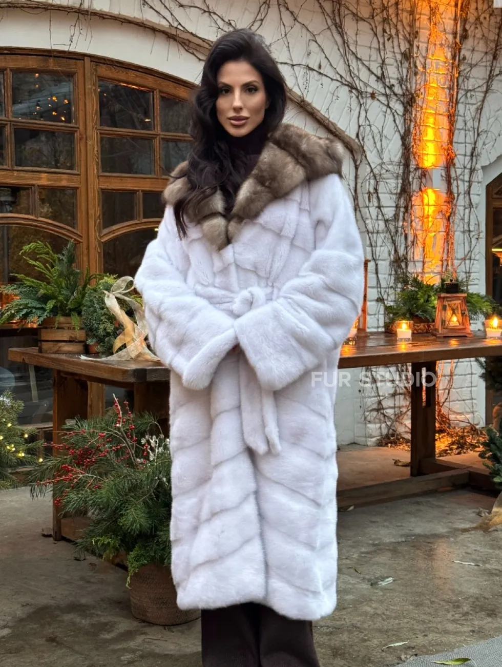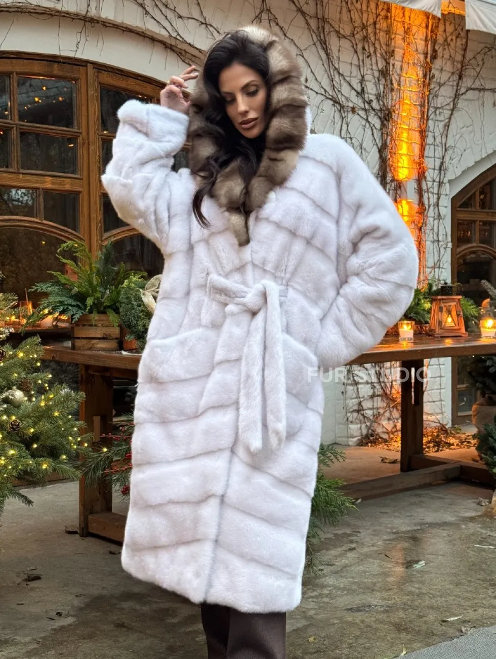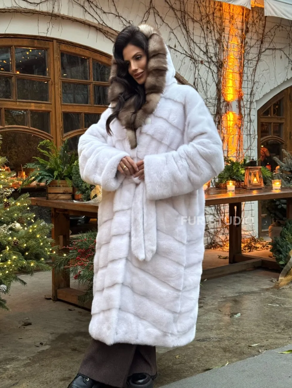 Длинная белая норковая шуба с капюшоном из натурального меха куницы "Каменка" доступна для покупки в нашем шоуруме Furs Studio в Чите. У нас так же есть доставка во все города России. Добавьте немного роскоши в свой гардероб с этой шубой, которая будет служить вам многие годы.