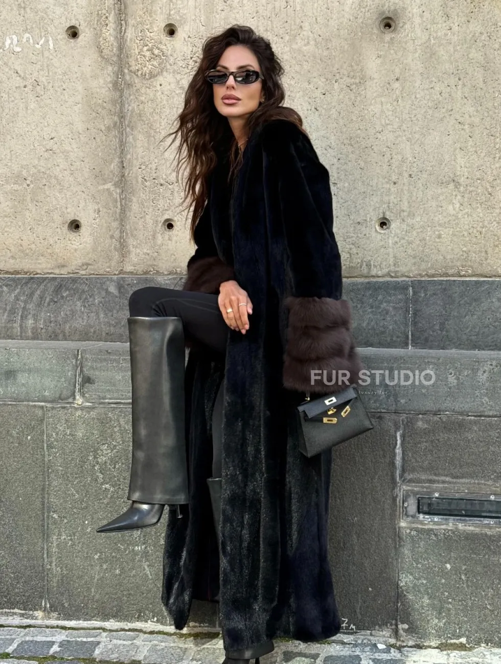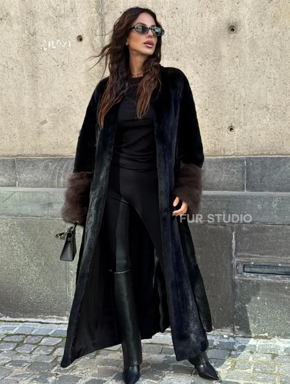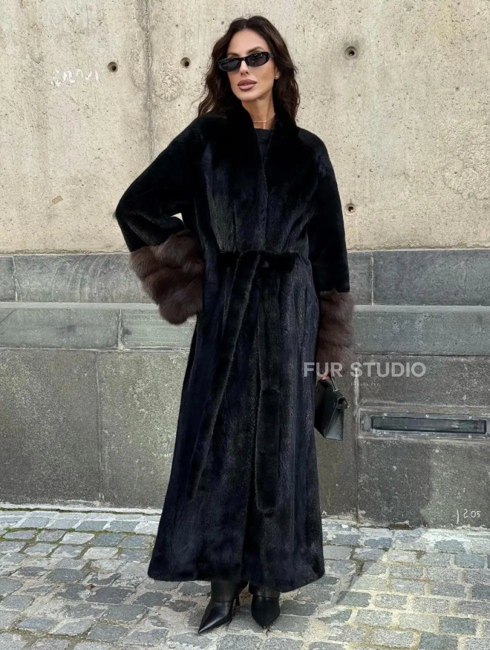Длинная черная норковая шуба с манжетами из меха куницы доступна для покупки в нашем шоуруме Furs Studio в Чите. У нас так же есть доставка во все города России. Добавьте немного роскоши в свой гардероб с этой шубой, которая будет служить вам многие годы.