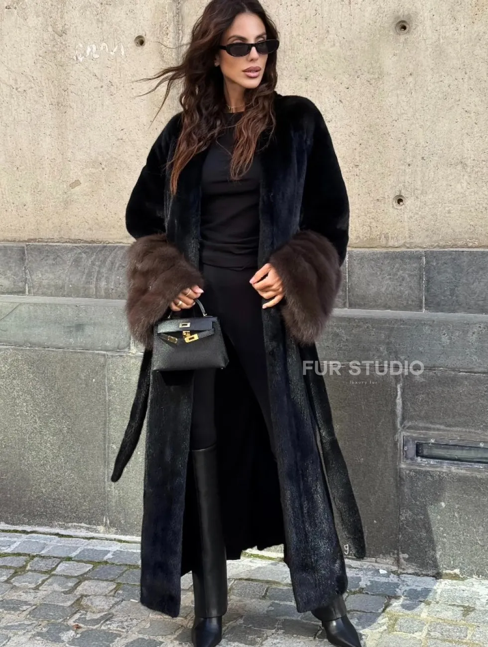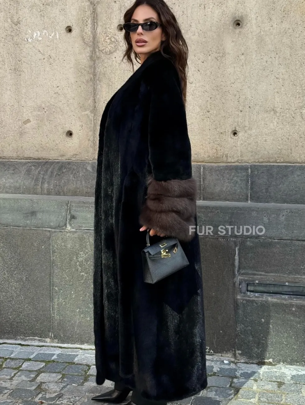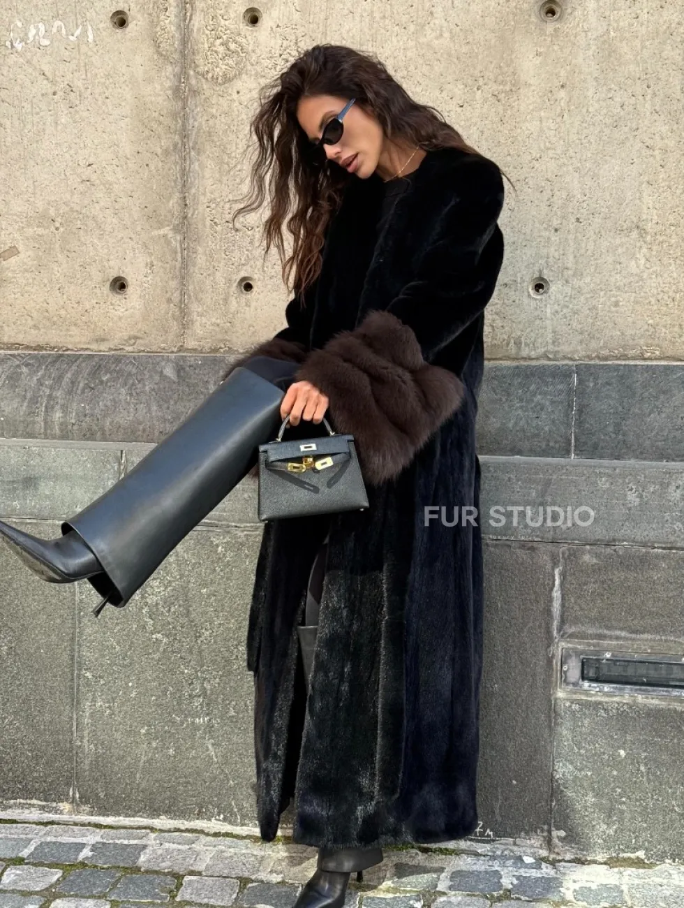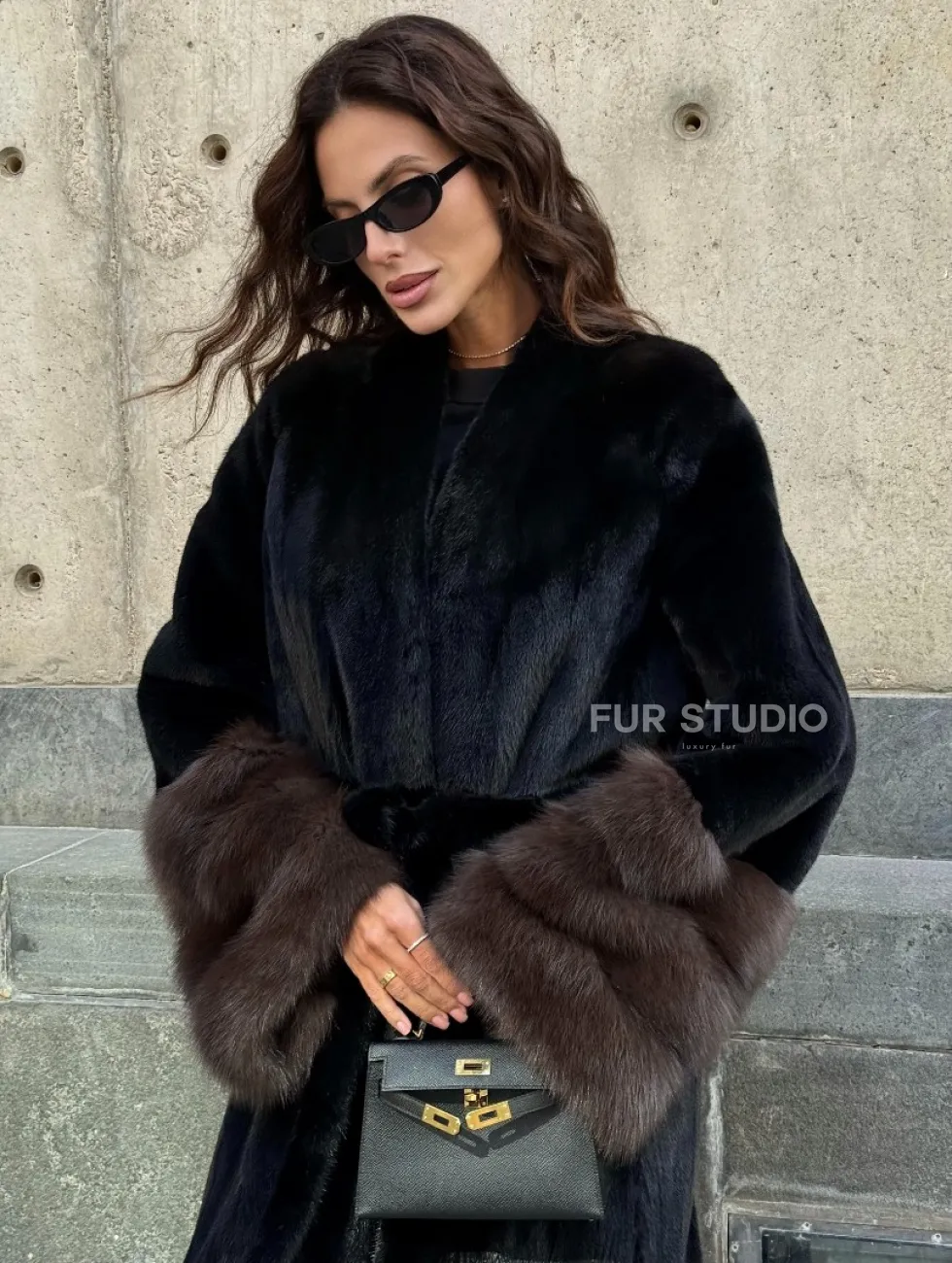 Длинная черная норковая шуба с манжетами из меха куницы доступна для покупки в нашем шоуруме Furs Studio в Чите. У нас так же есть доставка во все города России. Добавьте немного роскоши в свой гардероб с этой шубой, которая будет служить вам многие годы.