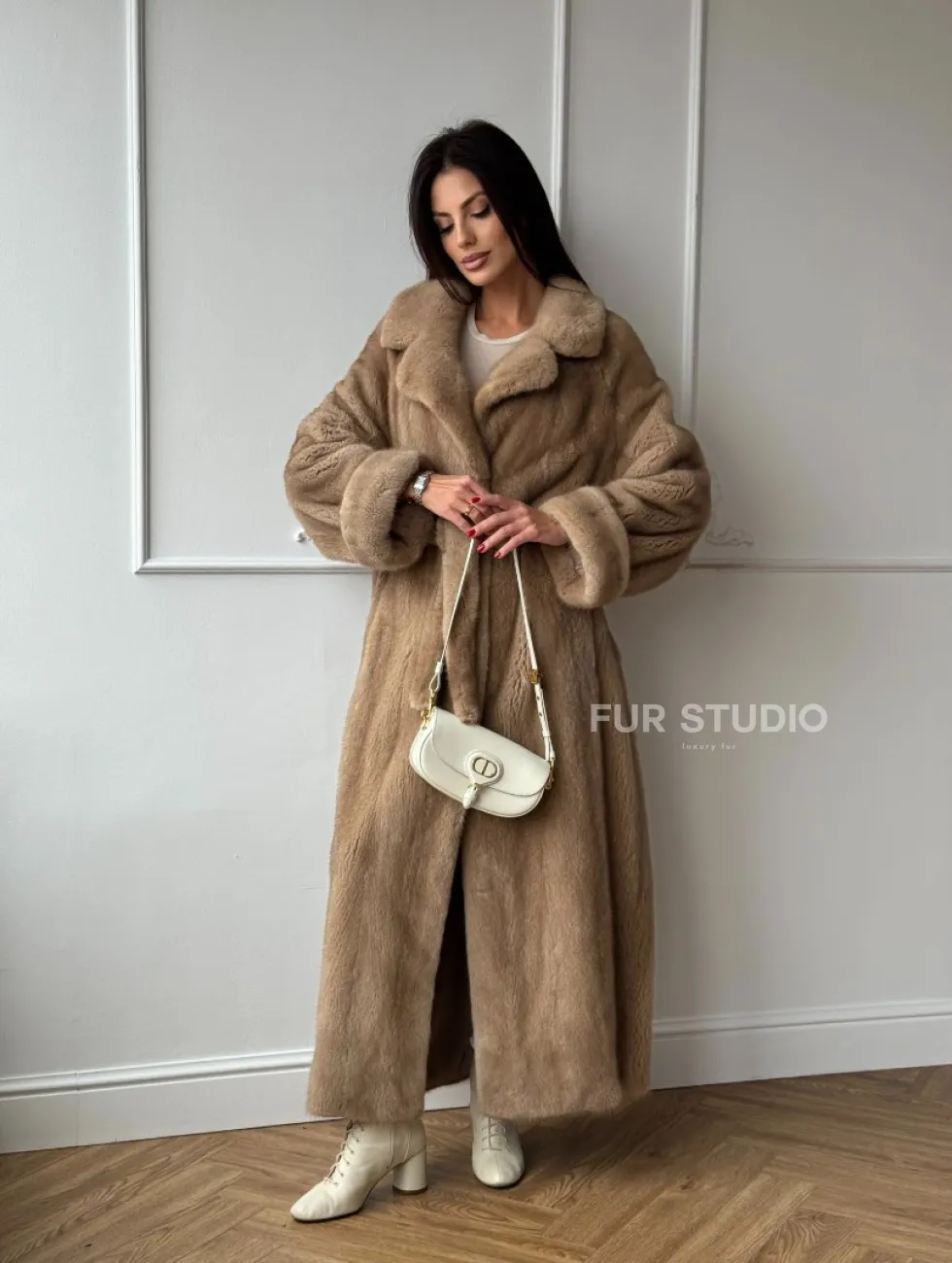 Длинная модная шуба кимоно из меха скандинавской норки со шлицей доступна для покупки в нашем шоуруме Furs Studio в Чите. У нас так же есть доставка во все города России. Добавьте немного роскоши в свой гардероб с этой шубой, которая будет служить вам многие годы.