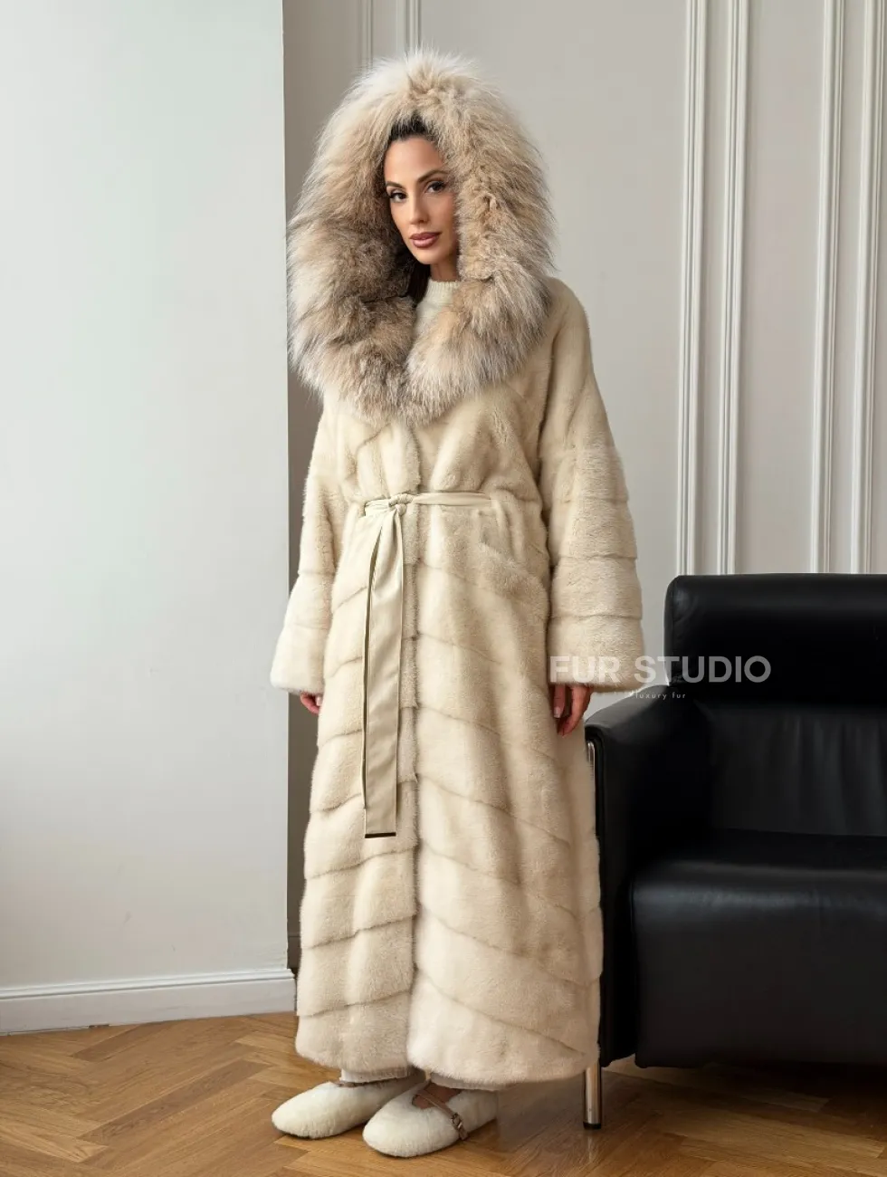 Длинная норковая шуба - капюшон из меха рыси доступна для покупки в нашем шоуруме Furs Studio в Чите. У нас так же есть доставка во все города России. Добавьте немного роскоши в свой гардероб с этой шубой, которая будет служить вам многие годы.