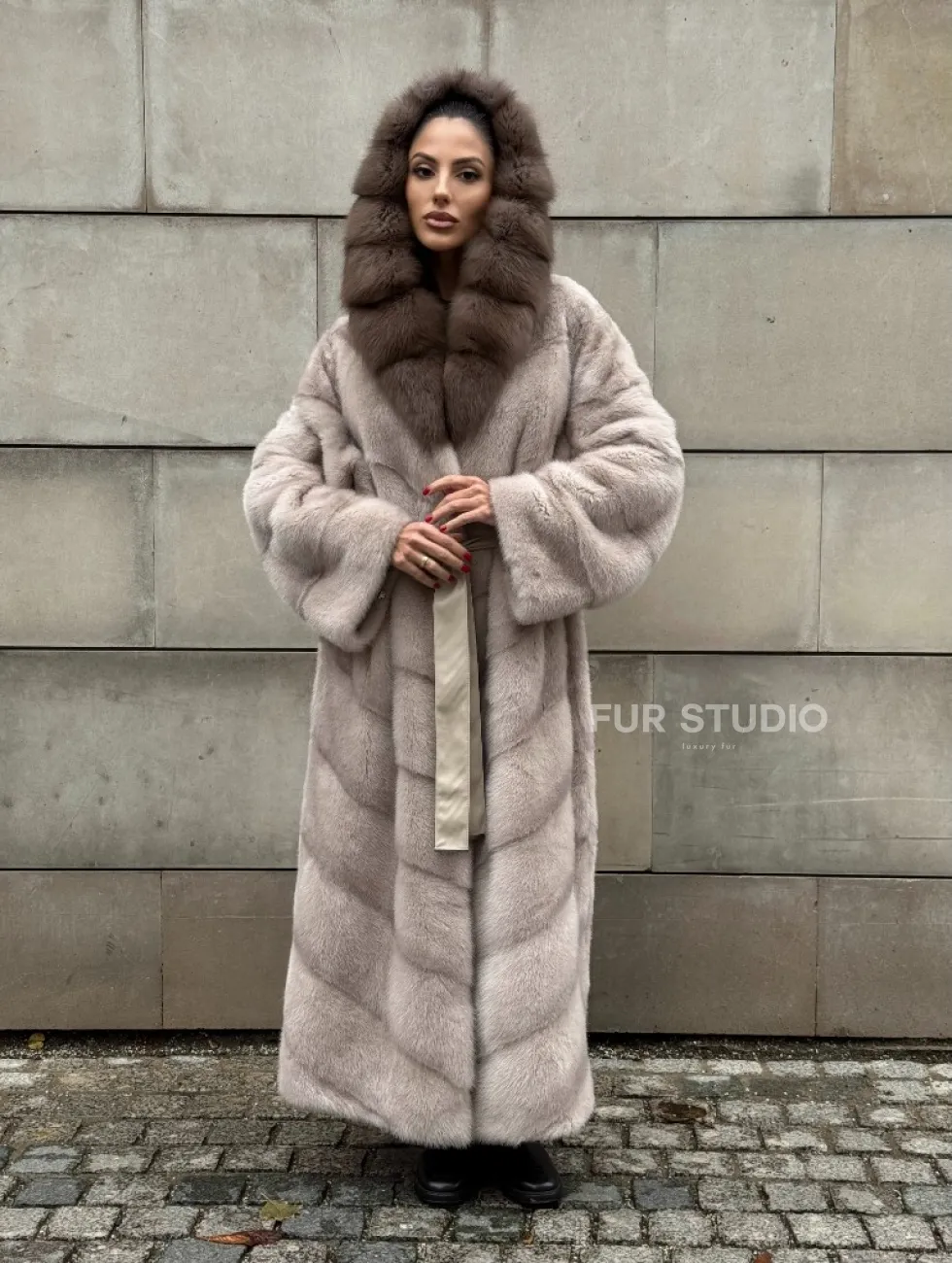 Длинная норковая шуба прямого кроя с капюшоном из меха куницы доступна для покупки в нашем шоуруме Furs Studio в Чите. У нас так же есть доставка во все города России. Добавьте немного роскоши в свой гардероб с этой шубой, которая будет служить вам многие годы.