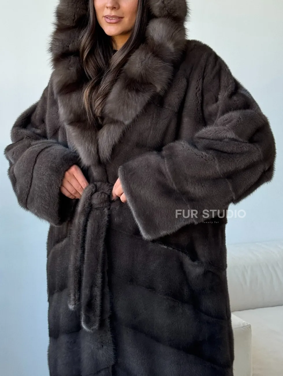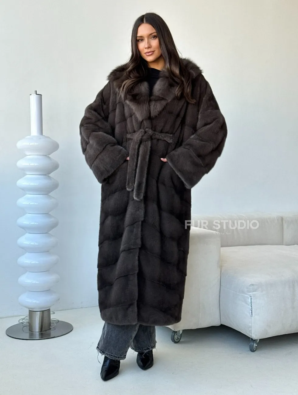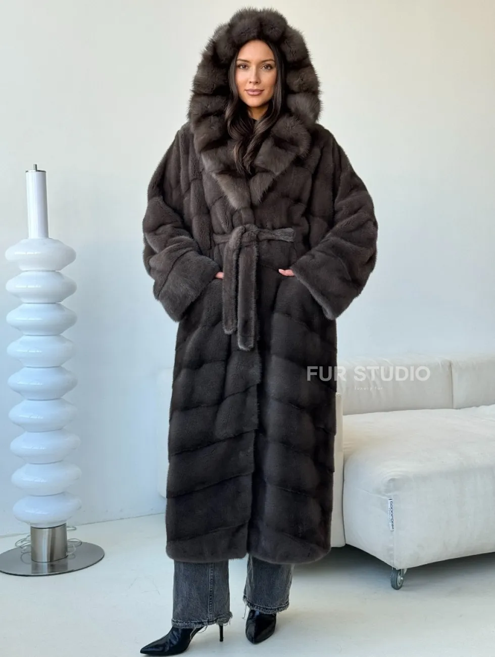 Длинная норковая шуба с капюшоном - графит доступна для покупки в нашем шоуруме Furs Studio в Чите. У нас так же есть доставка во все города России. Добавьте немного роскоши в свой гардероб с этой шубой, которая будет служить вам многие годы.
