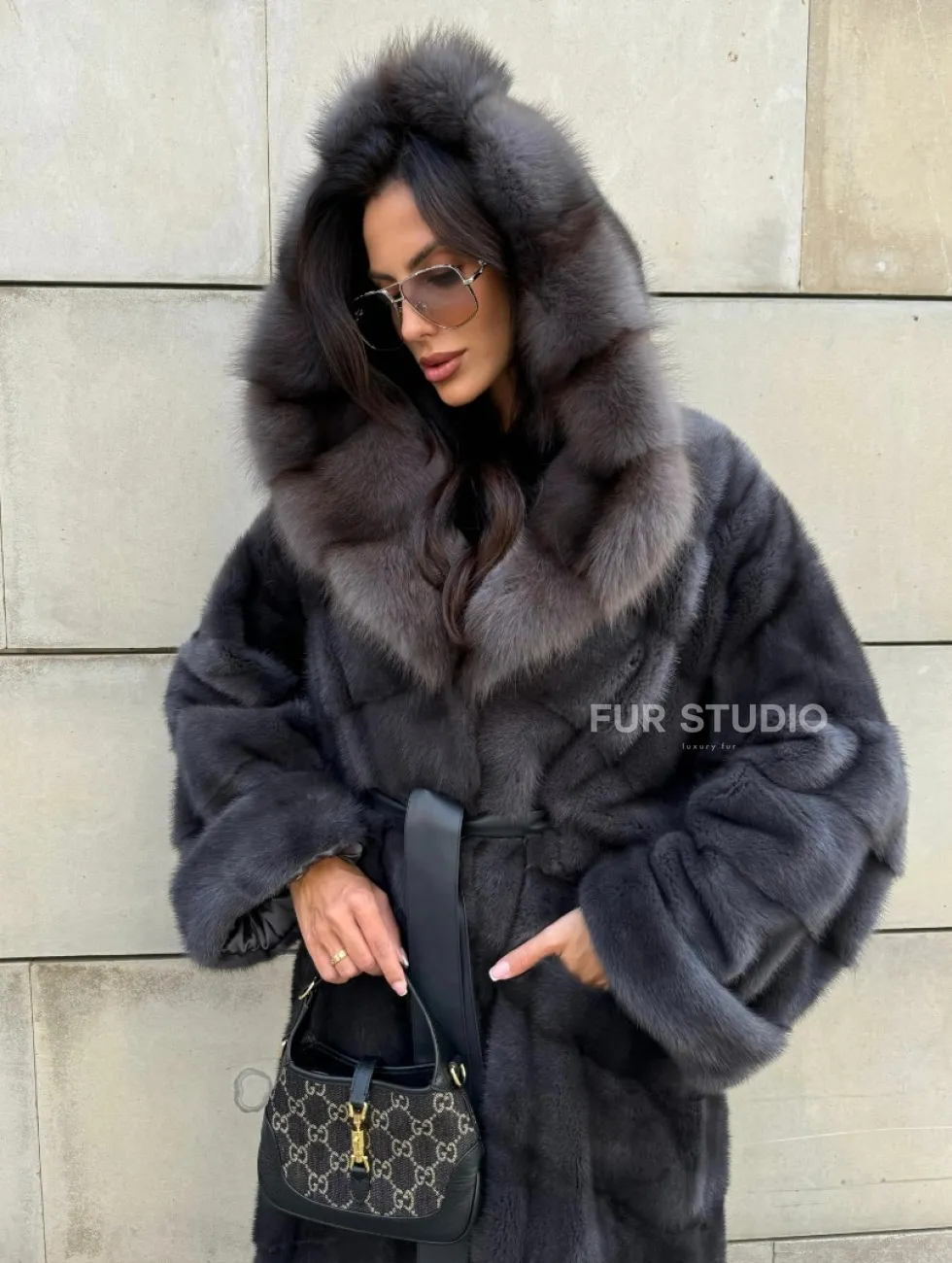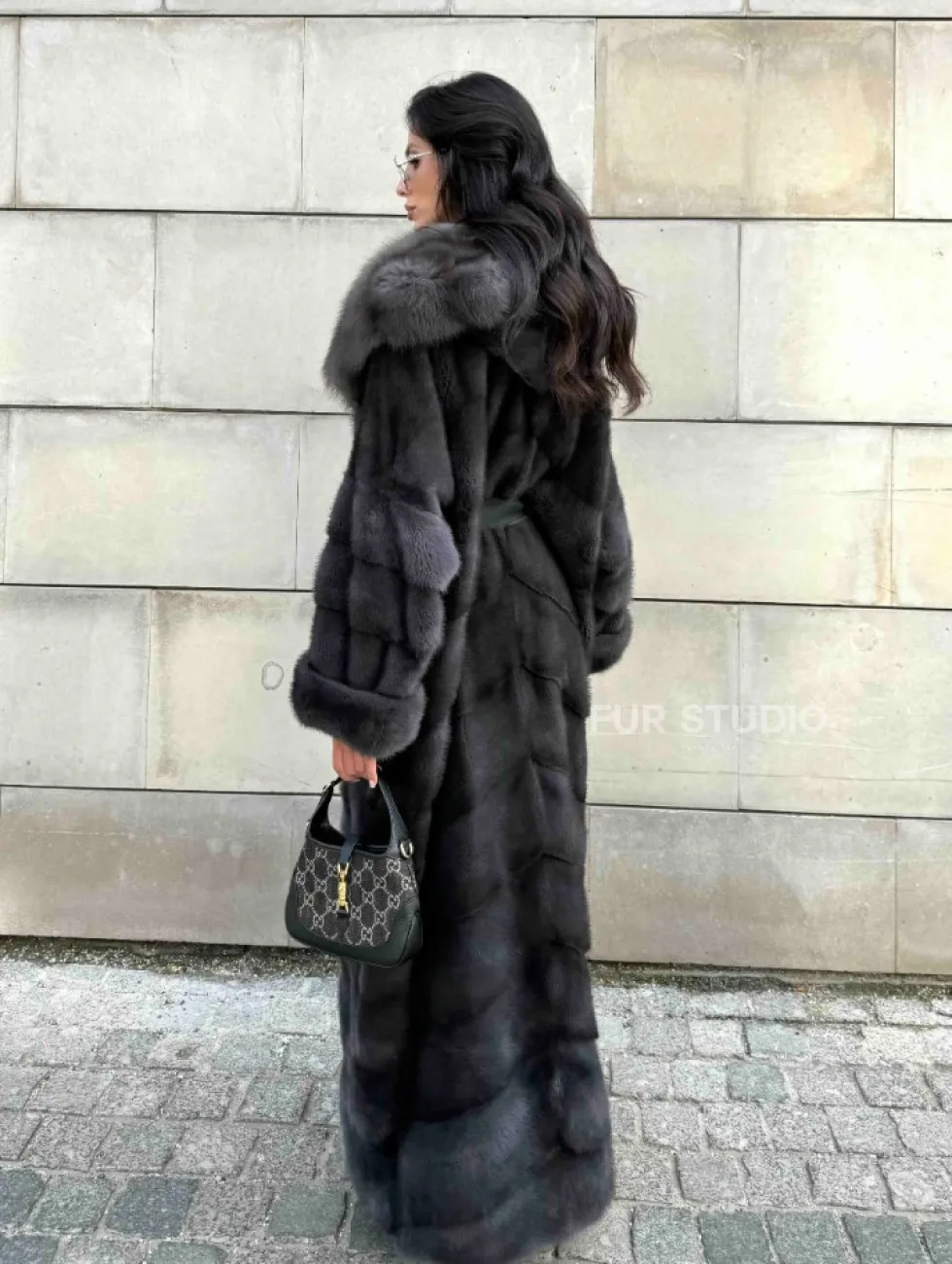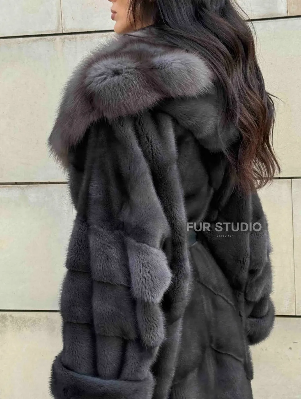Длинная норковая шуба с капюшоном из меха куницы - цвет графит доступна для покупки в нашем шоуруме Furs Studio в Чите. У нас так же есть доставка во все города России. Добавьте немного роскоши в свой гардероб с этой шубой, которая будет служить вам многие годы.