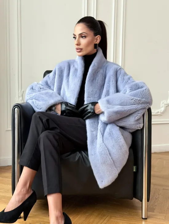 Длинная шуба из голубой скандинавской норки 102112