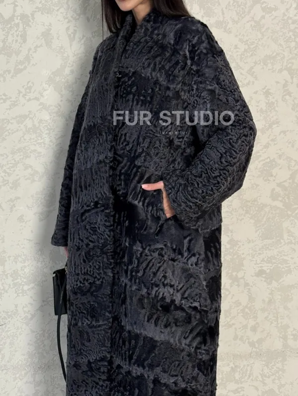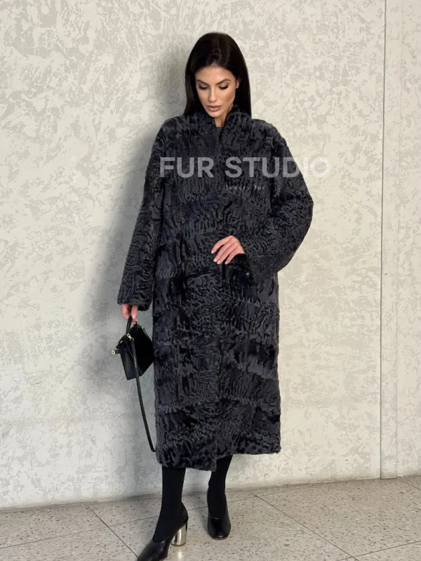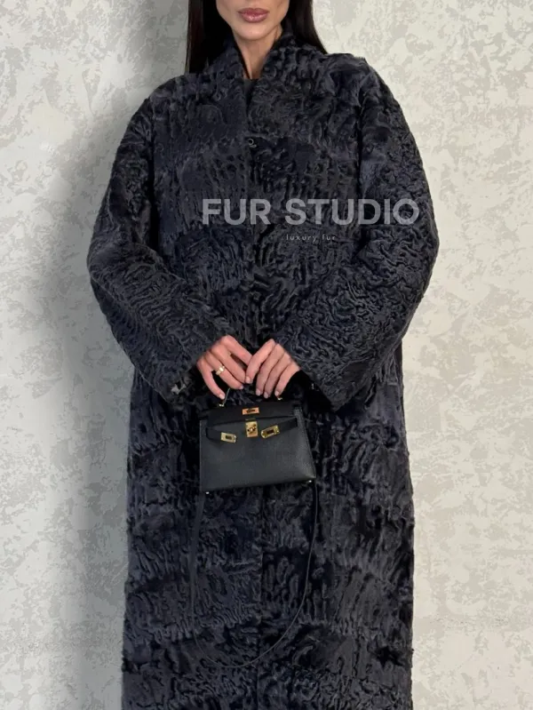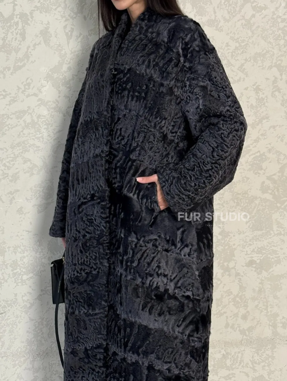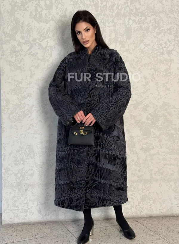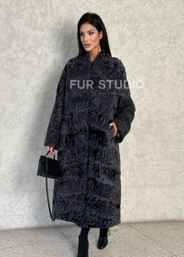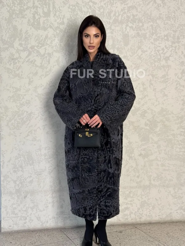 Длинная шуба из каракуля в цвете графит доступна для покупки в нашем шоуруме Furs Studio в Чите. У нас так же есть доставка во все города России. Добавьте немного роскоши в свой гардероб с этой шубой, которая будет служить вам многие годы.