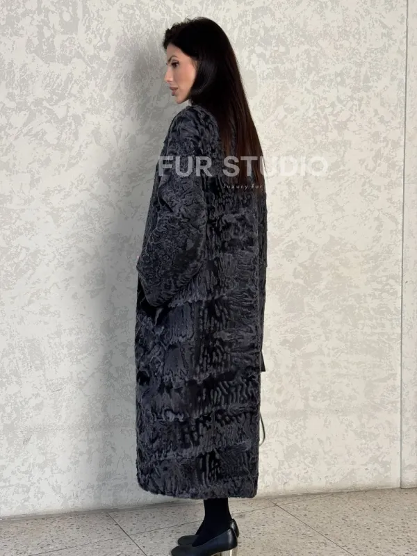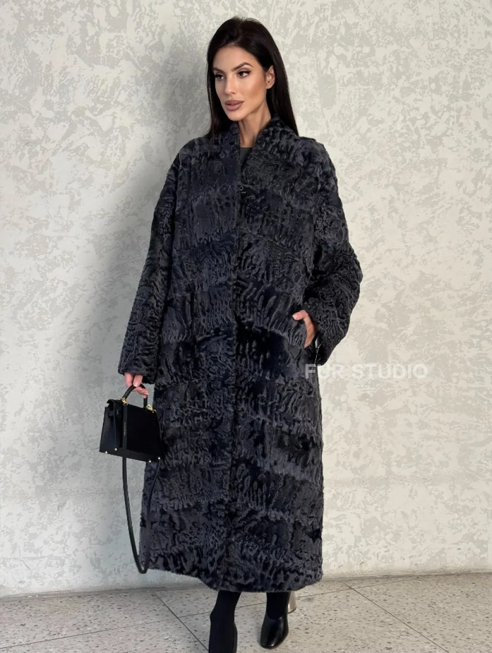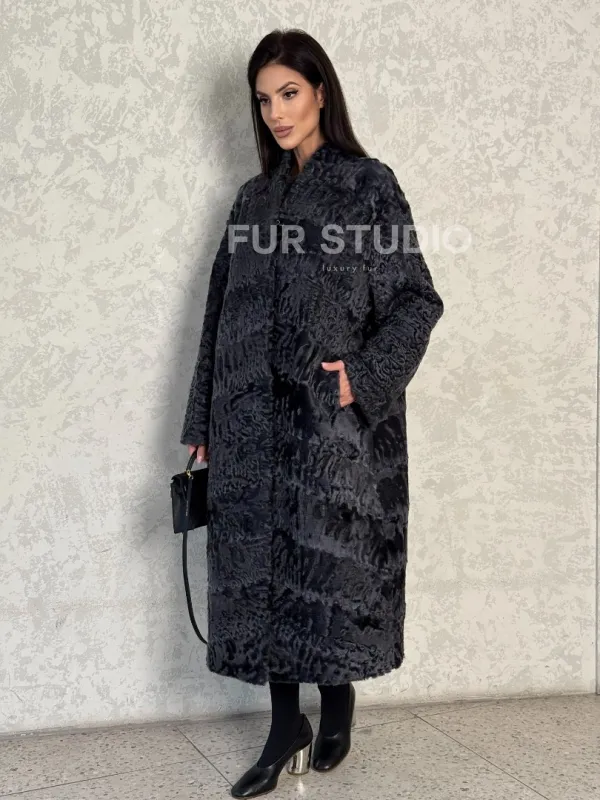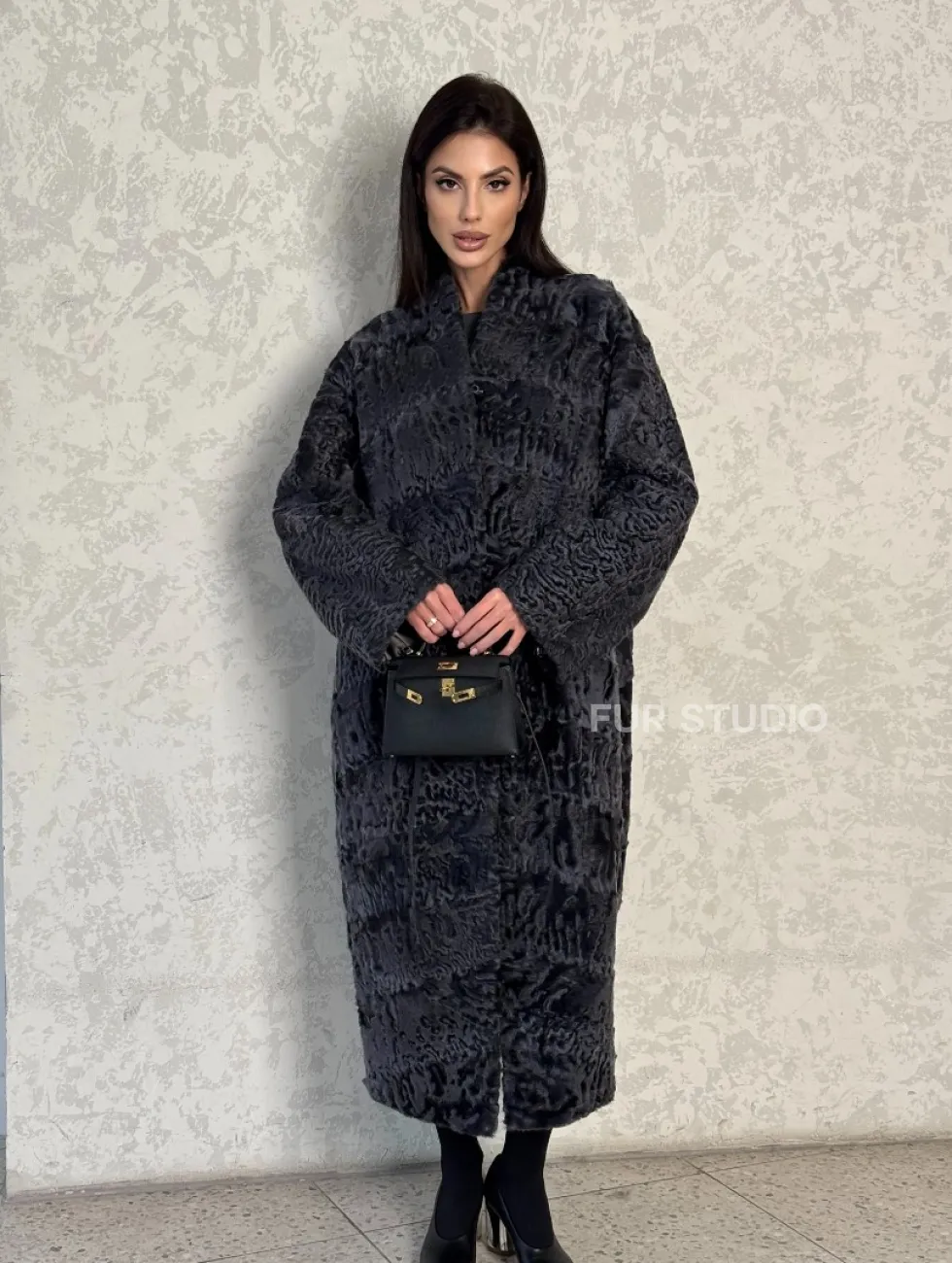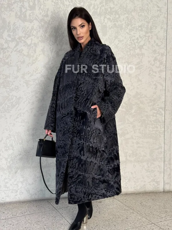 Длинная шуба из каракуля в цвете графит доступна для покупки в нашем шоуруме Furs Studio в Чите. У нас так же есть доставка во все города России. Добавьте немного роскоши в свой гардероб с этой шубой, которая будет служить вам многие годы.