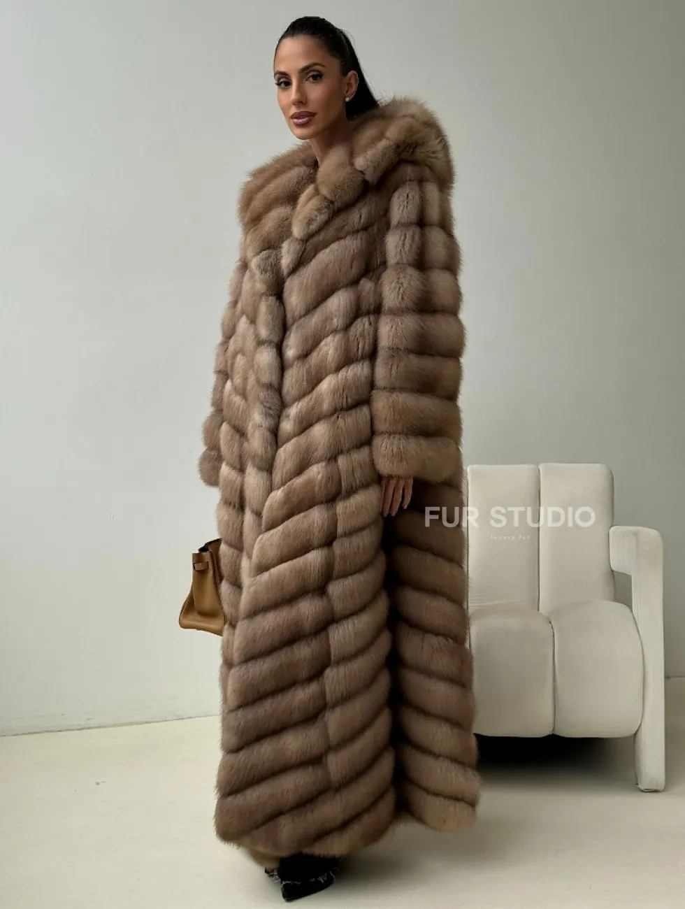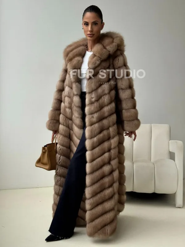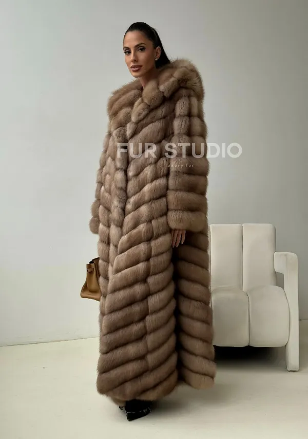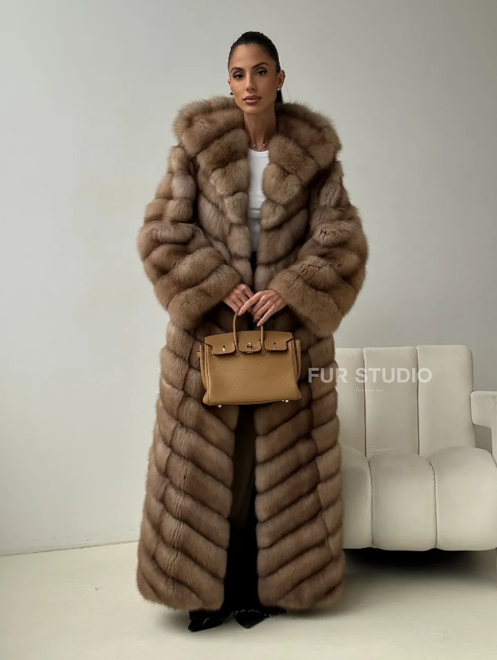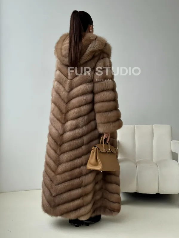 Длинная шуба из меха куницы с капюшоном доступна для покупки в нашем шоуруме Furs Studio в Чите. У нас так же есть доставка во все города России. Добавьте немного роскоши в свой гардероб с этой шубой, которая будет служить вам многие годы.