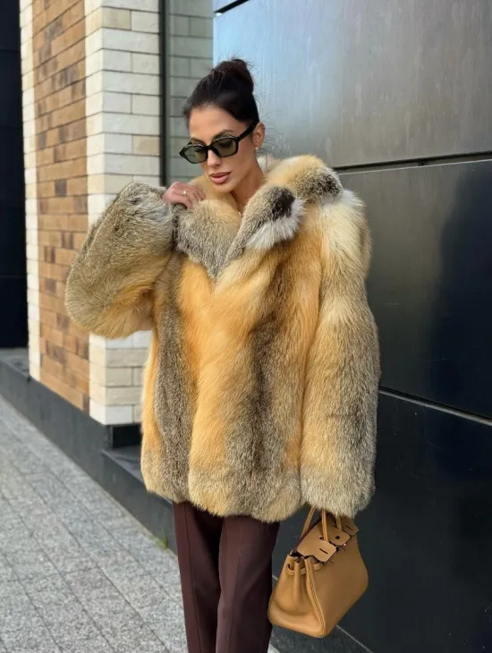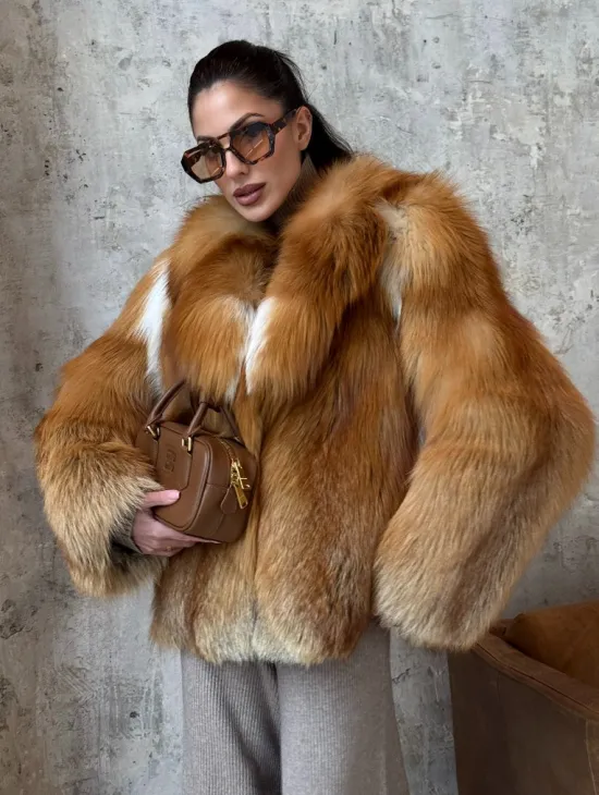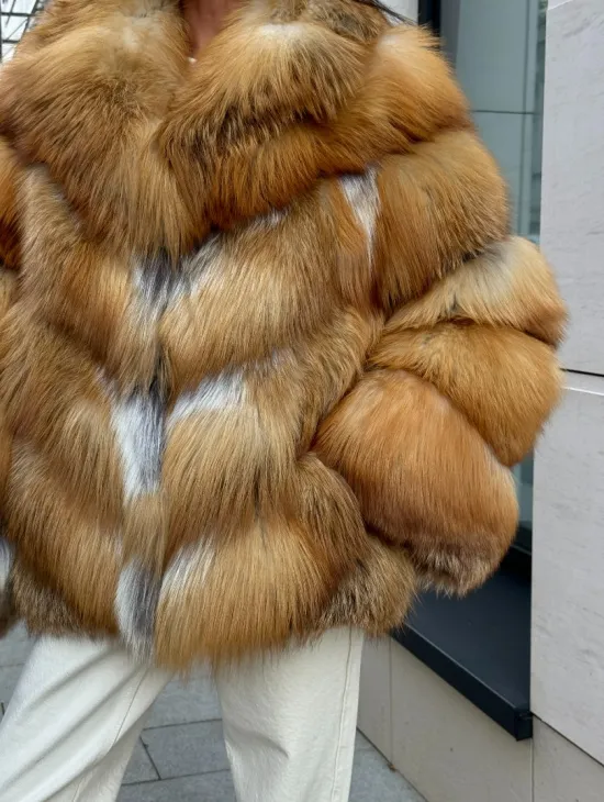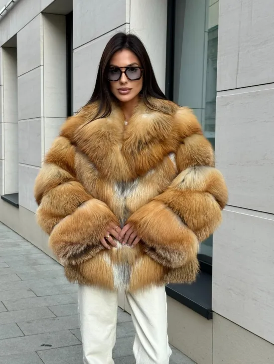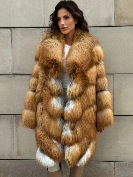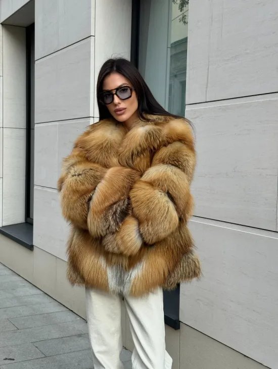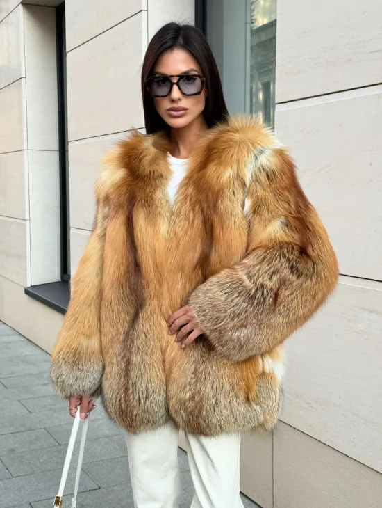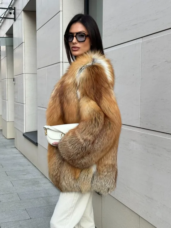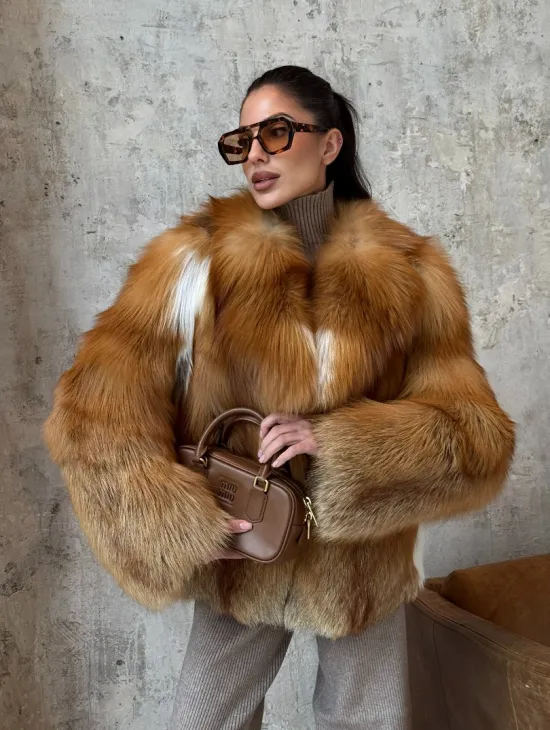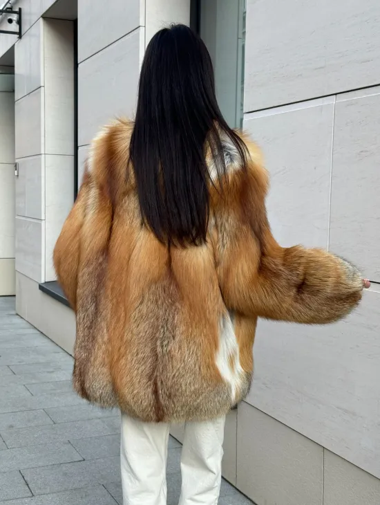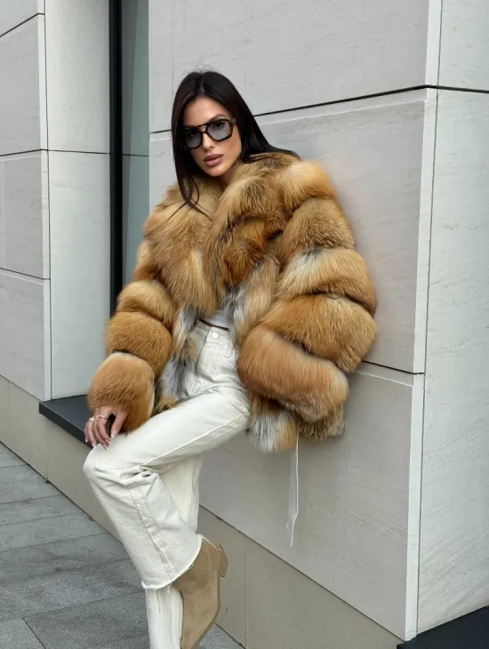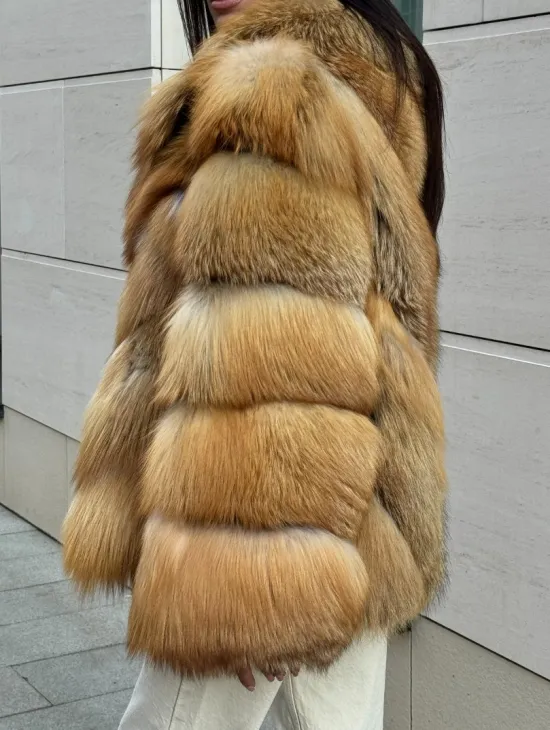 Мех данной шубы лиса, цвет рыжий. Предлагается в размерах от 40 до 50. Длина модели 115-120 см, что выгодно подчеркивает фигуру девушек. Эта модель идеально подойдет для девушек и женщин, предпочитающих роскошные натуральные меха.