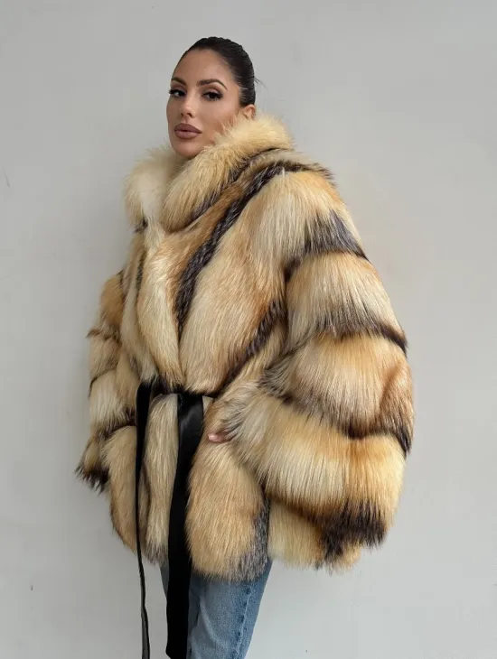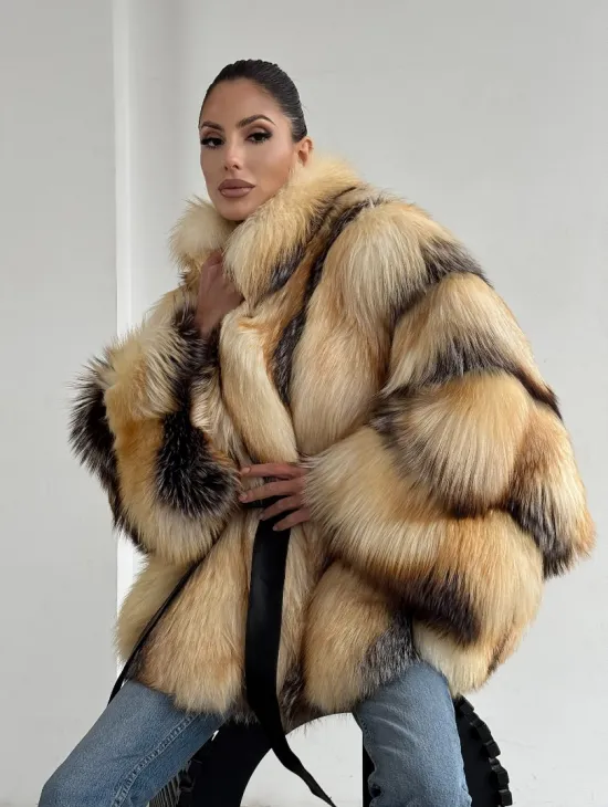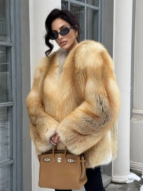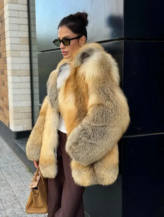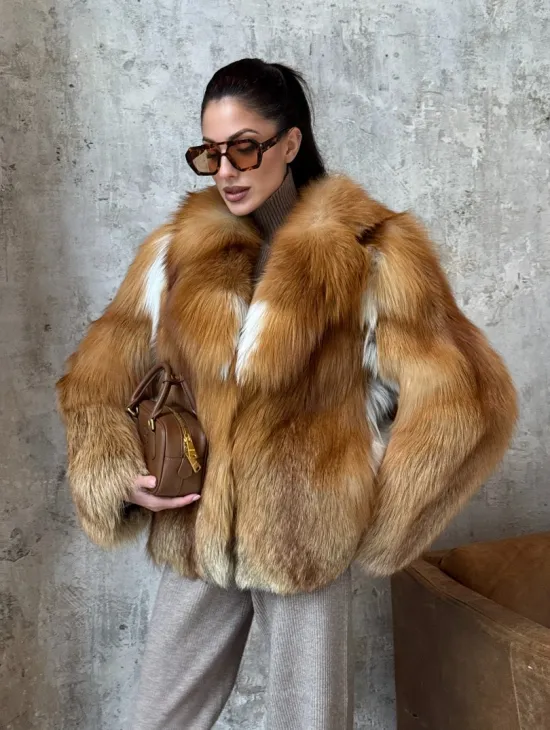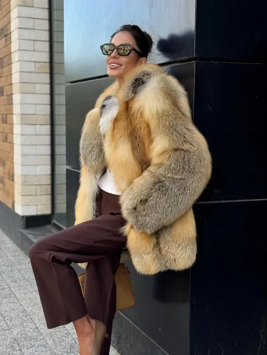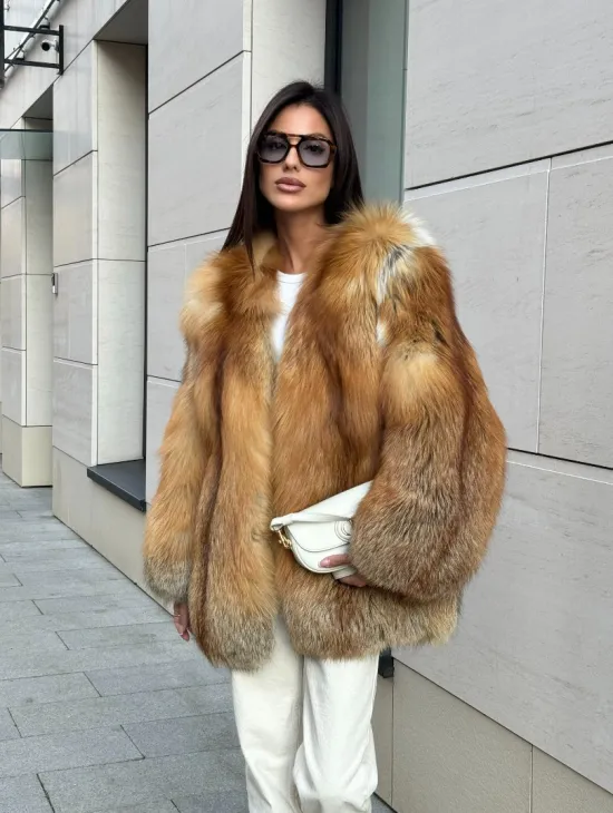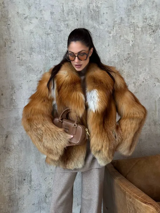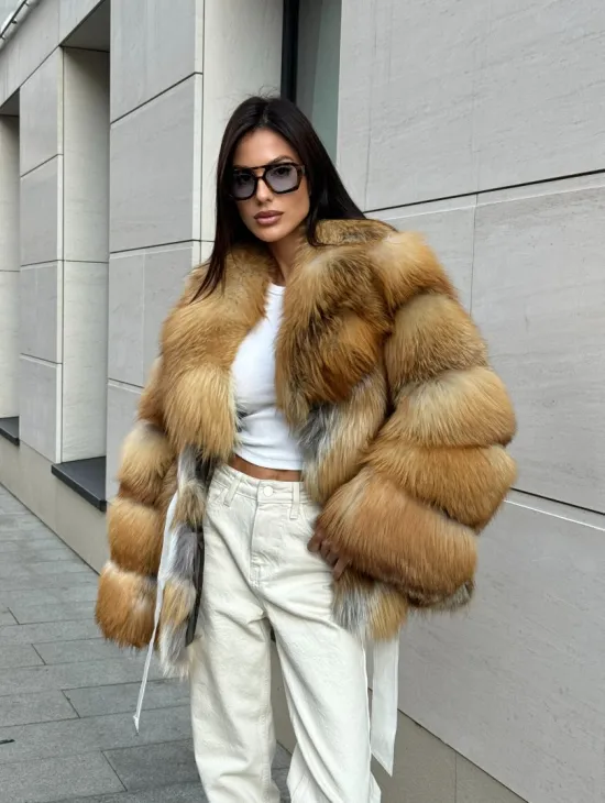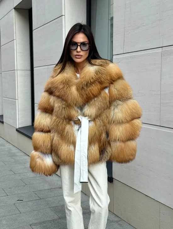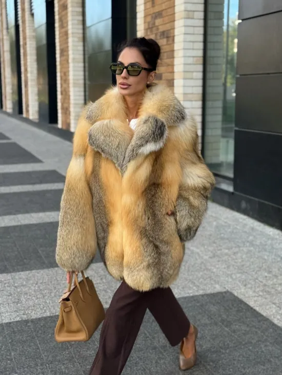 Мех данной шубы лиса, цвет рыжий. Предлагается в размерах от 40 до 50. Длина модели 115-120 см, что выгодно подчеркивает фигуру девушек. Эта модель идеально подойдет для девушек и женщин, предпочитающих роскошные натуральные меха.