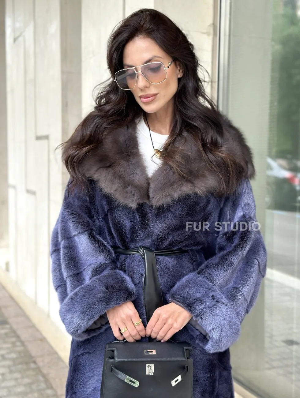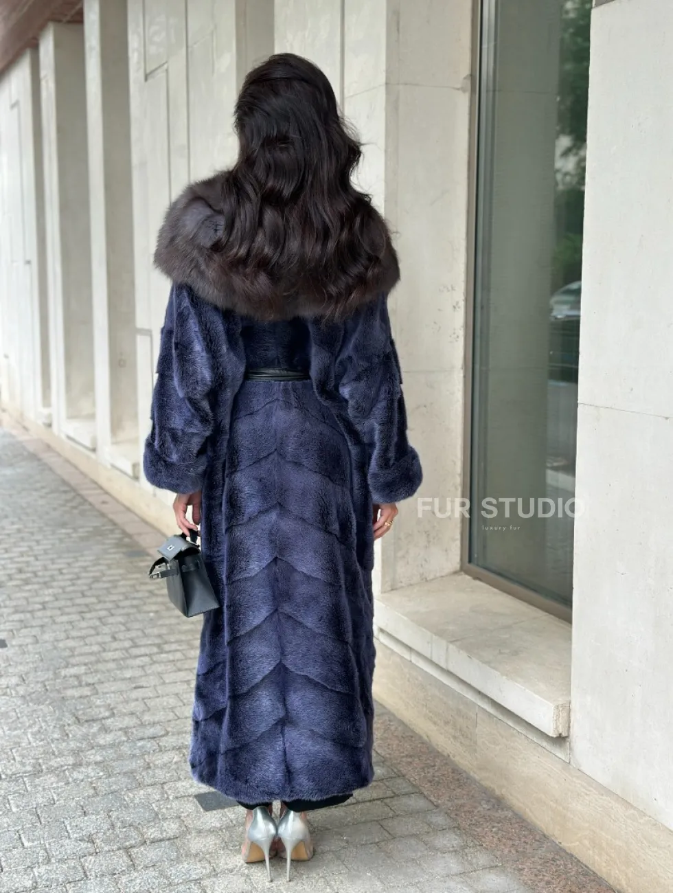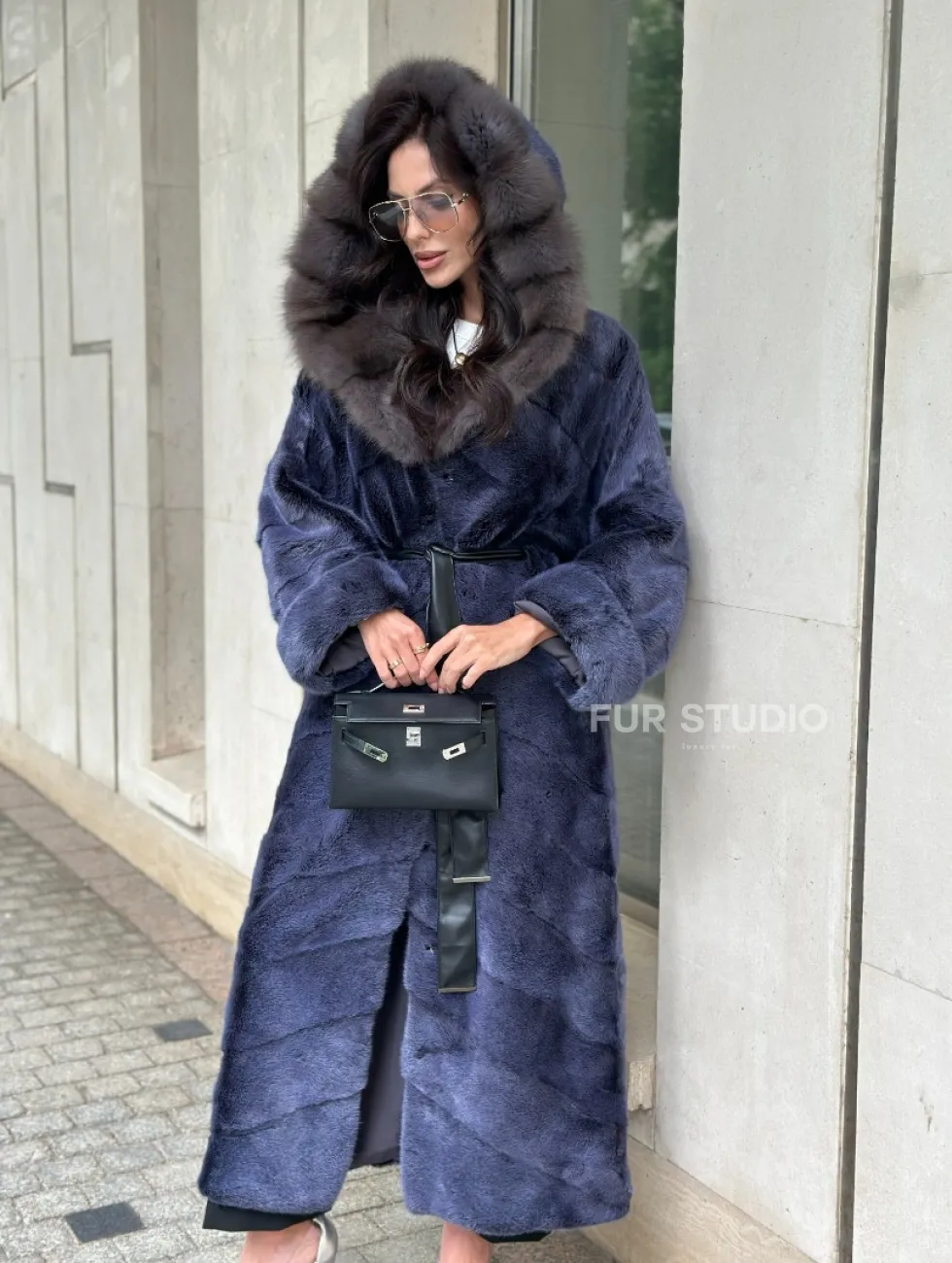 Длинная шуба из норки с капюшоном из куницы - цвет синий графит доступна для покупки в нашем шоуруме Furs Studio в Чите. У нас так же есть доставка во все города России. Добавьте немного роскоши в свой гардероб с этой шубой, которая будет служить вам многие годы.