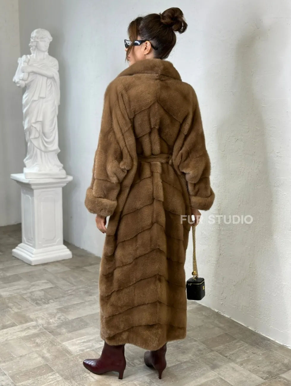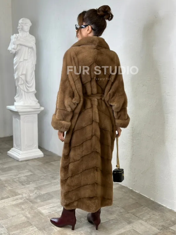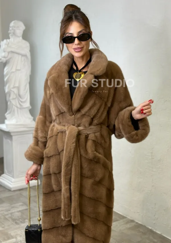 Длинная шуба карамель кимоно мех NAFA доступна для покупки в нашем шоуруме Furs Studio в Чите. У нас так же есть доставка во все города России. Добавьте немного роскоши в свой гардероб с этой шубой, которая будет служить вам многие годы.