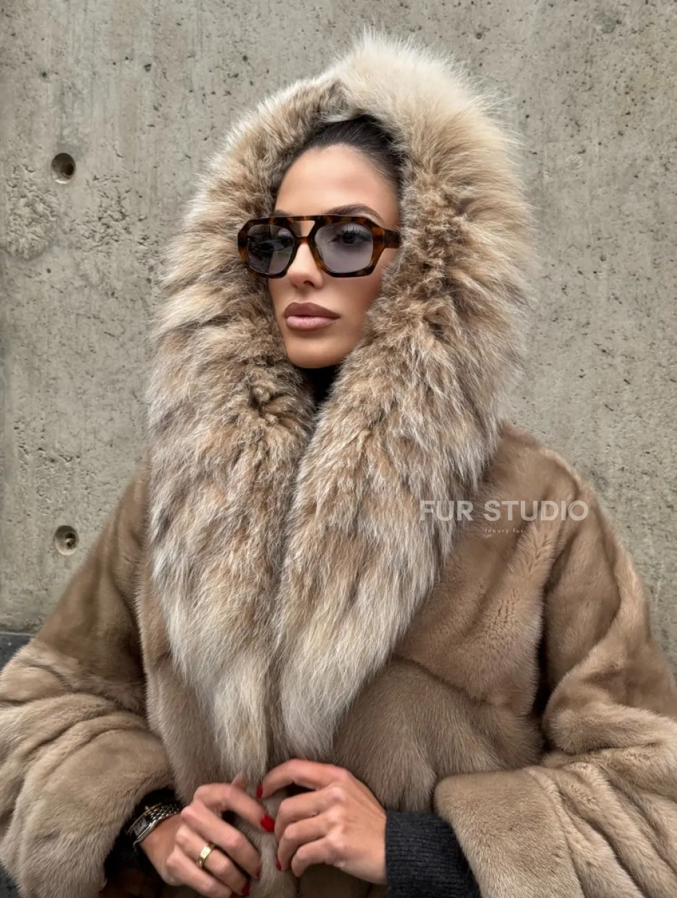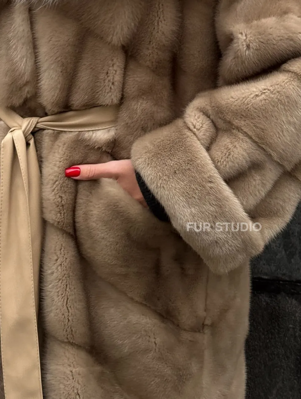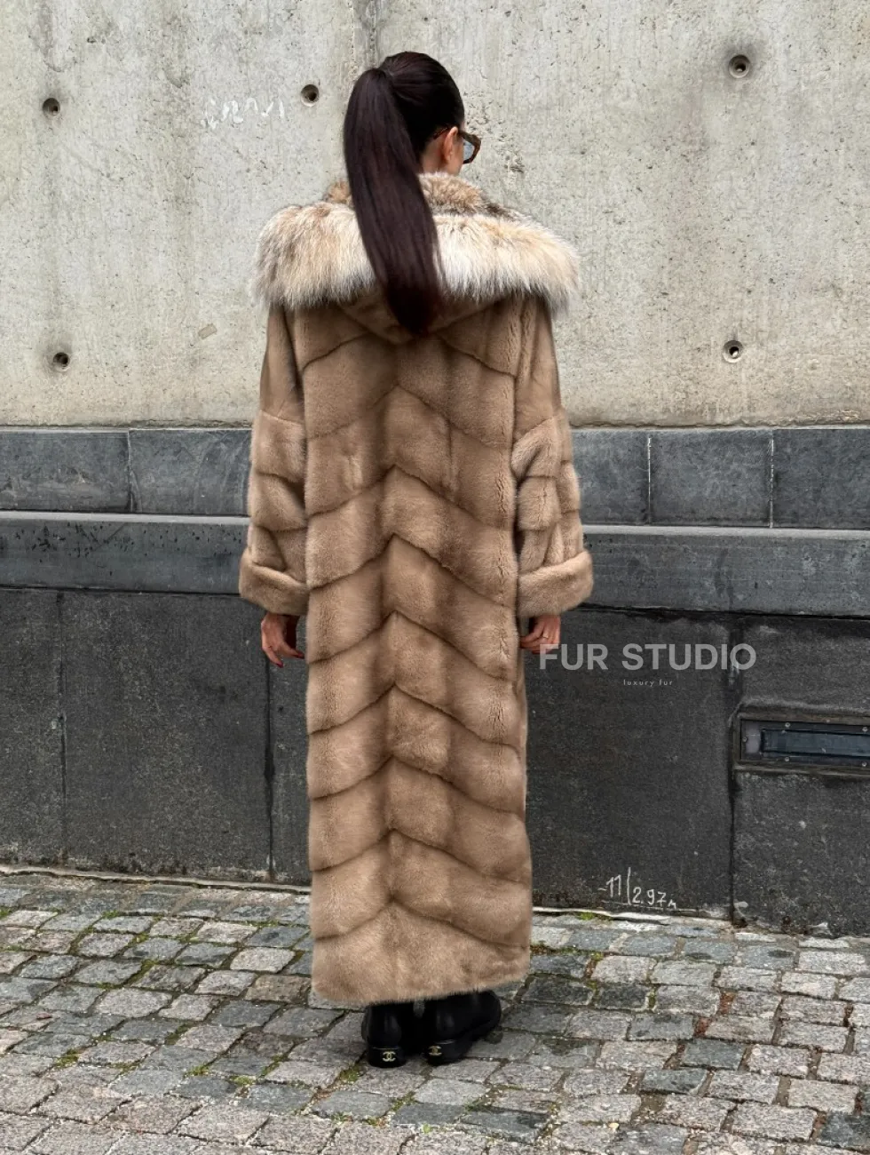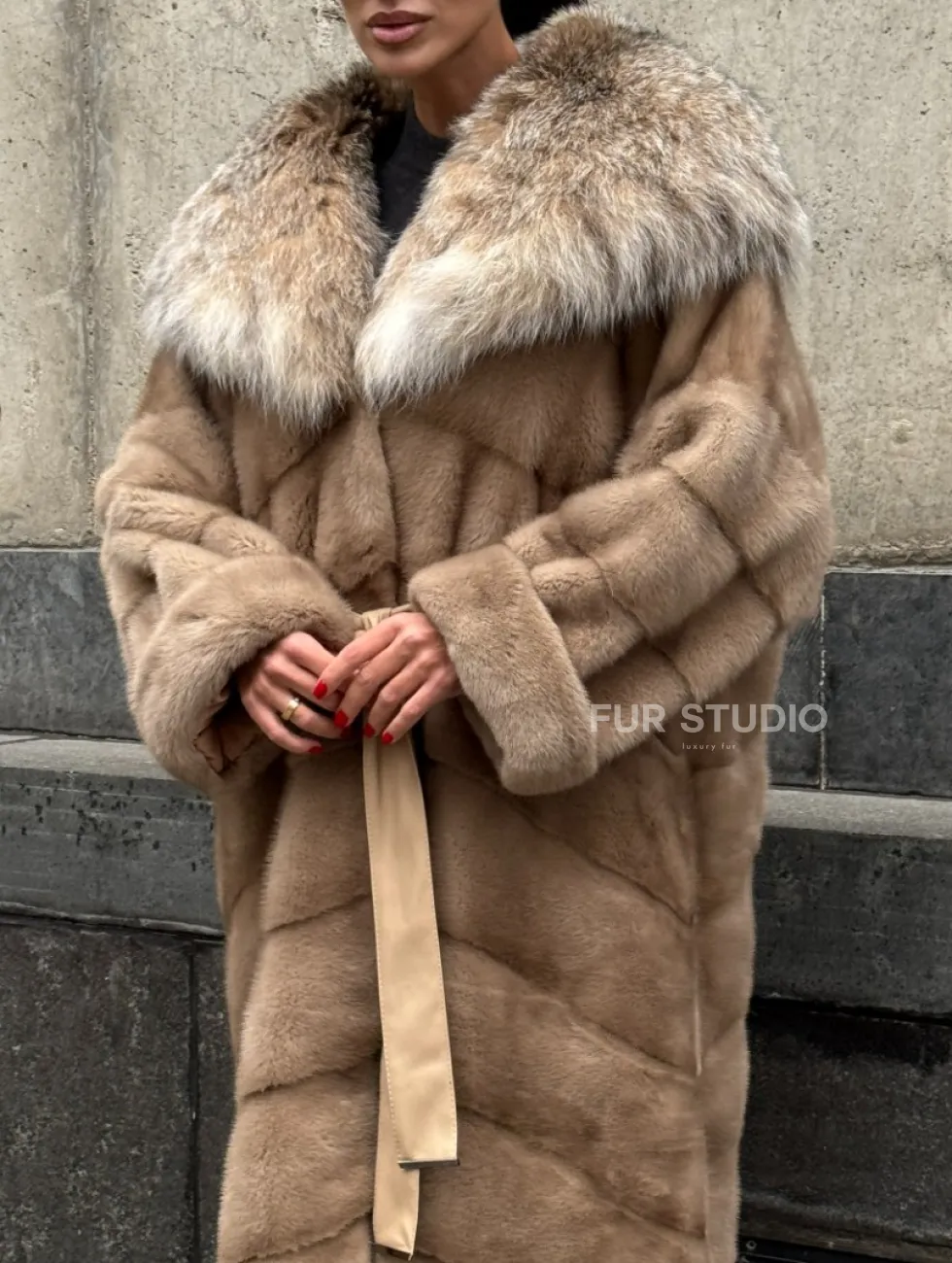 Длинная шуба кимоно из норки Pastel с капюшоном из меха рыси доступна для покупки в нашем шоуруме Furs Studio в Чите. У нас так же есть доставка во все города России. Добавьте немного роскоши в свой гардероб с этой шубой, которая будет служить вам многие годы.