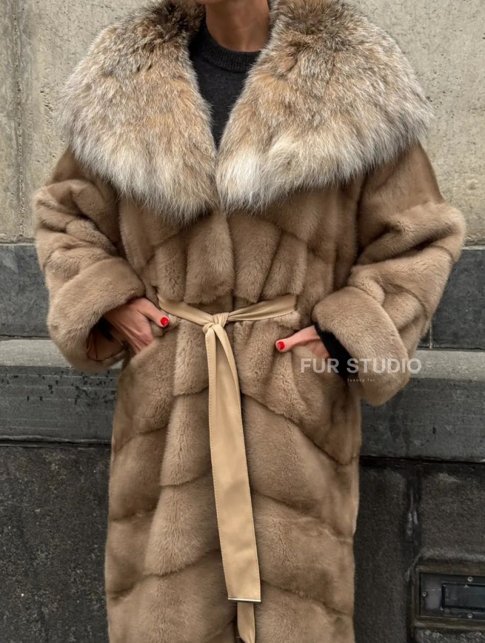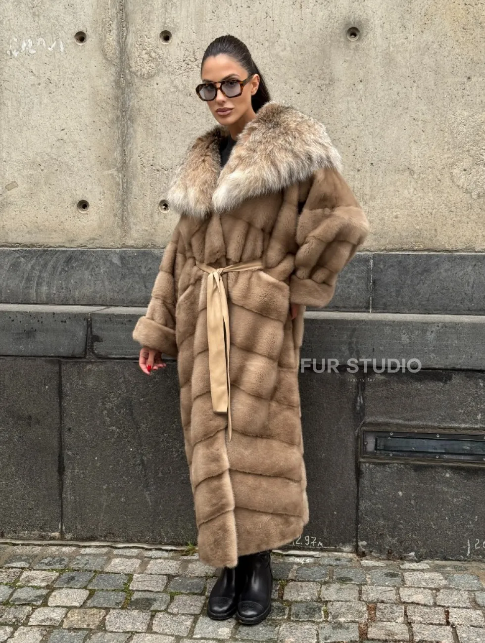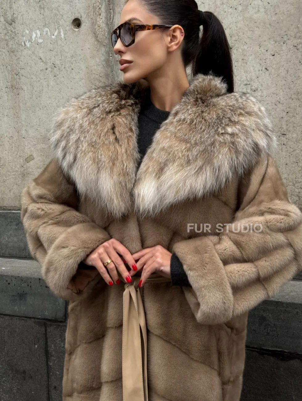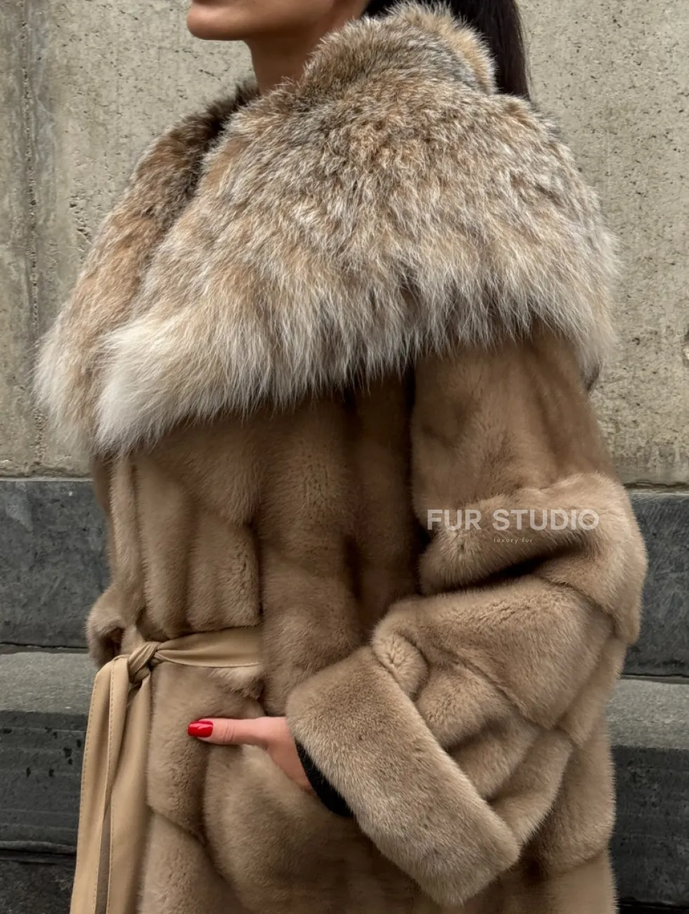 Длинная шуба кимоно из норки Pastel с капюшоном из меха рыси доступна для покупки в нашем шоуруме Furs Studio в Чите. У нас так же есть доставка во все города России. Добавьте немного роскоши в свой гардероб с этой шубой, которая будет служить вам многие годы.