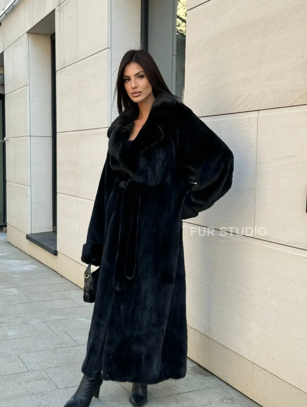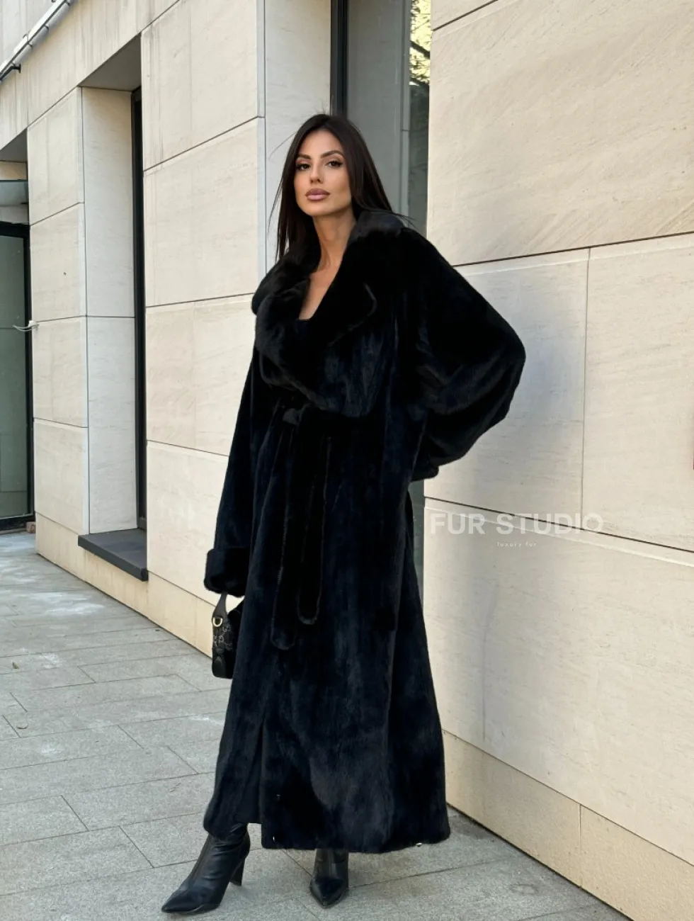 Длинная шуба кимоно Luxury Fashion из меха норки SAGA FURS - английский воротник доступна для покупки в нашем шоуруме Furs Studio в Чите. У нас так же есть доставка во все города России. Добавьте немного роскоши в свой гардероб с этой шубой, которая будет служить вам многие годы.