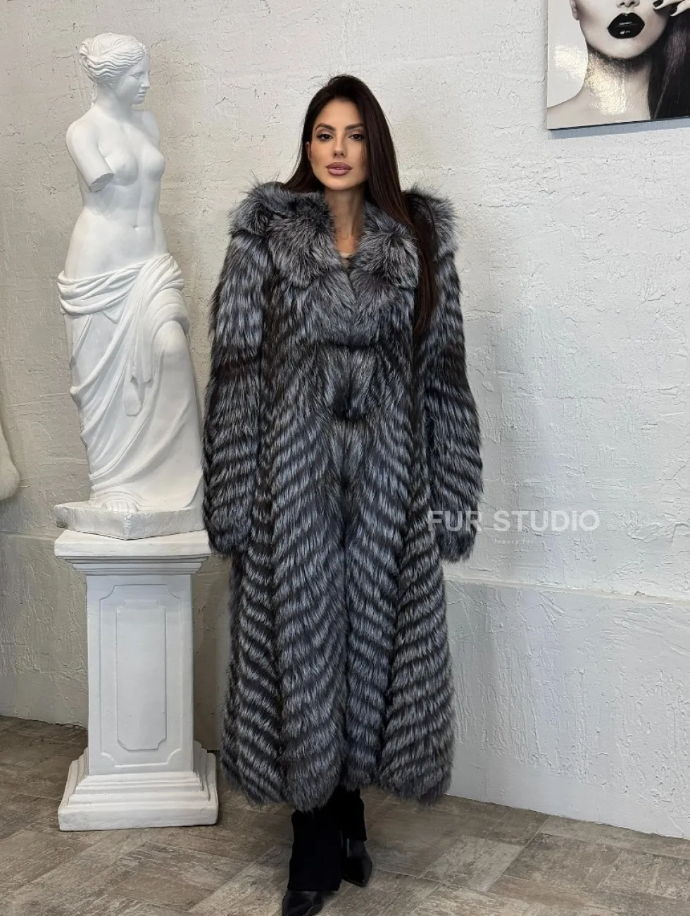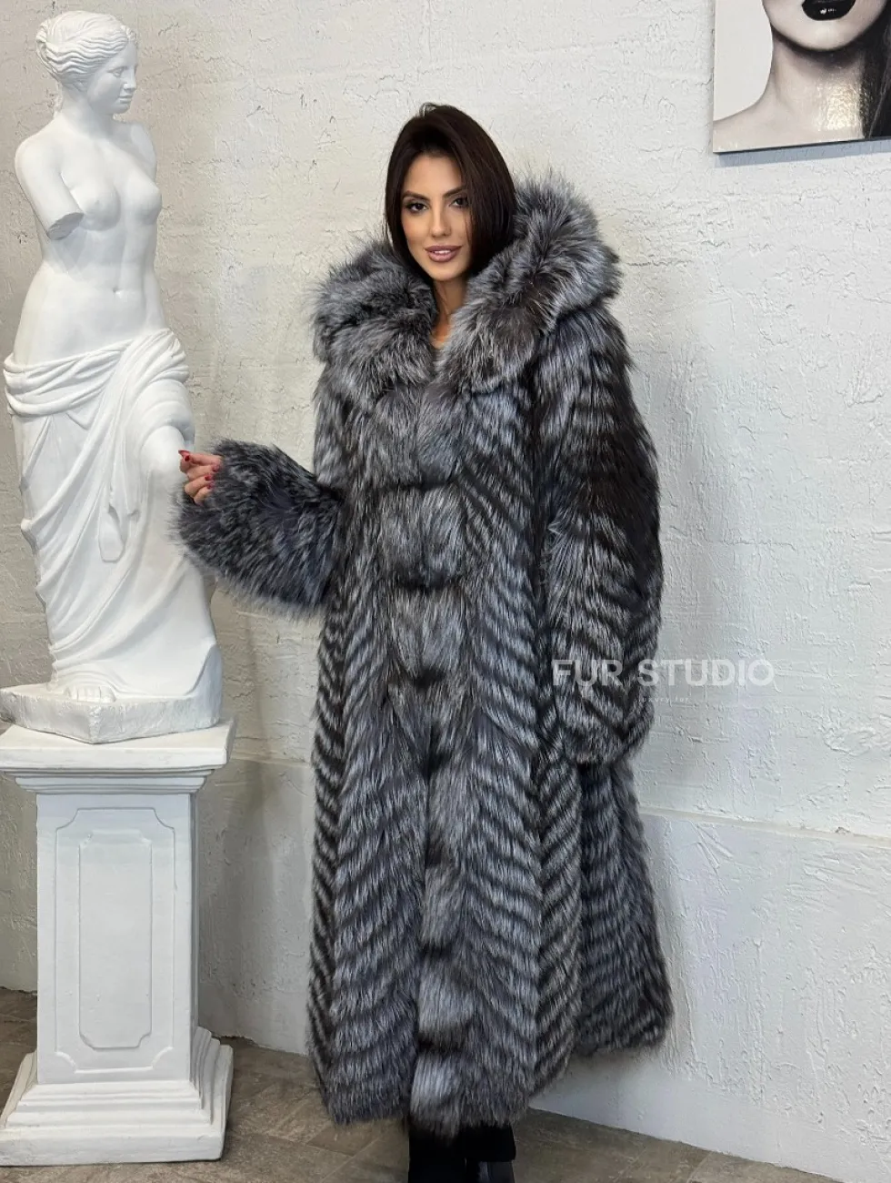 Длинная шуба с капюшоном из натуральной лисы Silver Fox Fur в росшив доступна для покупки в нашем шоуруме Furs Studio в Чите. У нас так же есть доставка во все города России. Добавьте немного роскоши в свой гардероб с этой шубой, которая будет служить вам многие годы.
