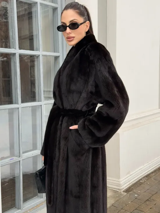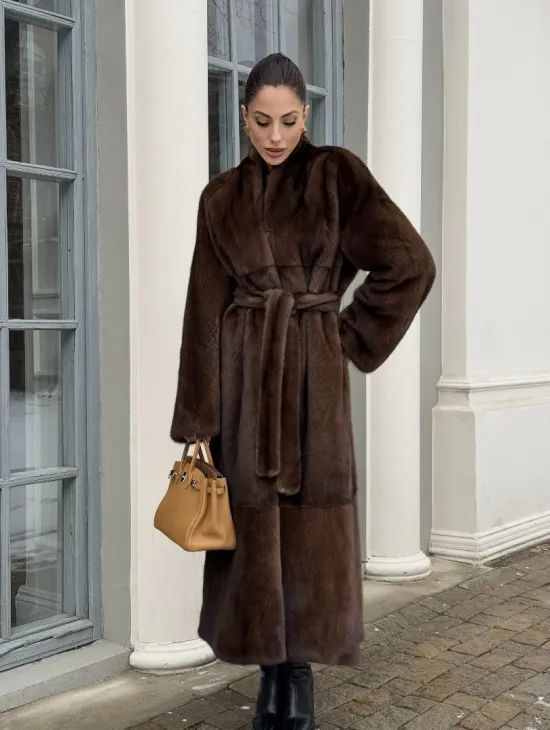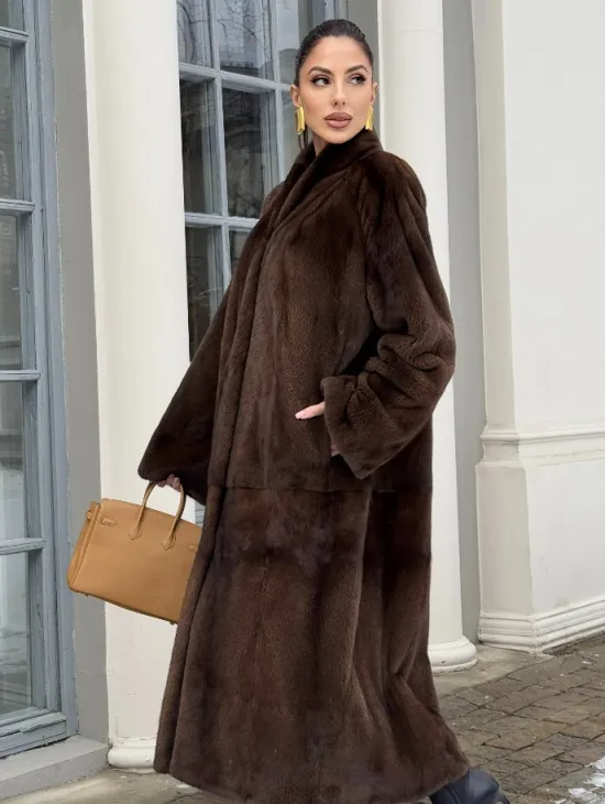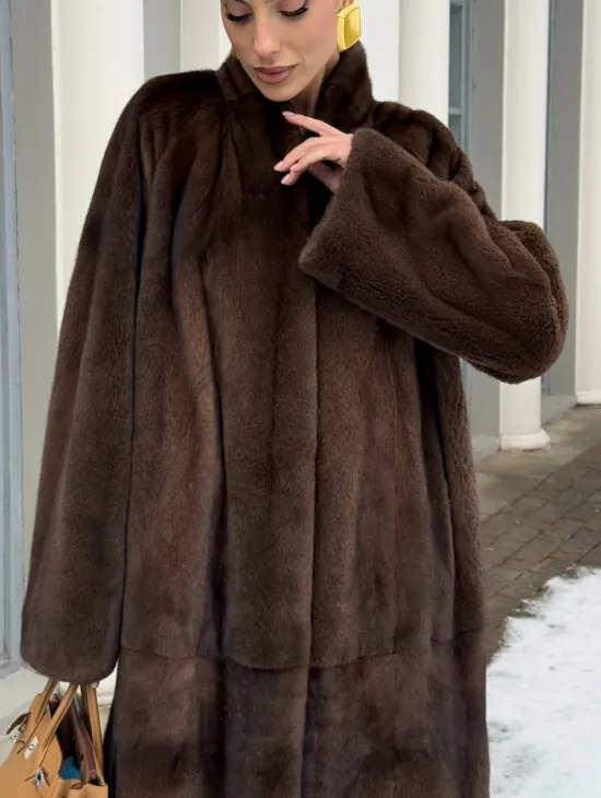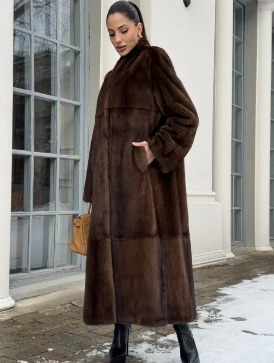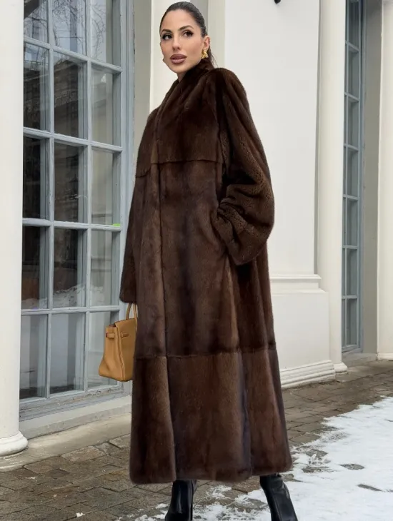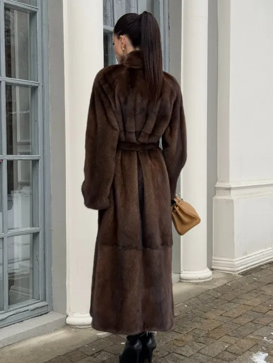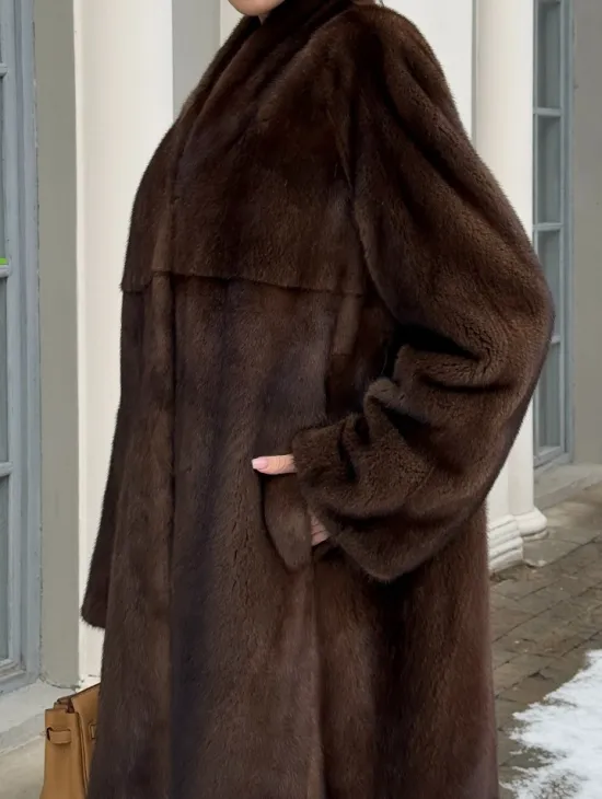 Цельнокроенная норковая шуба из североамериканской норки соболиного оттенка