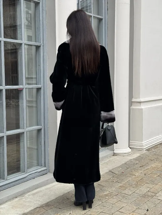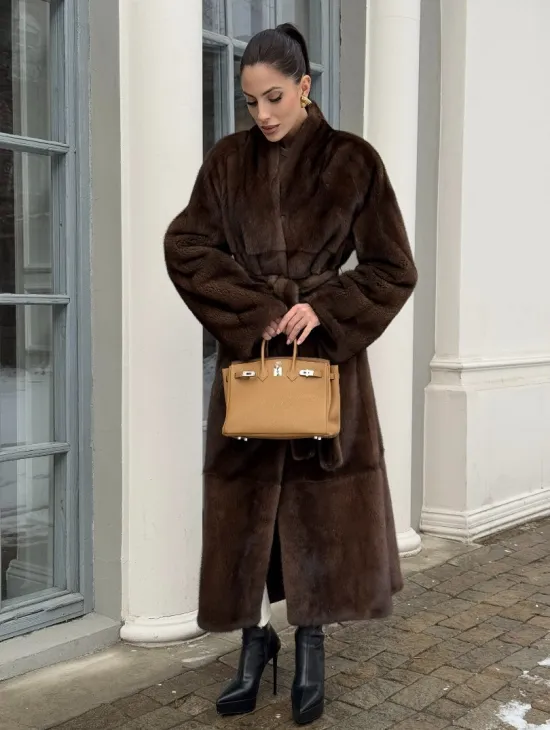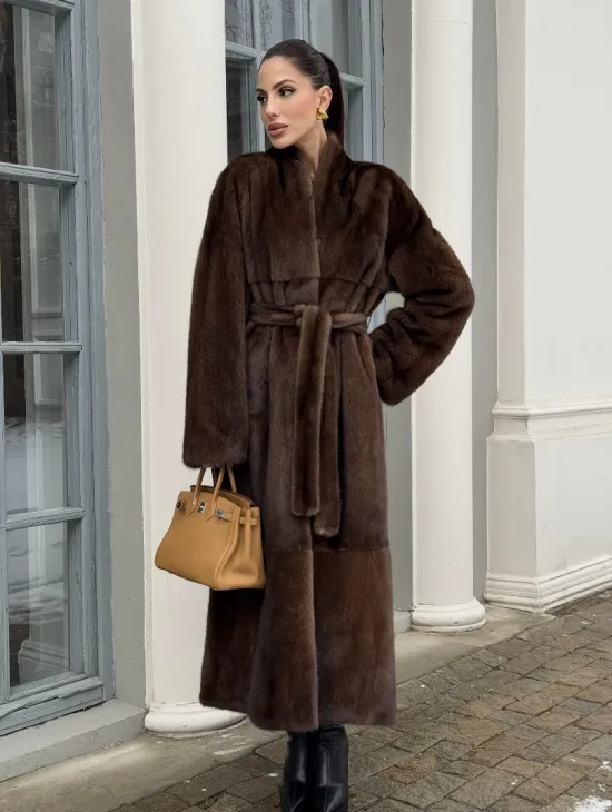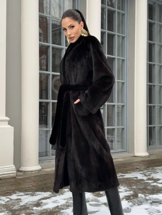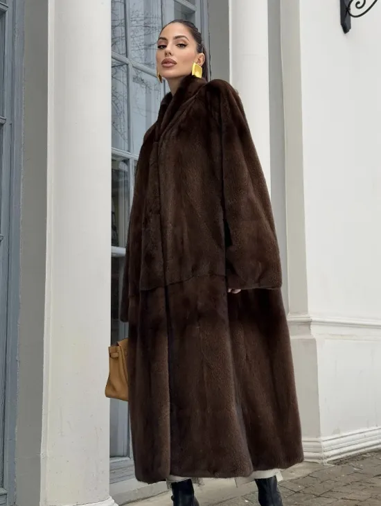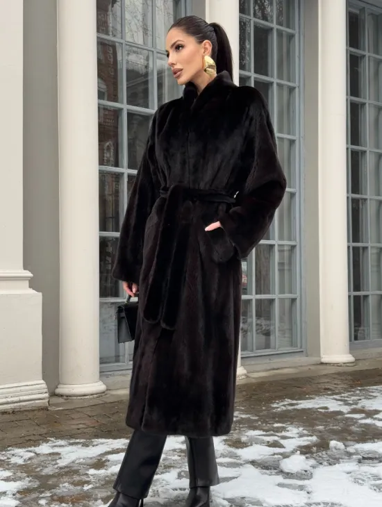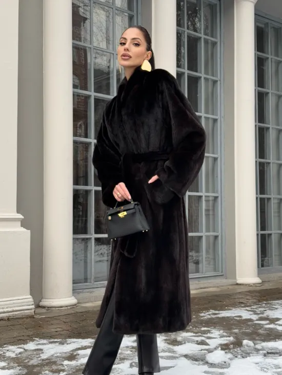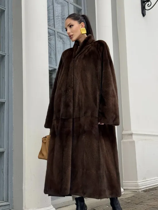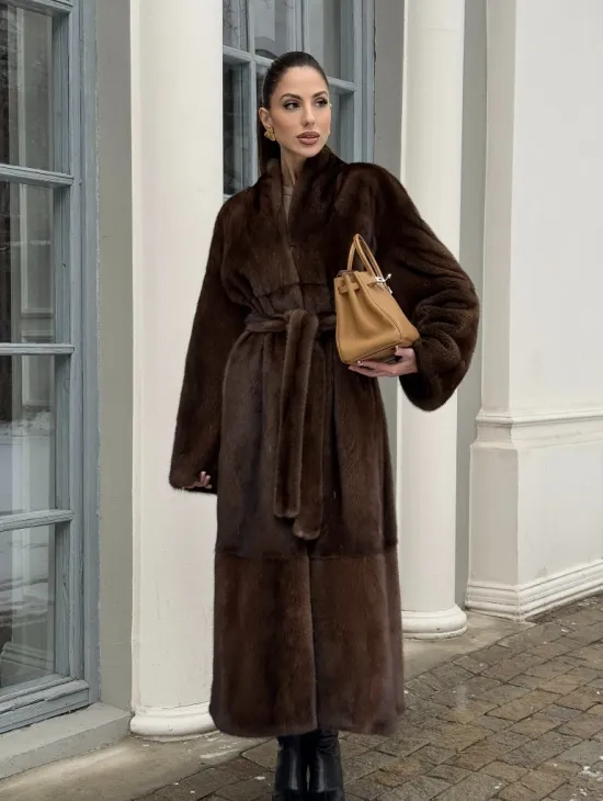 Цельнокроенная норковая шуба из североамериканской норки соболиного оттенка