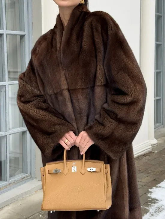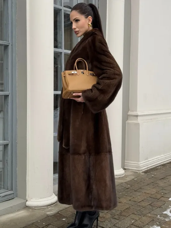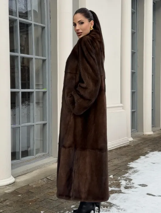 Натуральная коричневая норковая шуба в аукционном мехе SAGA FURS