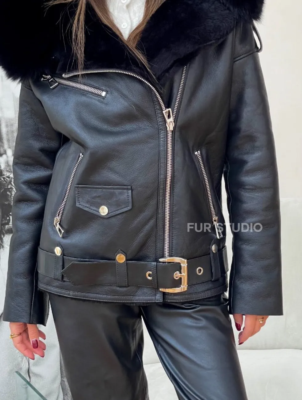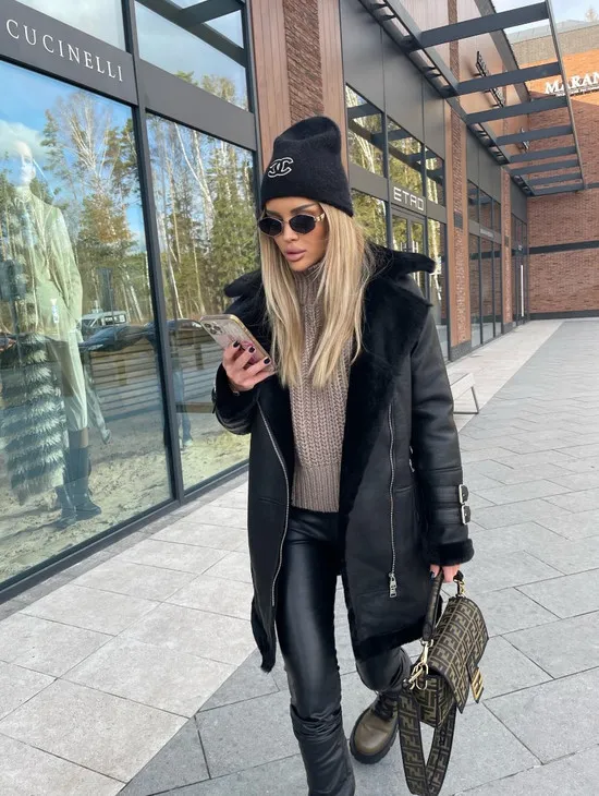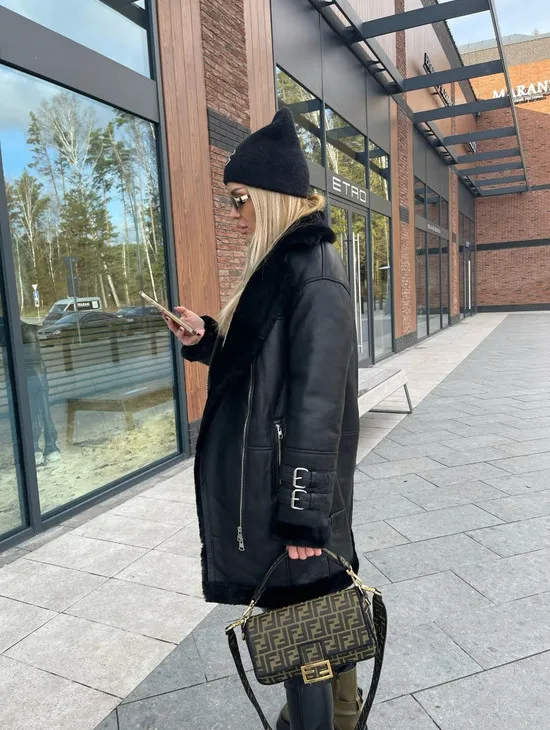 Дубленка авиатор из натуральной овчины с капюшоном – хит этого года. Модель создана для девушек, которые любят быть в тренде. Шикарный капюшон позаботится о прическе и согреет голову в прохладное время года. Прямой крой скроет недостатки фигуры. Удобный фермуар придает образу экстравагантности. Натуральная овчина позаботится о том, чтобы владелица не замерзла даже в самую холодную зиму.