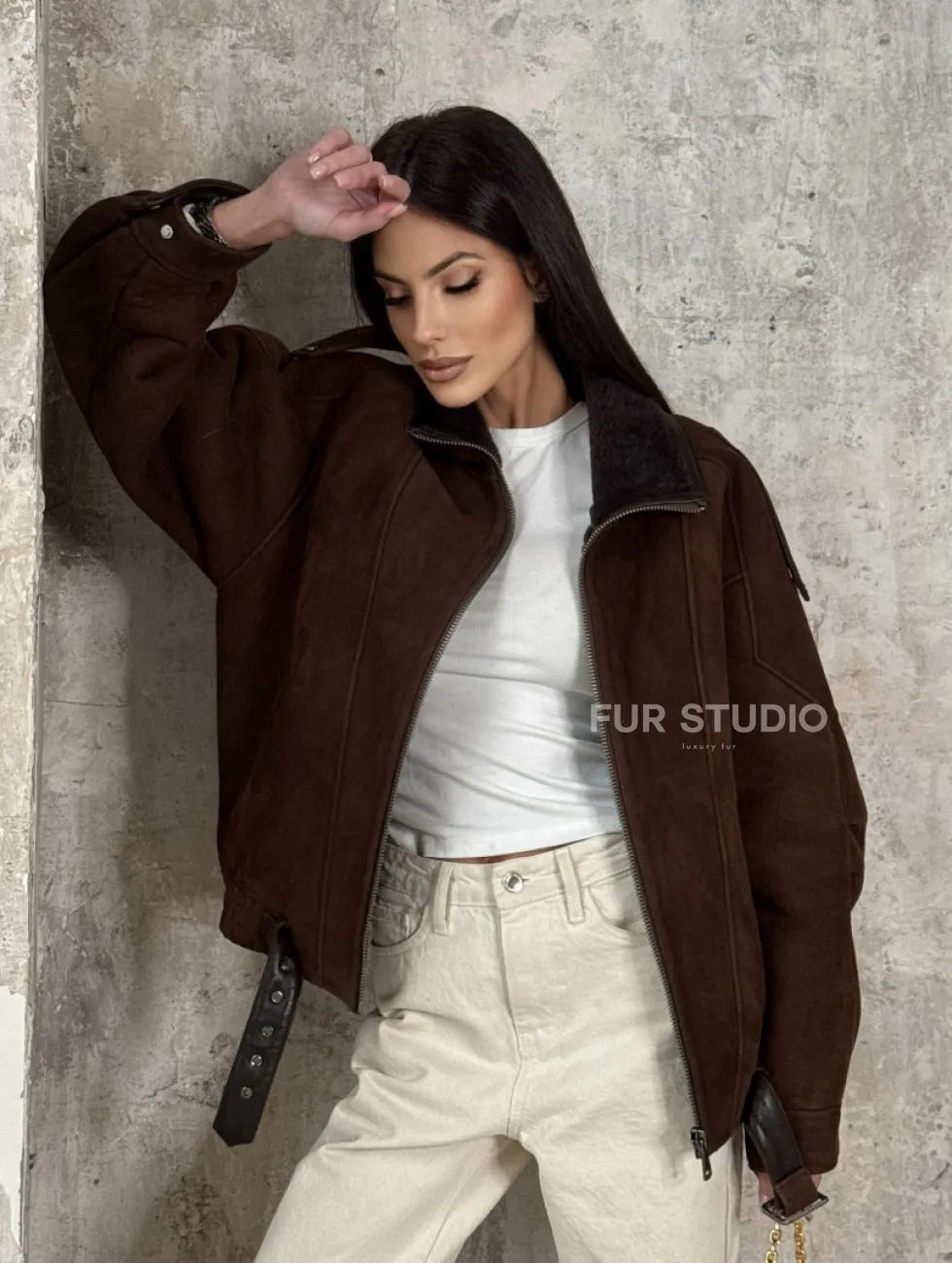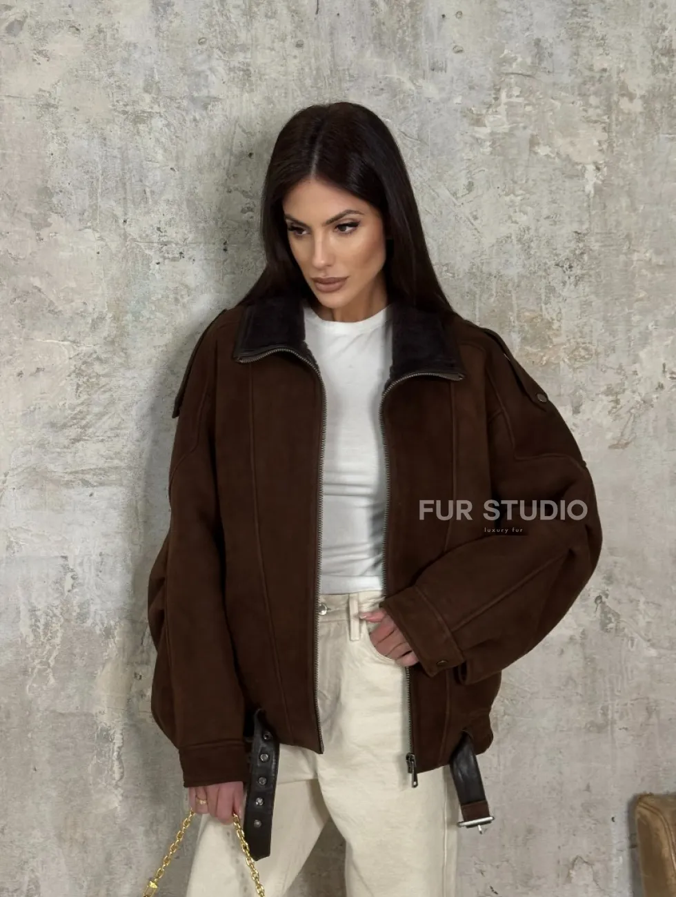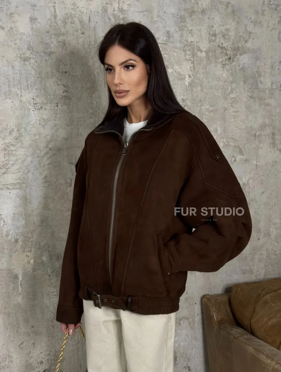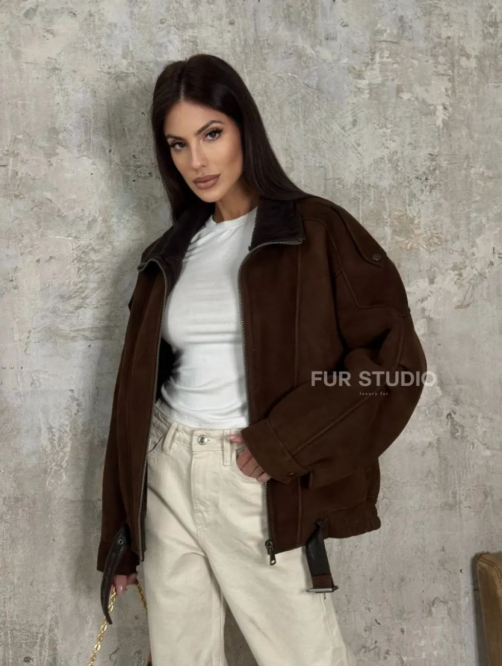 Дубленка - бомбер на молнии из овчины MERINO. Модель предлагается в размерах от 42 до 48 с ( 50. Оптимальная длина моделей 55-60 см подчеркивает линии вашей фигуры. Эта дубленка станет неотъемлемой частью гардероба для тех, кто предпочитает роскошь и утонченность натуральной кожи.