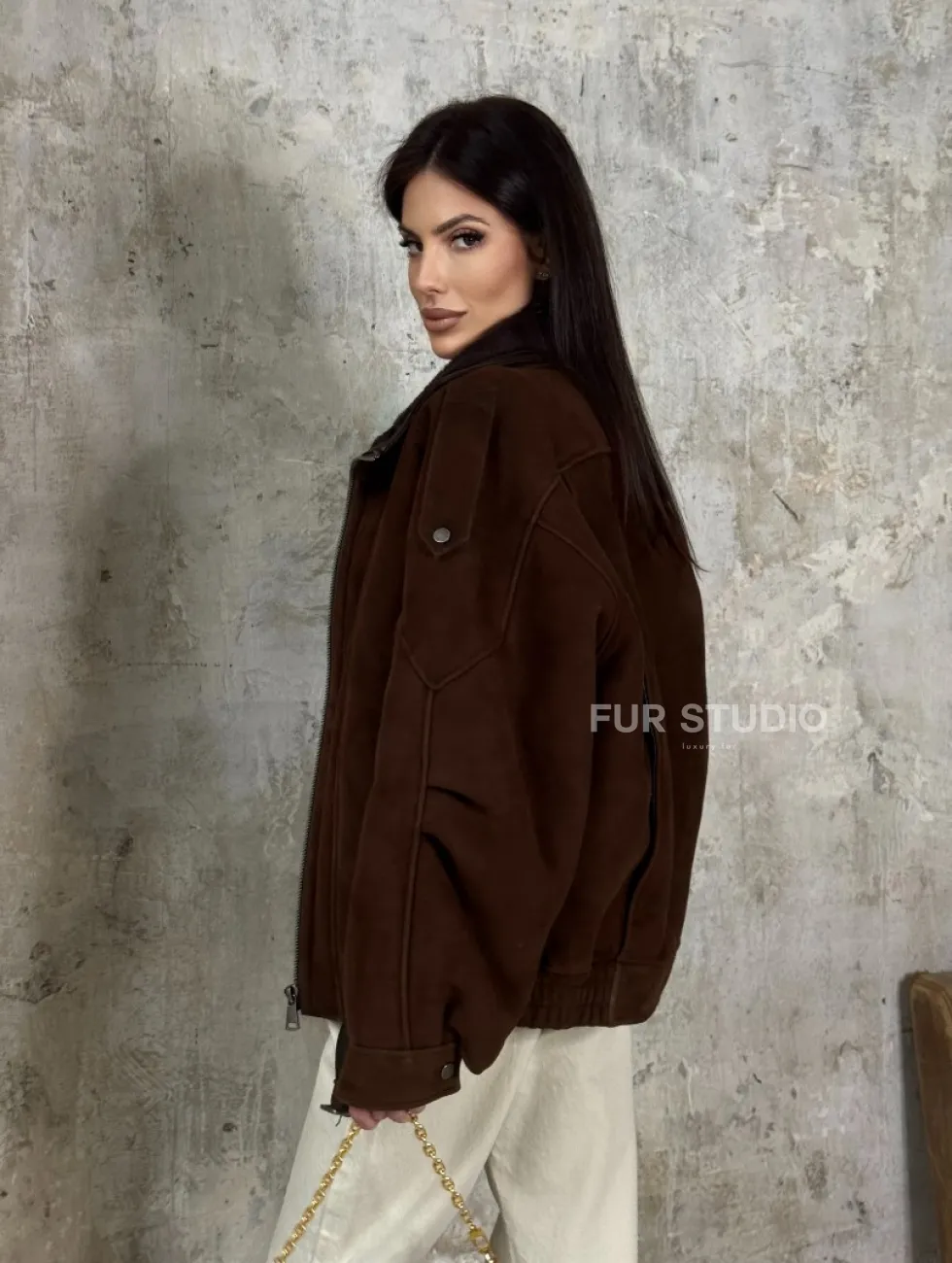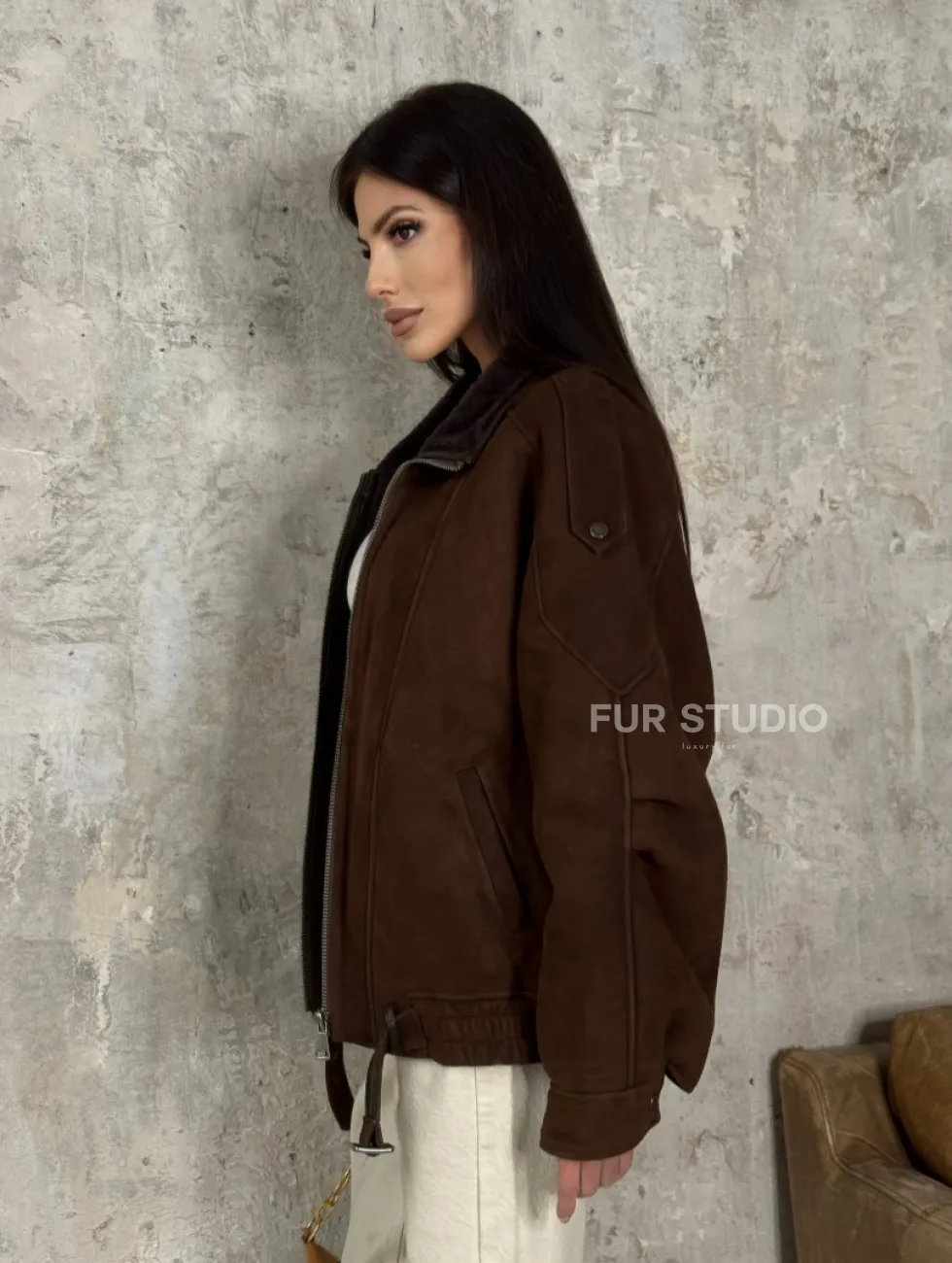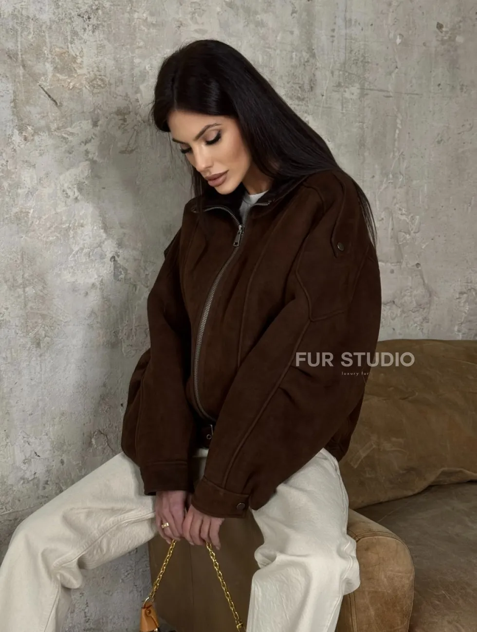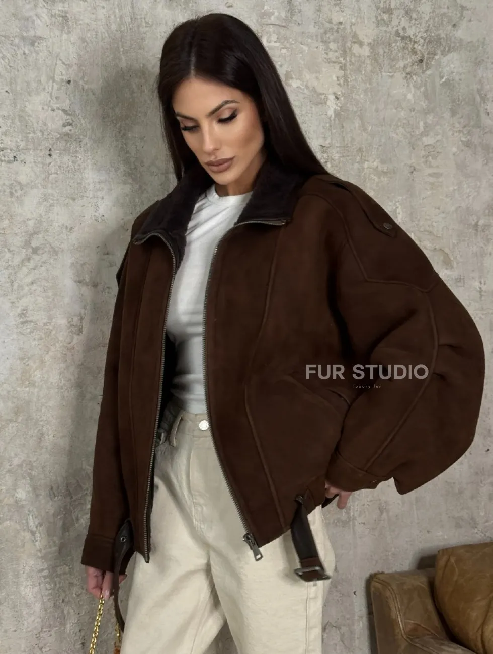 Дубленка - бомбер на молнии из овчины MERINO. Модель предлагается в размерах от 42 до 48 с ( 50. Оптимальная длина моделей 55-60 см подчеркивает линии вашей фигуры. Эта дубленка станет неотъемлемой частью гардероба для тех, кто предпочитает роскошь и утонченность натуральной кожи.