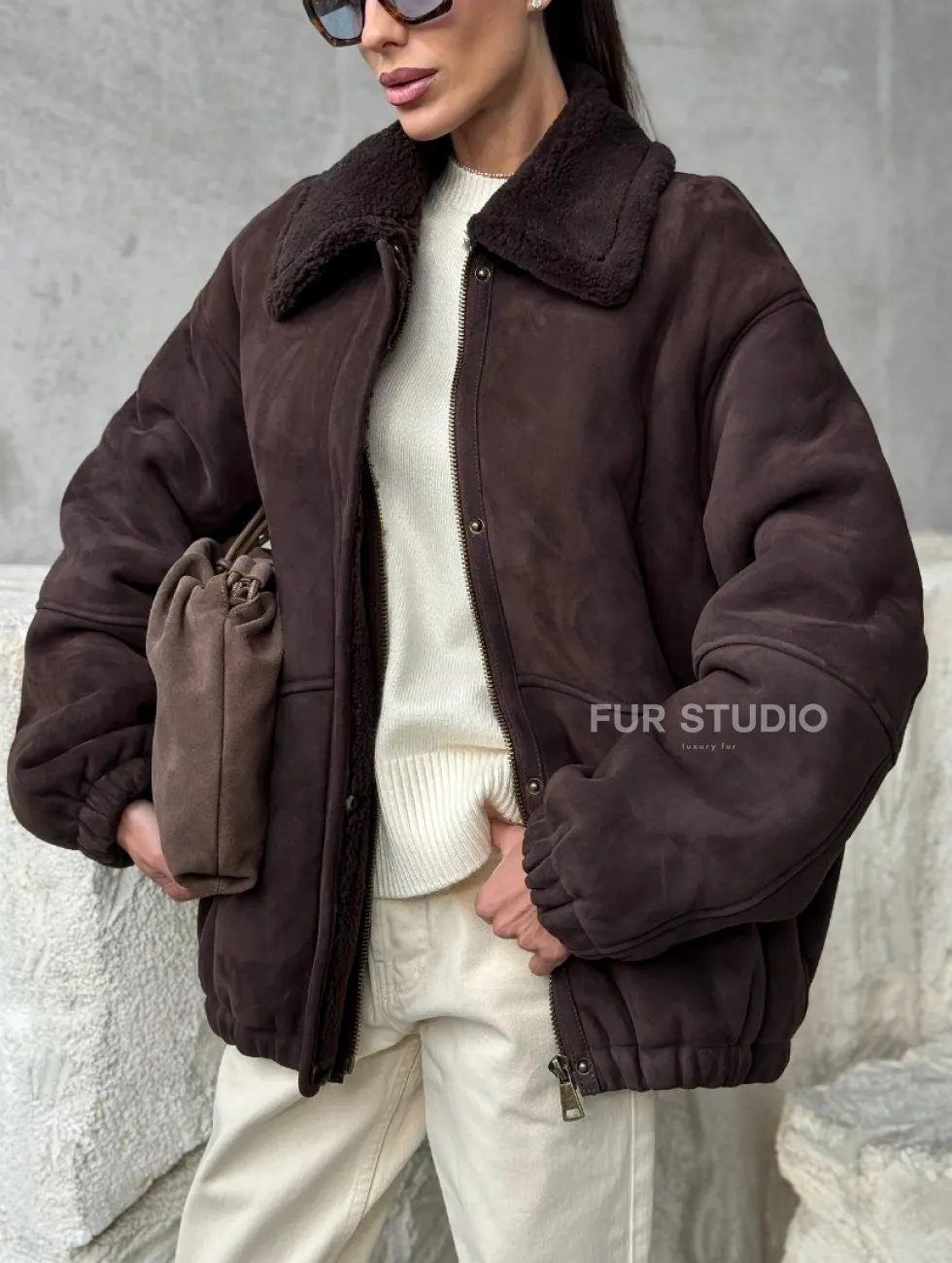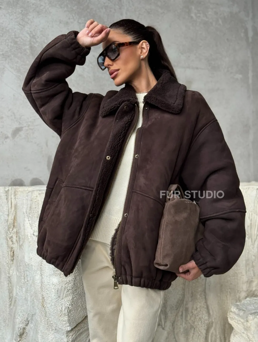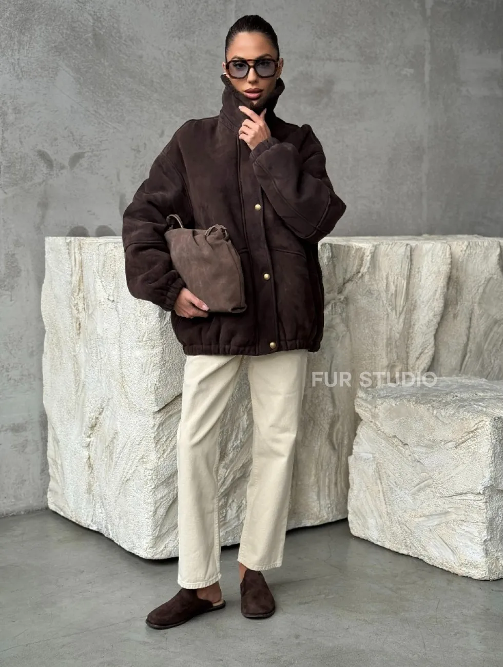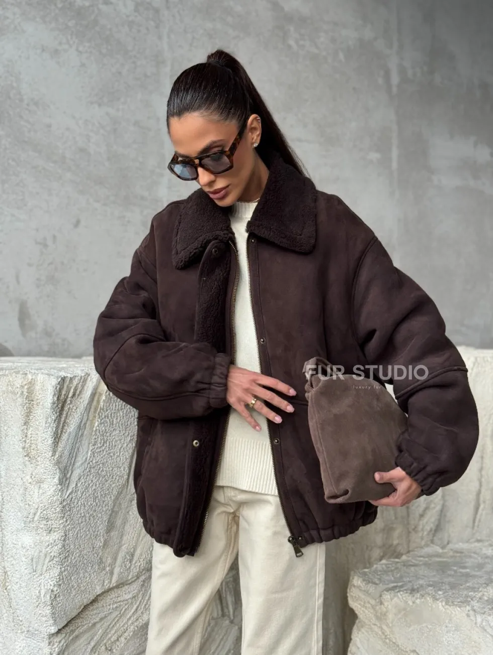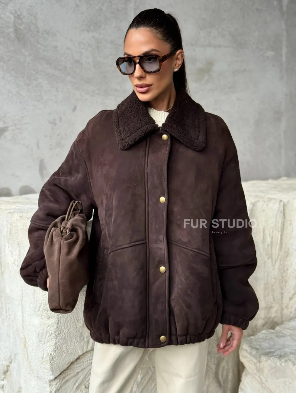Дубленка бомбер женская. Модель предлагается в размерах от 44 до 48. Оптимальная длина моделей 60-65 см подчеркивает линии вашей фигуры. Эта дубленка станет неотъемлемой частью гардероба для тех, кто предпочитает роскошь и утонченность натуральной кожи.
