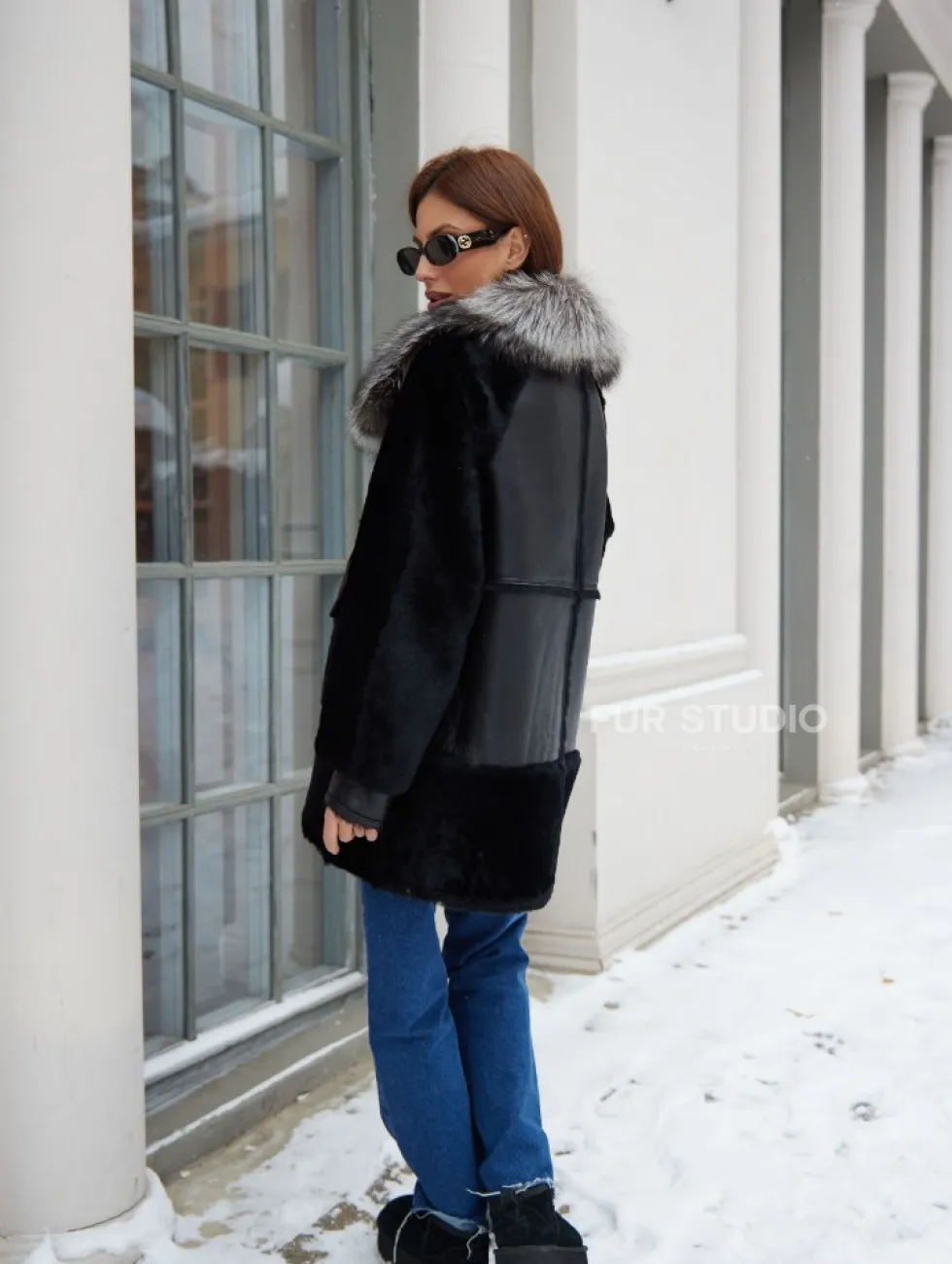 Дубленка черная с меховым воротником доступна для покупки в нашем шоуруме Furs Studio в Чите, а также предлагается удобная доставка во все города России. Обогатите свой гардероб этой дубленкой, которая прослужит вам многие годы, добавив немного роскоши в ваш повседневный образ.