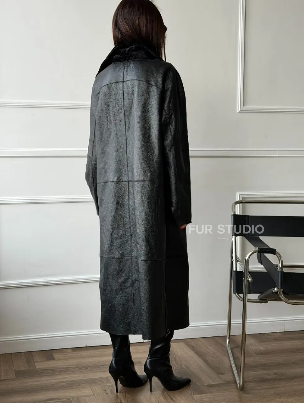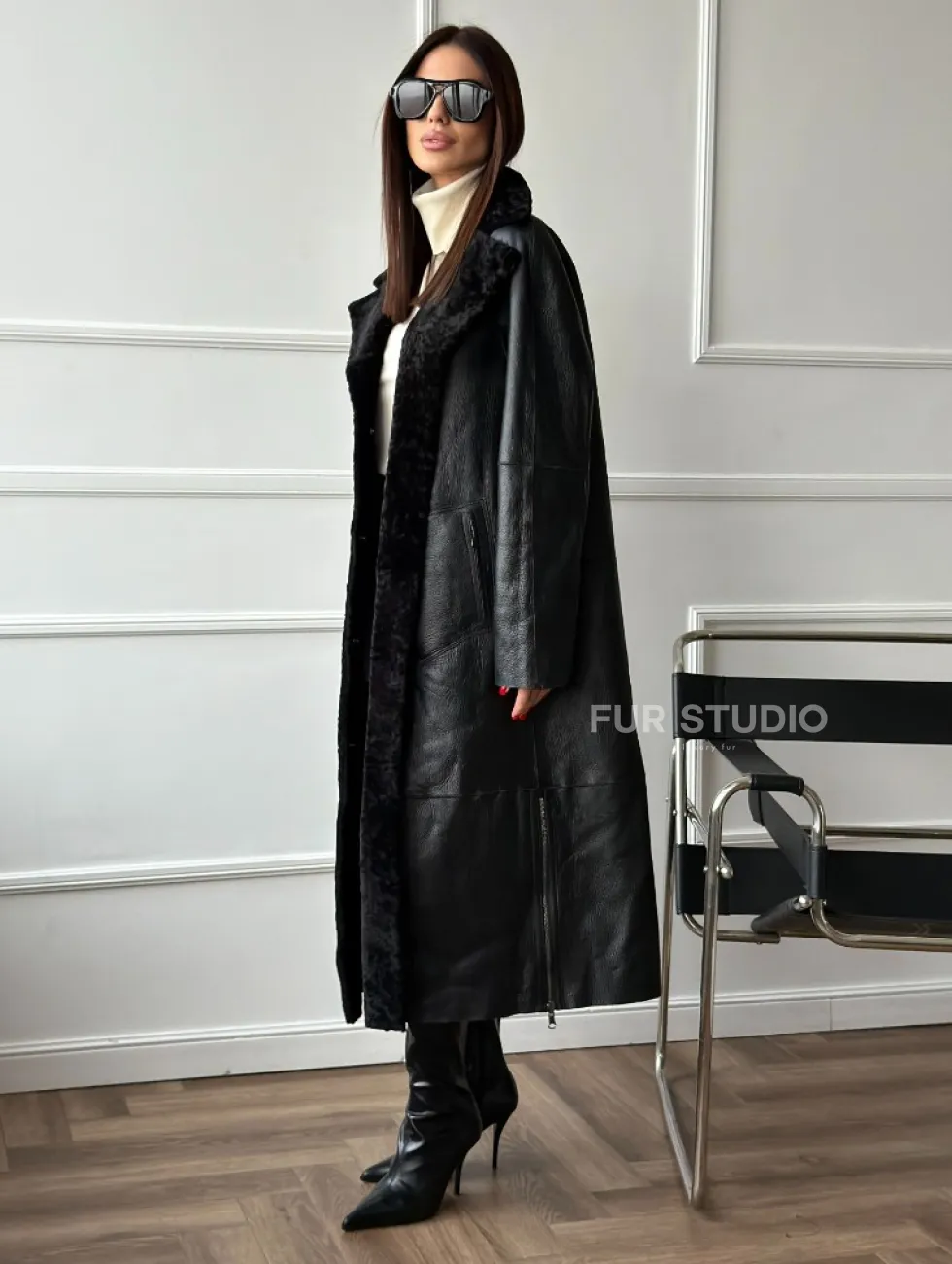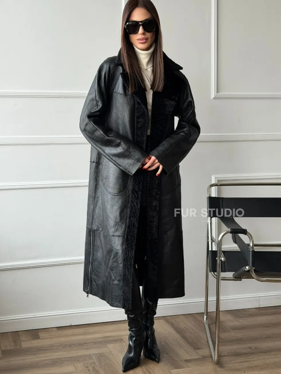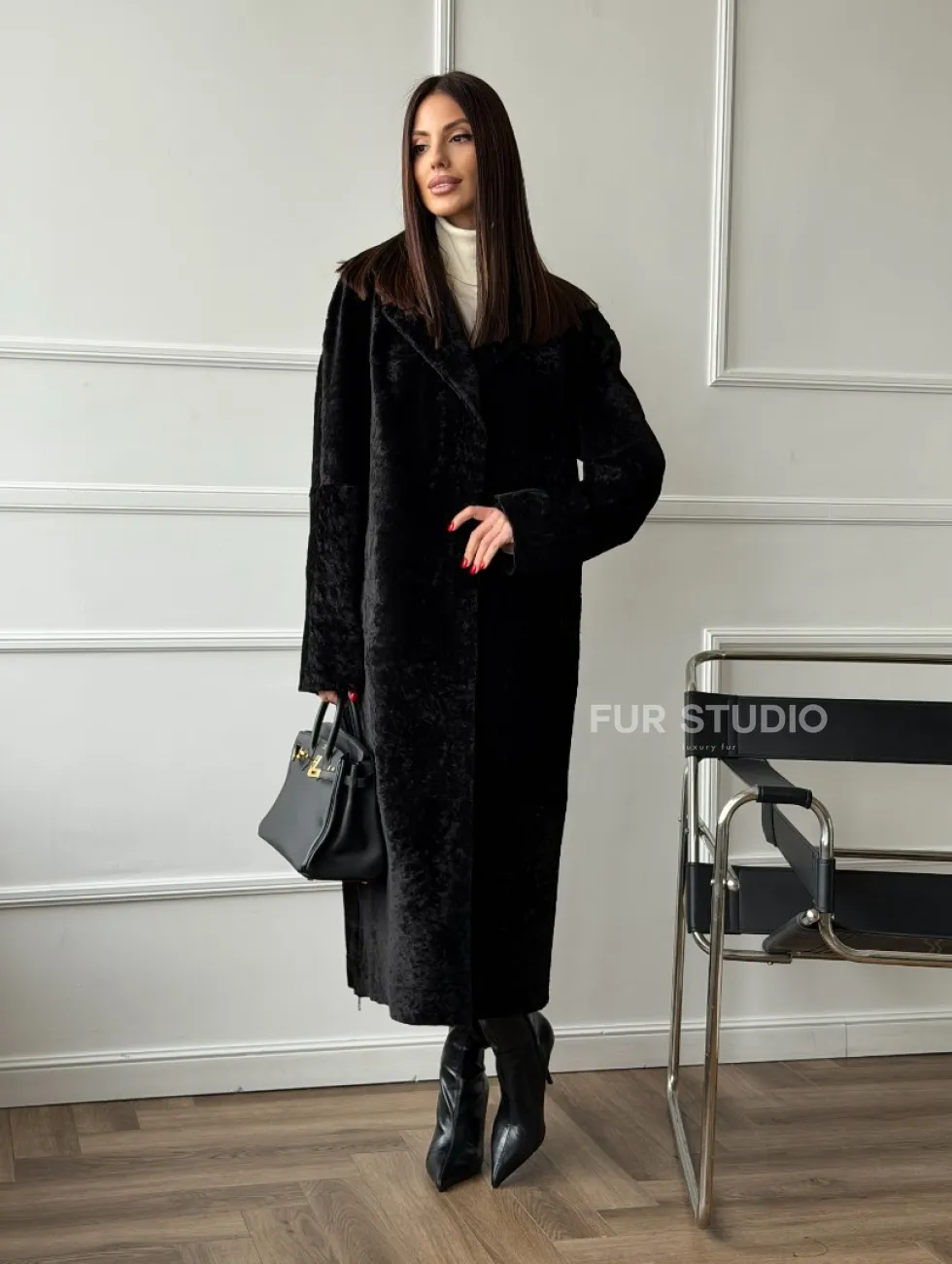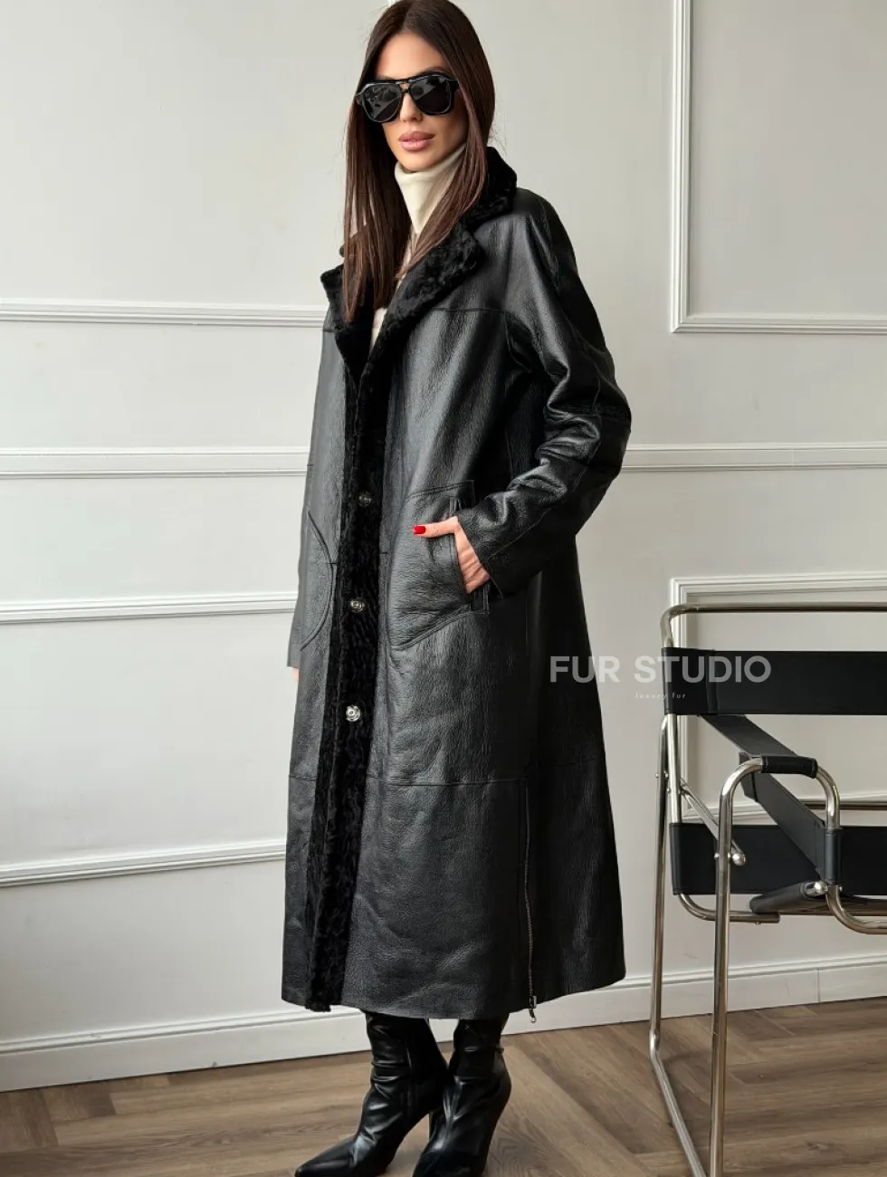 Дубленка из натуральной овчины астраган. Модель предлагается в размерах от 42 до 48. Оптимальная длина моделей 115-120 см подчеркивает линии вашей фигуры. Эта дубленка станет неотъемлемой частью гардероба для тех, кто предпочитает роскошь и утонченность натуральной кожи.