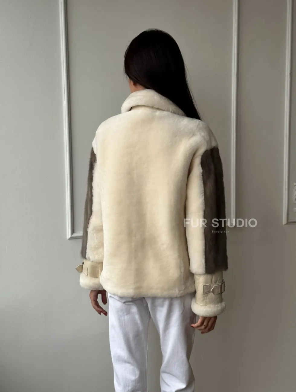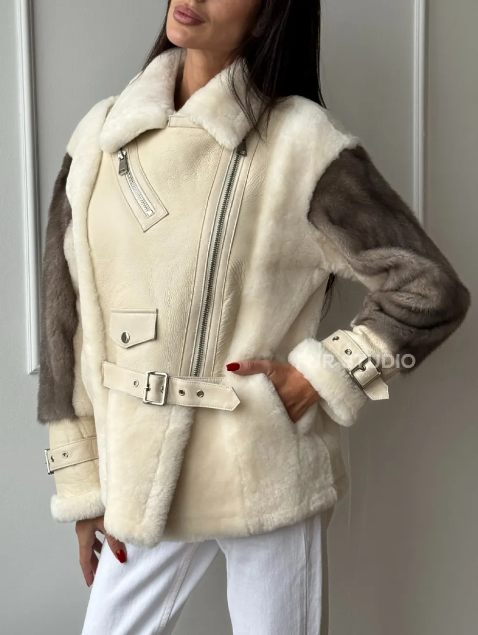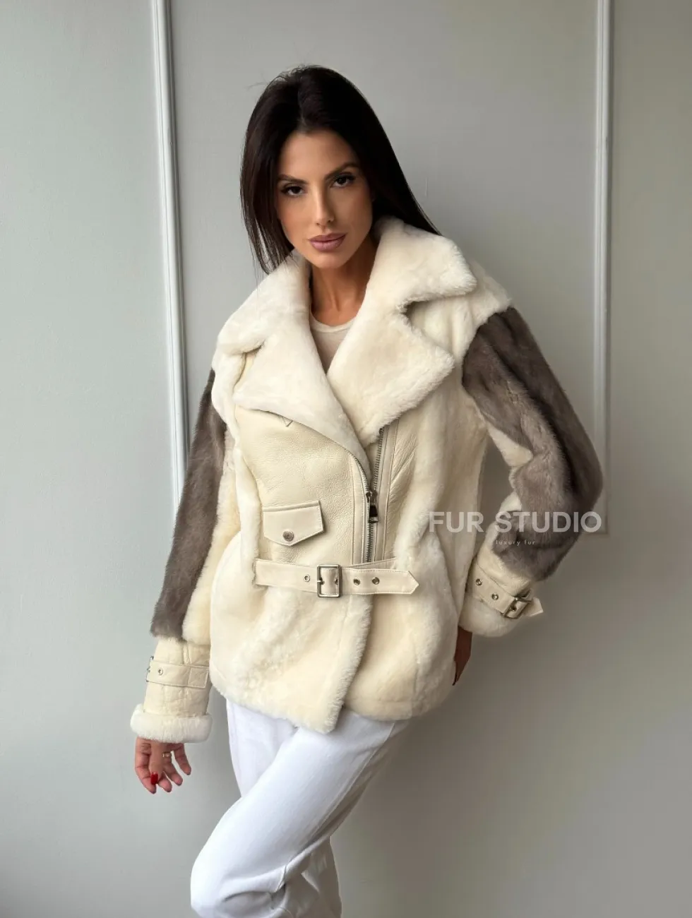Дубленка из натуральной овчины с рукавами из меха норки - выбор девушек, которые любят быть неотразимыми в любое время года. Сочетание кожи и меха норки смотрится необычно, делает модель уникальной. Светлый цвет создает образ Снежной Королевы и выглядит благородно. Овчина согреет, даже если на улице будет очень холодно.