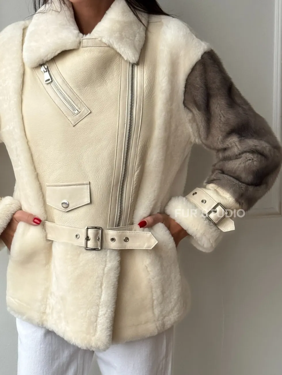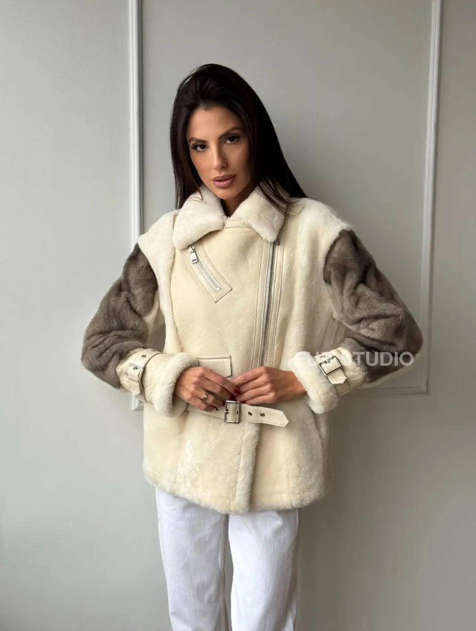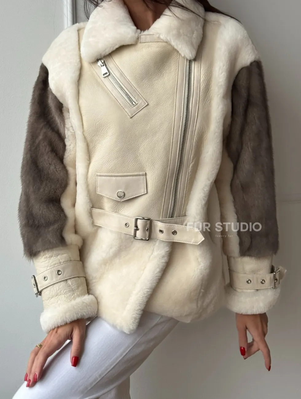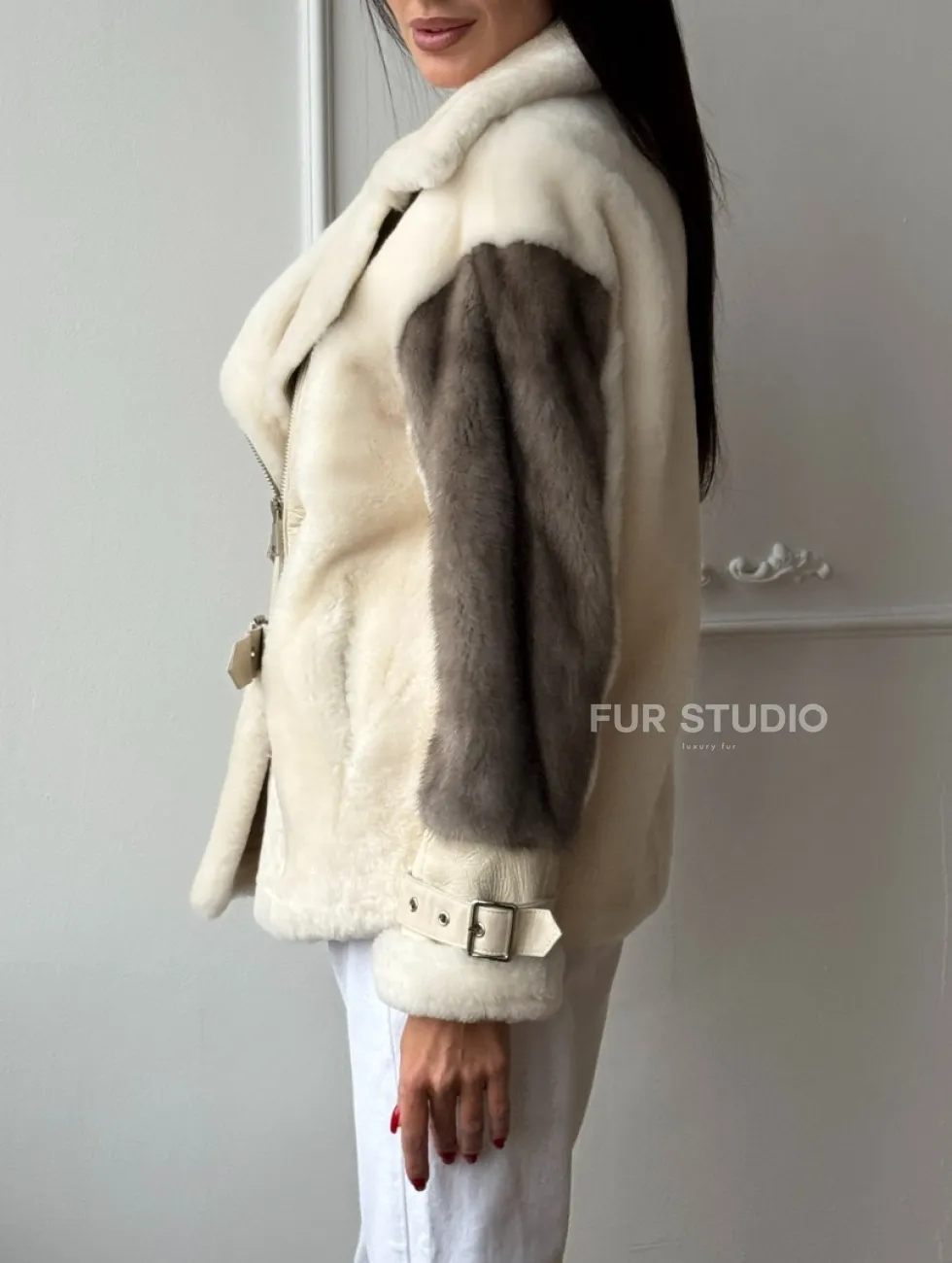Дубленка из натуральной овчины с рукавами из меха норки - выбор девушек, которые любят быть неотразимыми в любое время года. Сочетание кожи и меха норки смотрится необычно, делает модель уникальной. Светлый цвет создает образ Снежной Королевы и выглядит благородно. Овчина согреет, даже если на улице будет очень холодно.