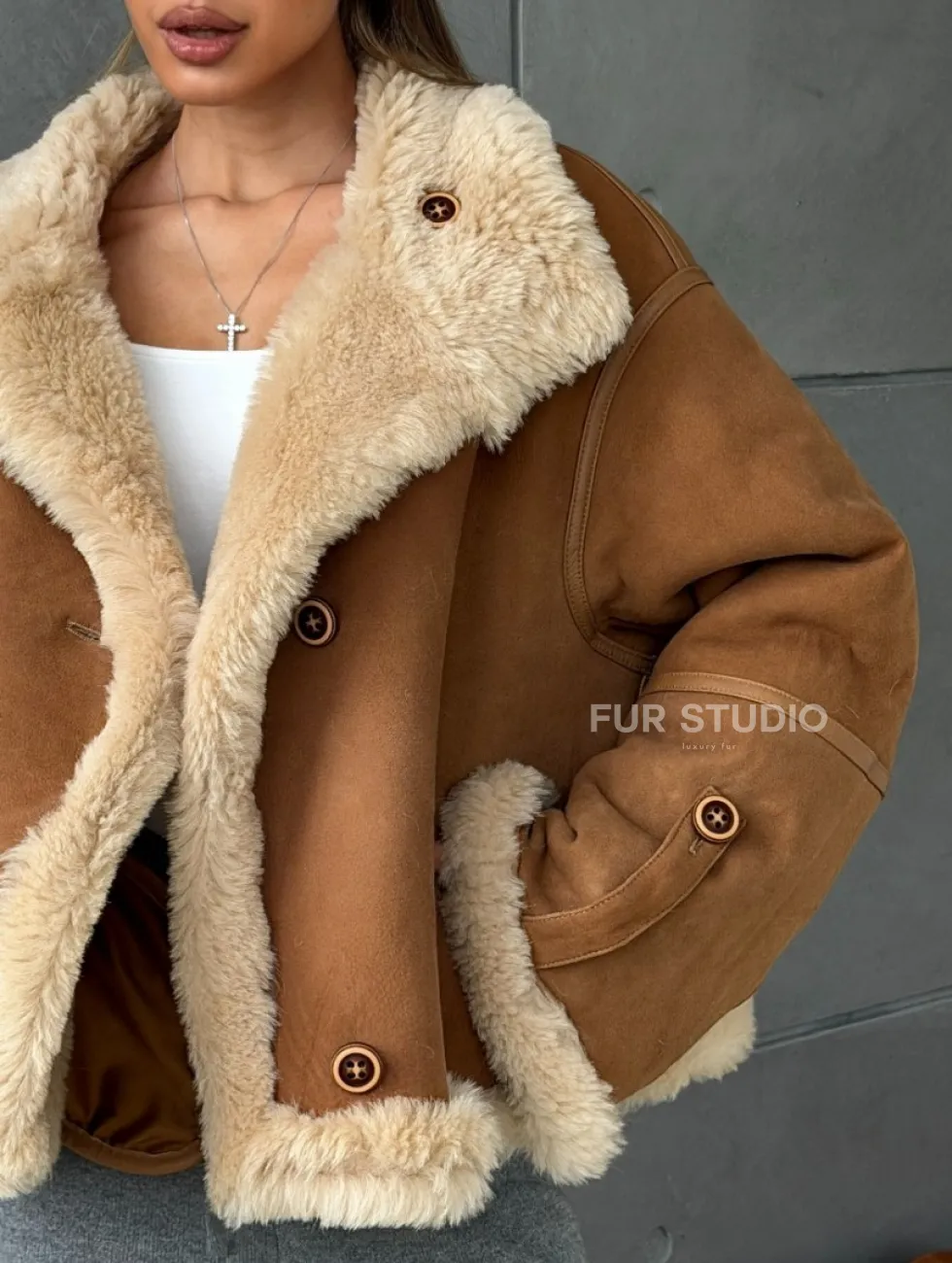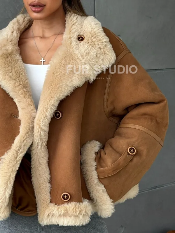 Дубленка - куртка двухсторонняя доступна для покупки в нашем шоуруме Furs Studio в Чите, а также предлагается удобная доставка во все города России. Обогатите свой гардероб этой дубленкой, которая прослужит вам многие годы, добавив немного роскоши в ваш повседневный образ.