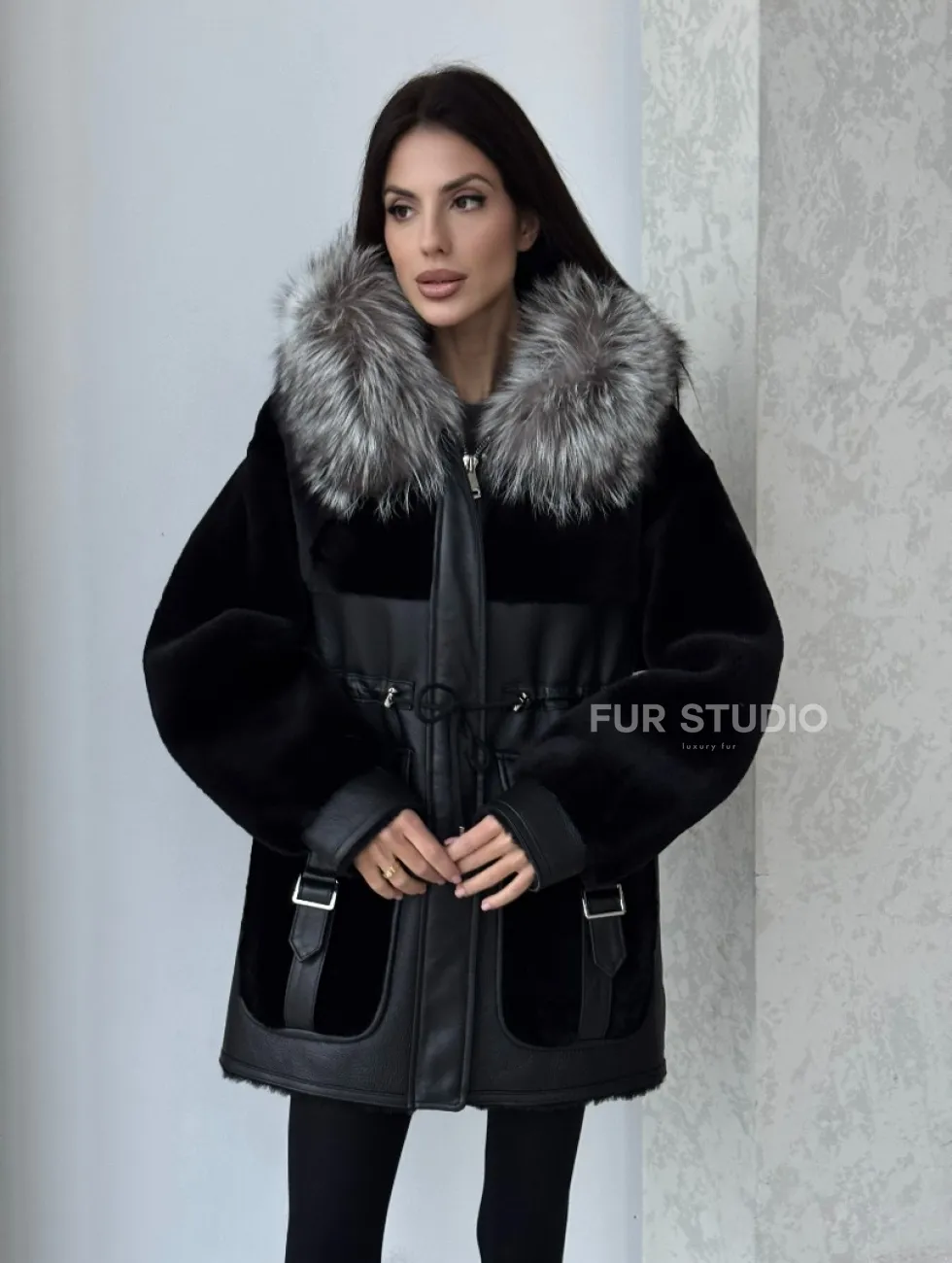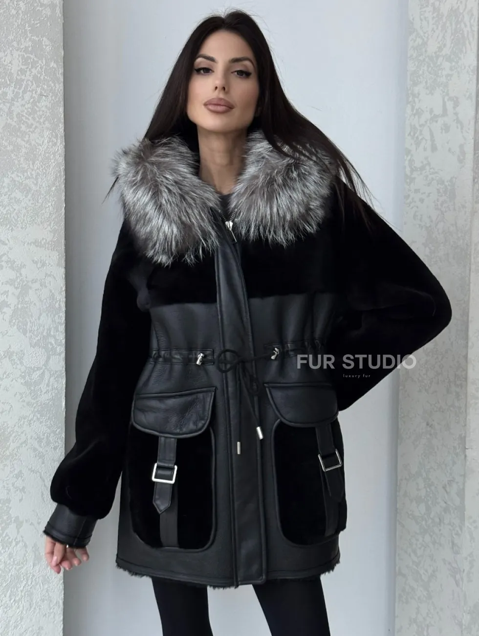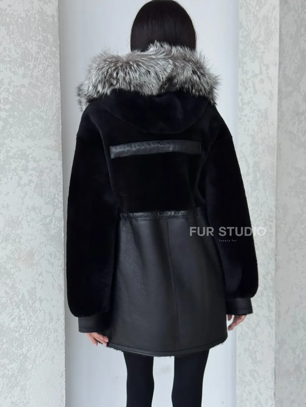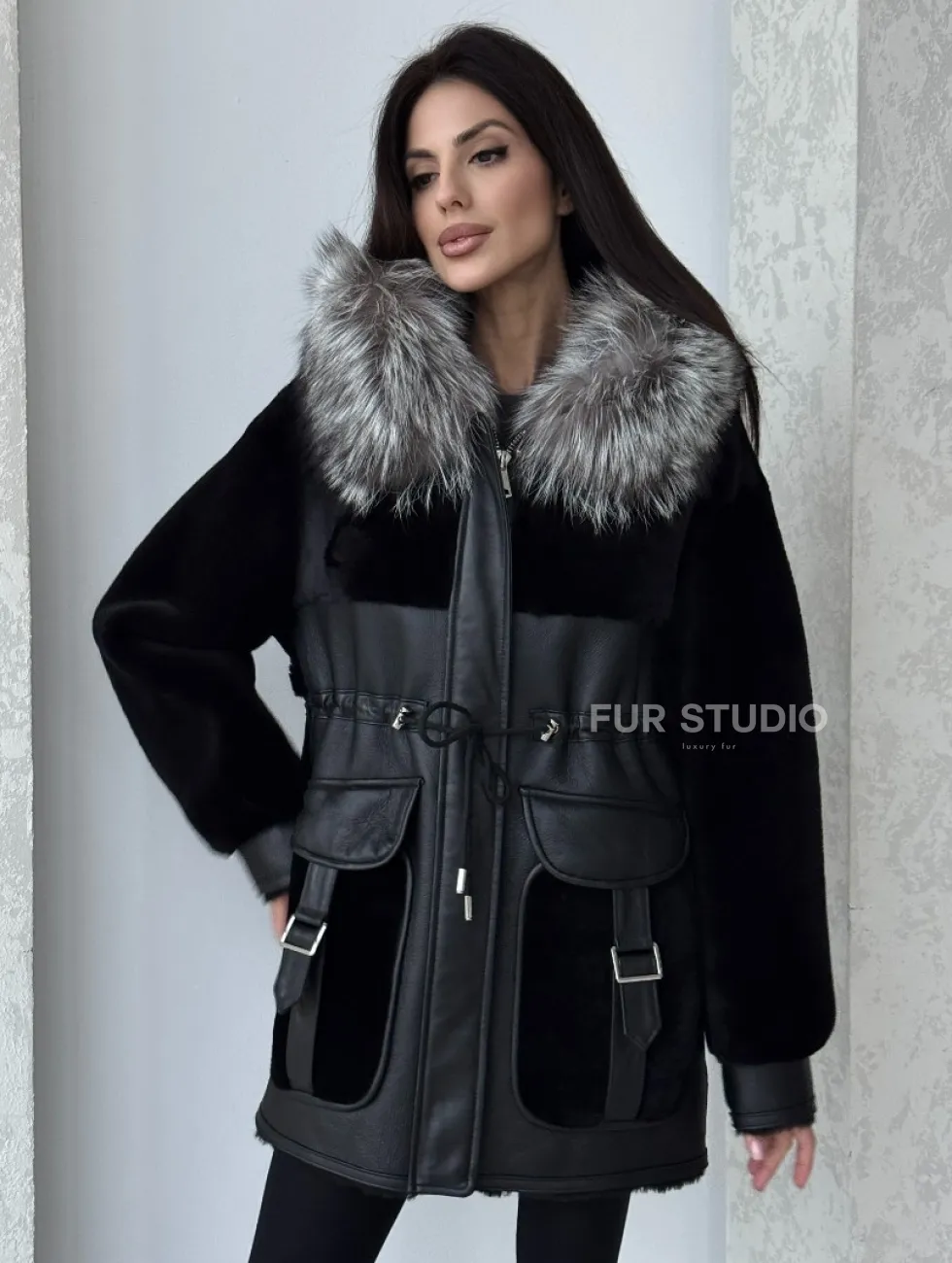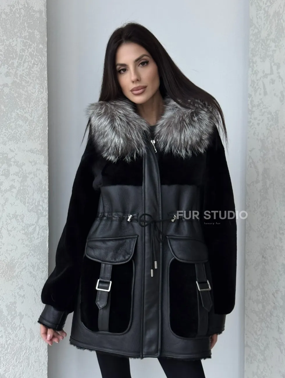 Дубленка женская из овчины на кулиске, капюшон - отделка из чернобурки доступна для покупки в нашем шоуруме Furs Studio в Чите, а также предлагается удобная доставка во все города России. Обогатите свой гардероб этой дубленкой, которая прослужит вам многие годы, добавив немного роскоши в ваш повседневный образ.