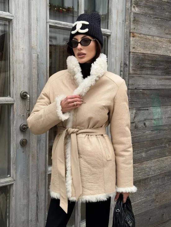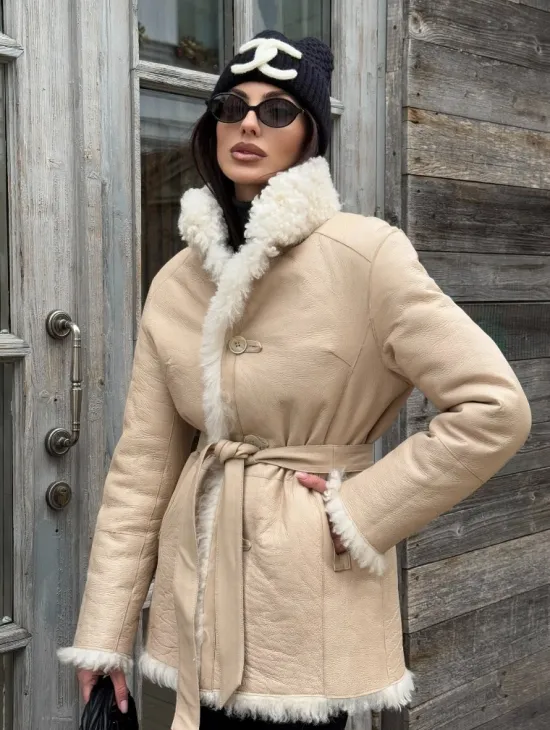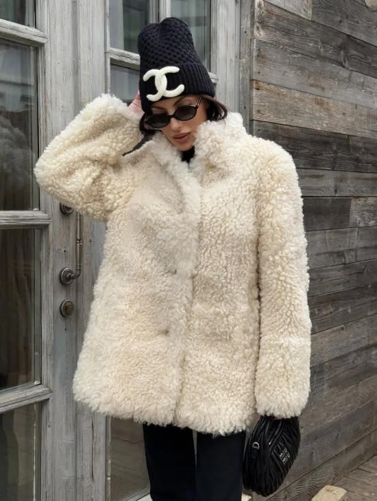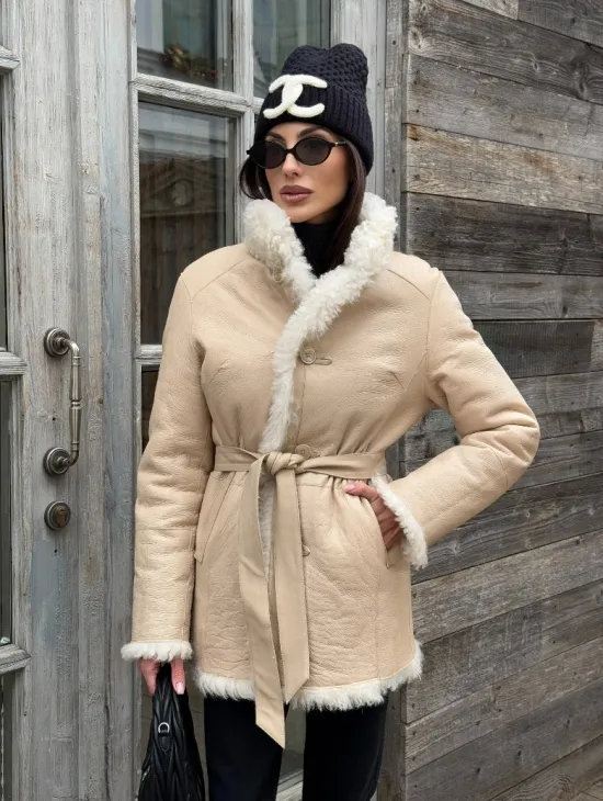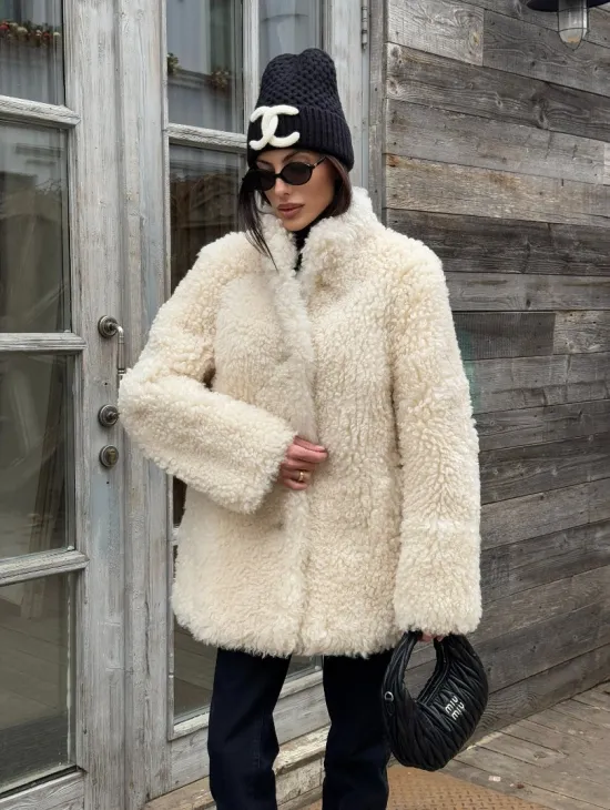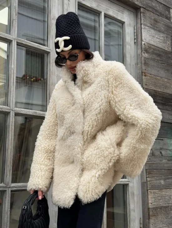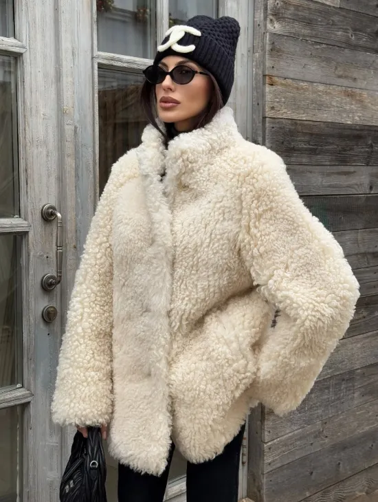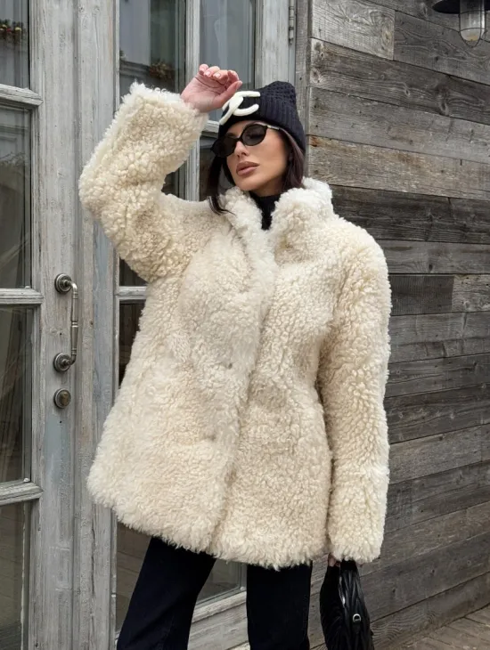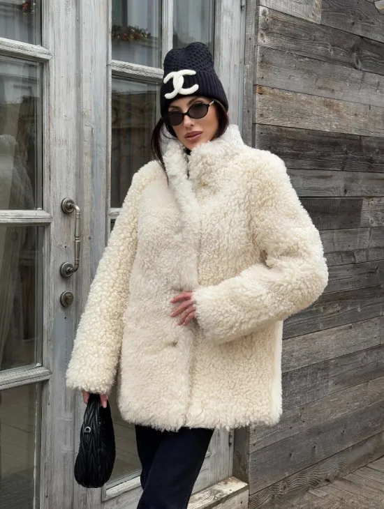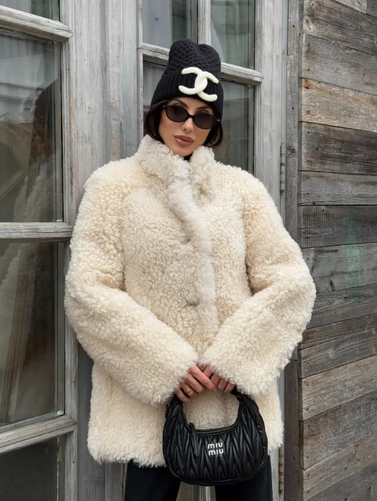 Короткая куртка - дубленка из натуральной овчины кёрли