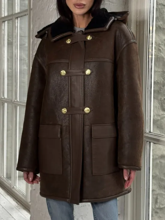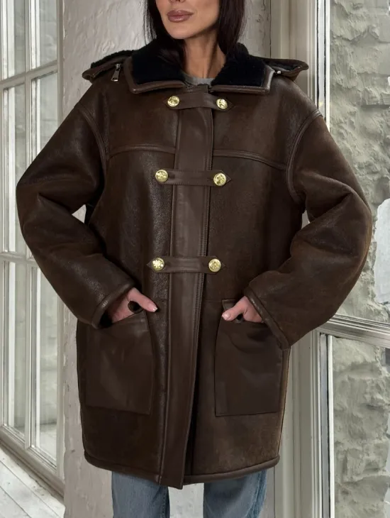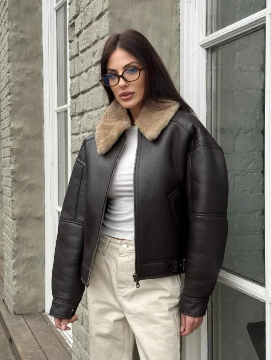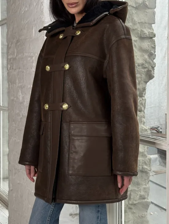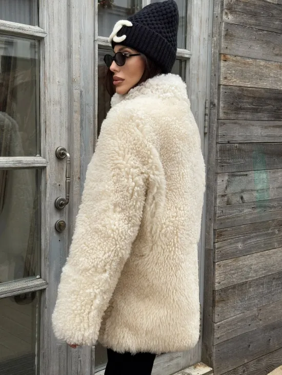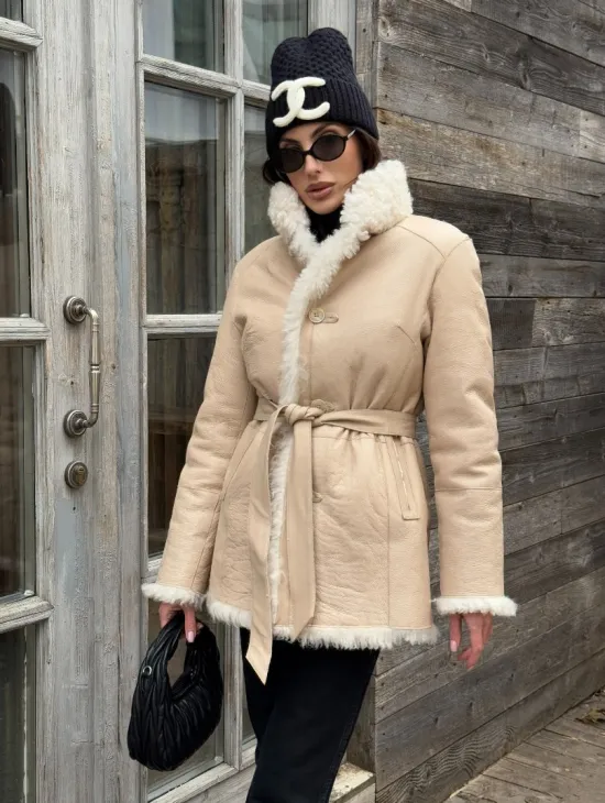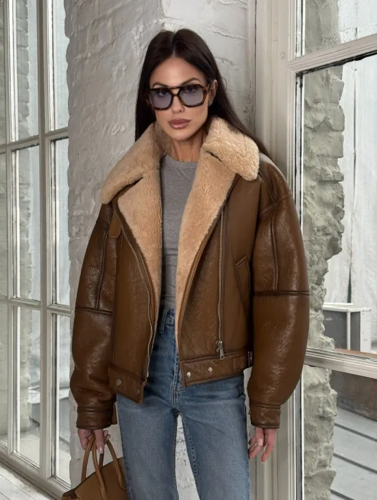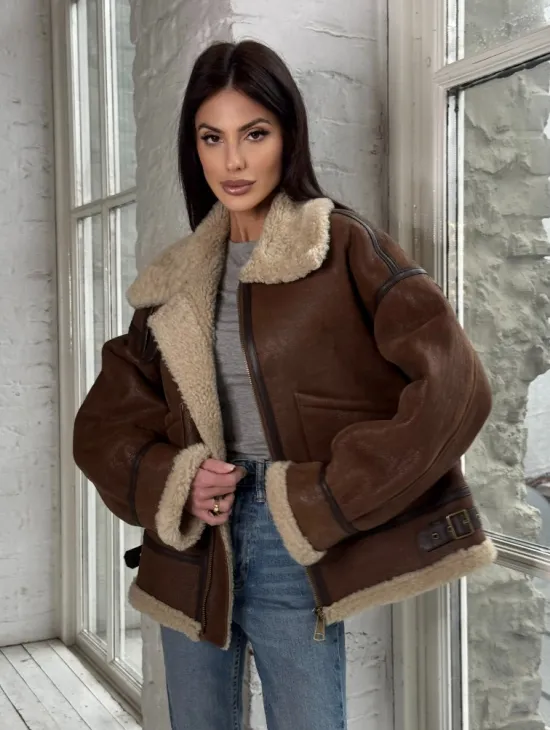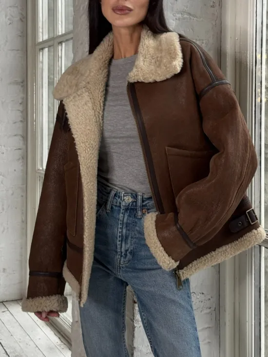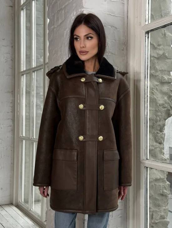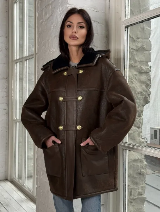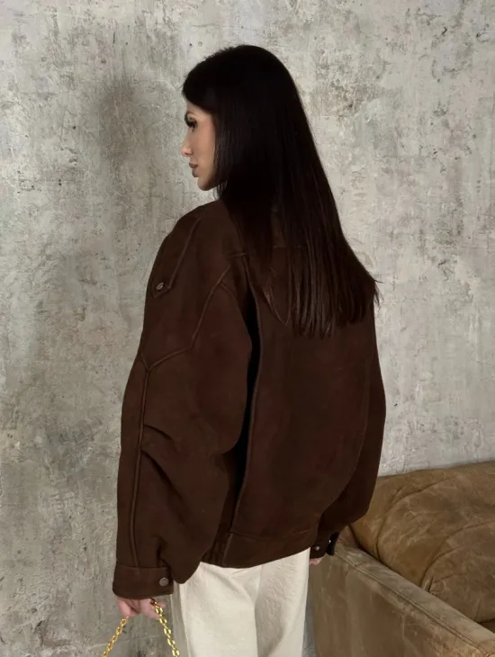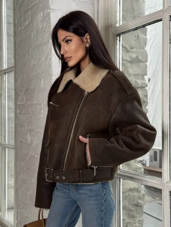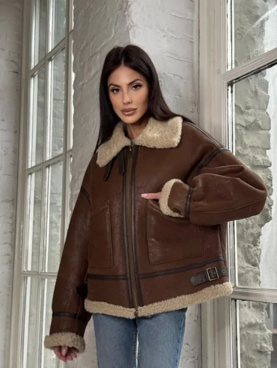 Дубленка женская «Oversize style» со спущенным плечом - цвет виски