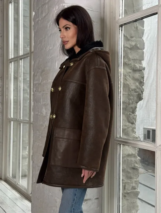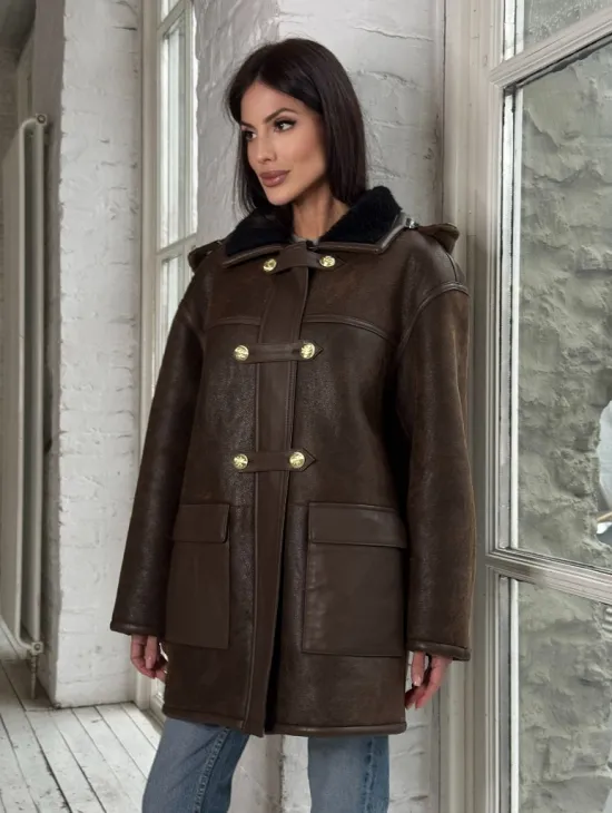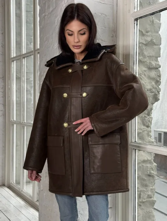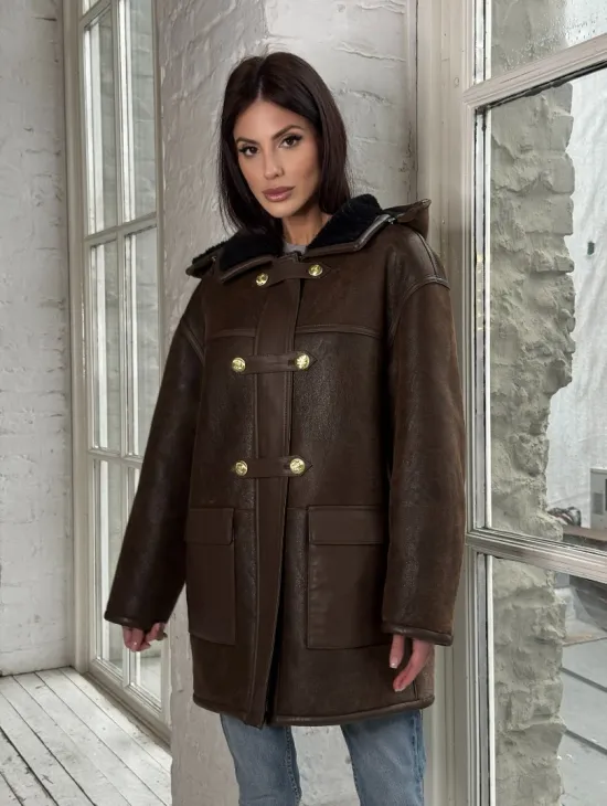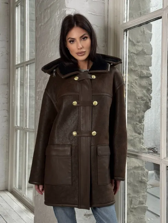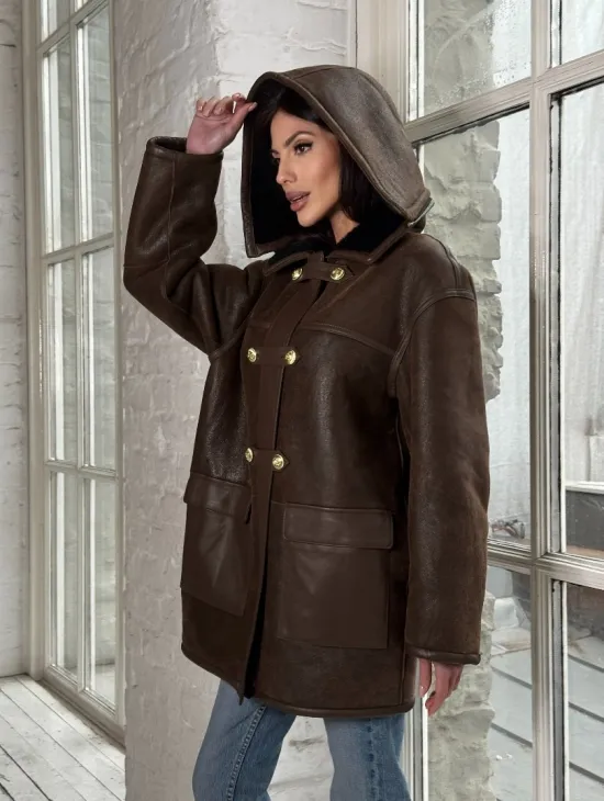 Двухсторонняя дублёнка из овчины с отстегивающимся капюшоном