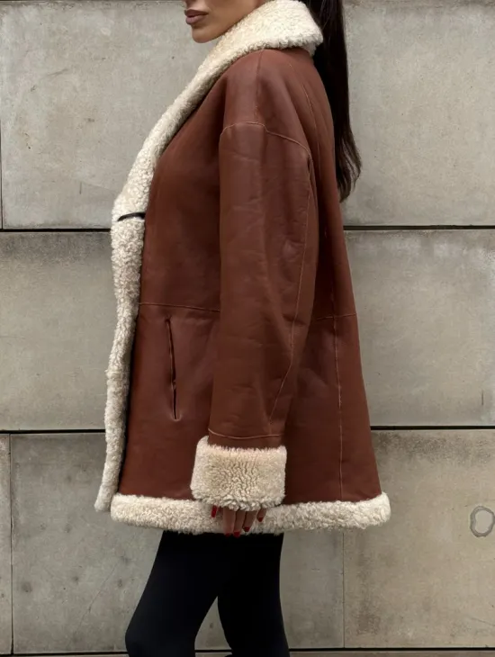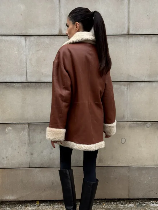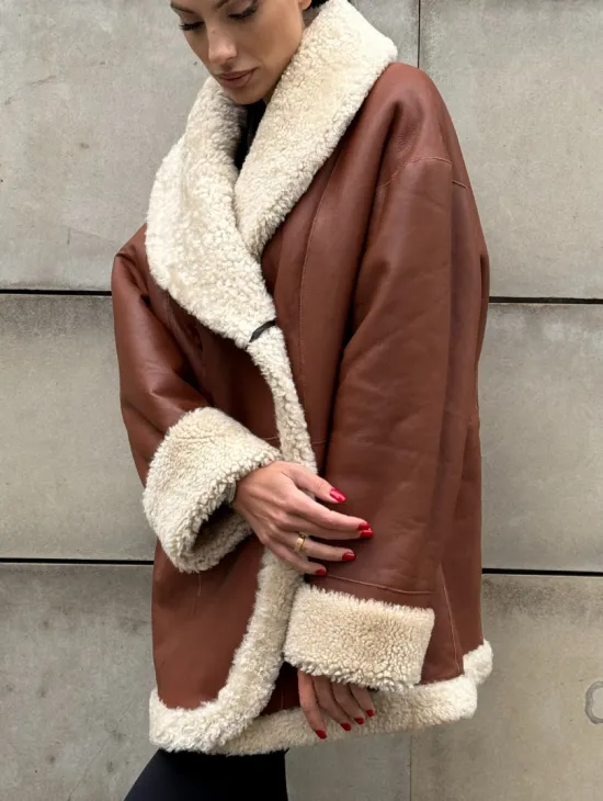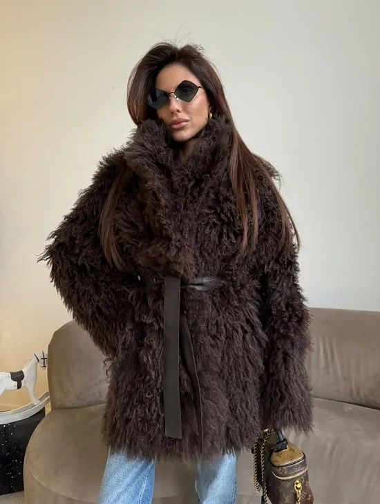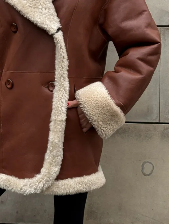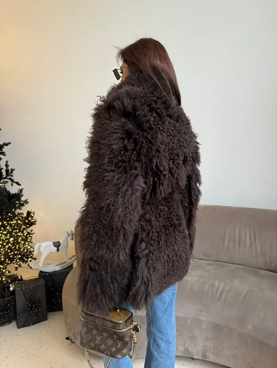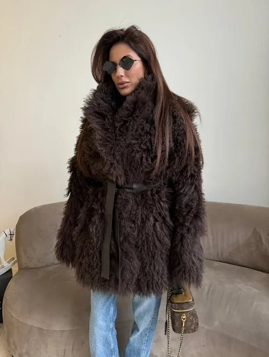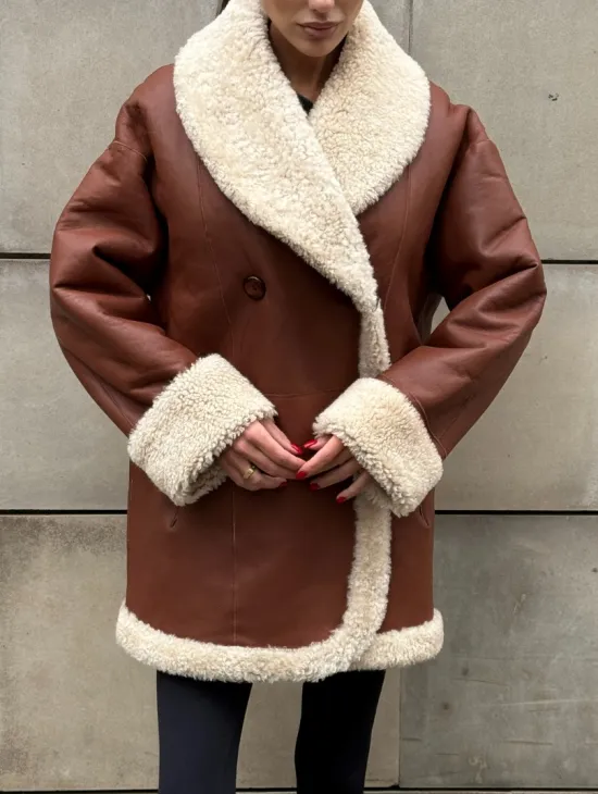 Двусторонняя коричневая дубленка из овчины. Модель предлагается в размерах от 42 до 44 от 46. Оптимальная длина моделей 55-60 см подчеркивает линии вашей фигуры. Эта дубленка станет неотъемлемой частью гардероба для тех, кто предпочитает роскошь и утонченность натуральной кожи.