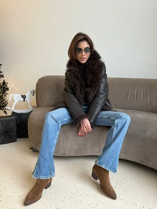Двусторонняя коричневая дубленка из овчины доступна для покупки в нашем шоуруме Furs Studio в Чите, а также предлагается удобная доставка во все города России. Обогатите свой гардероб этой дубленкой, которая прослужит вам многие годы, добавив немного роскоши в ваш повседневный образ.