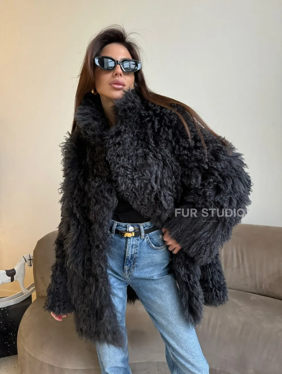 Двусторонняя шуба - дубленка из овчины цвет графит доступна для покупки в нашем шоуруме Furs Studio в Чите, а также предлагается удобная доставка во все города России. Обогатите свой гардероб этой дубленкой, которая прослужит вам многие годы, добавив немного роскоши в ваш повседневный образ.
