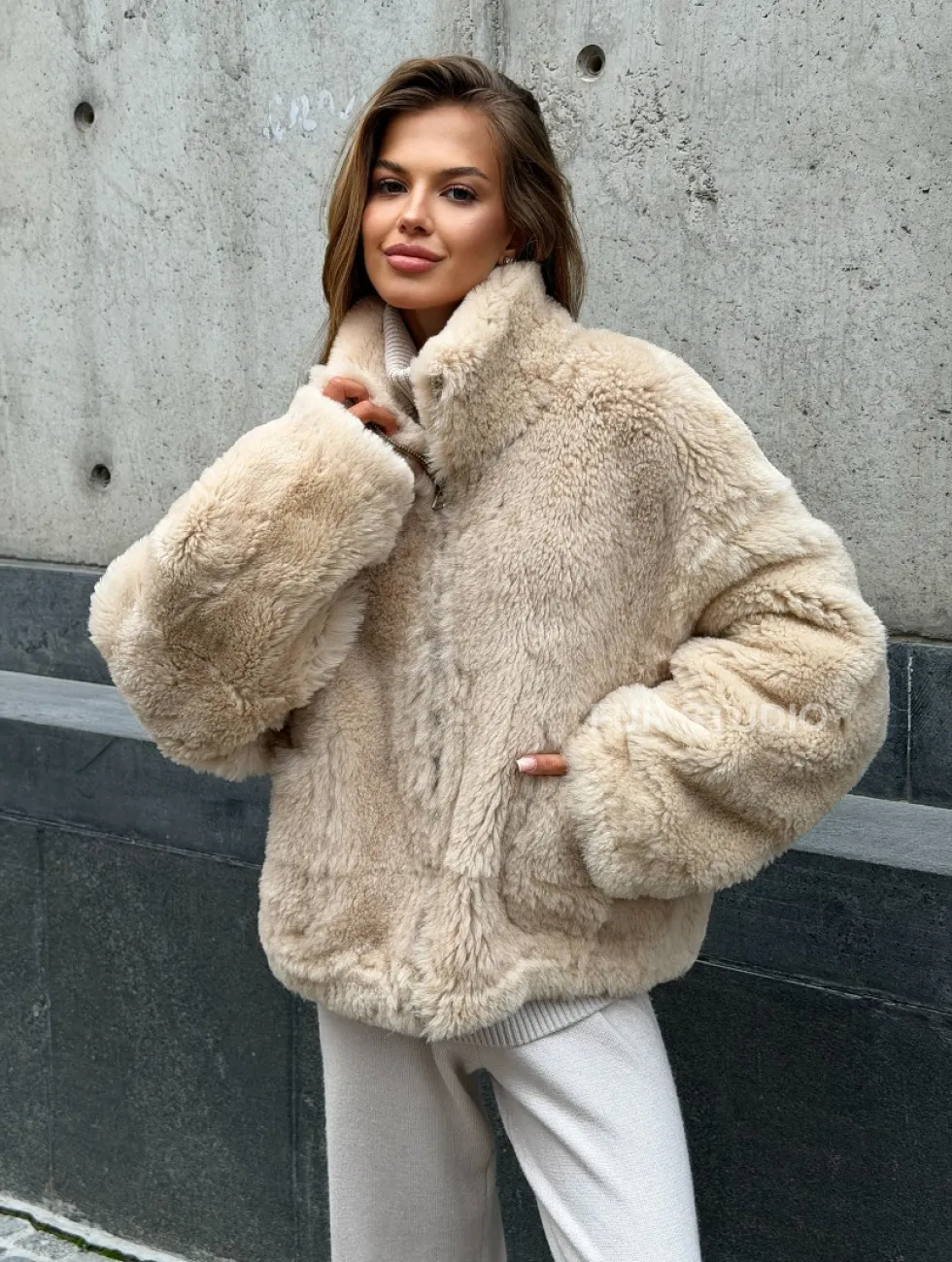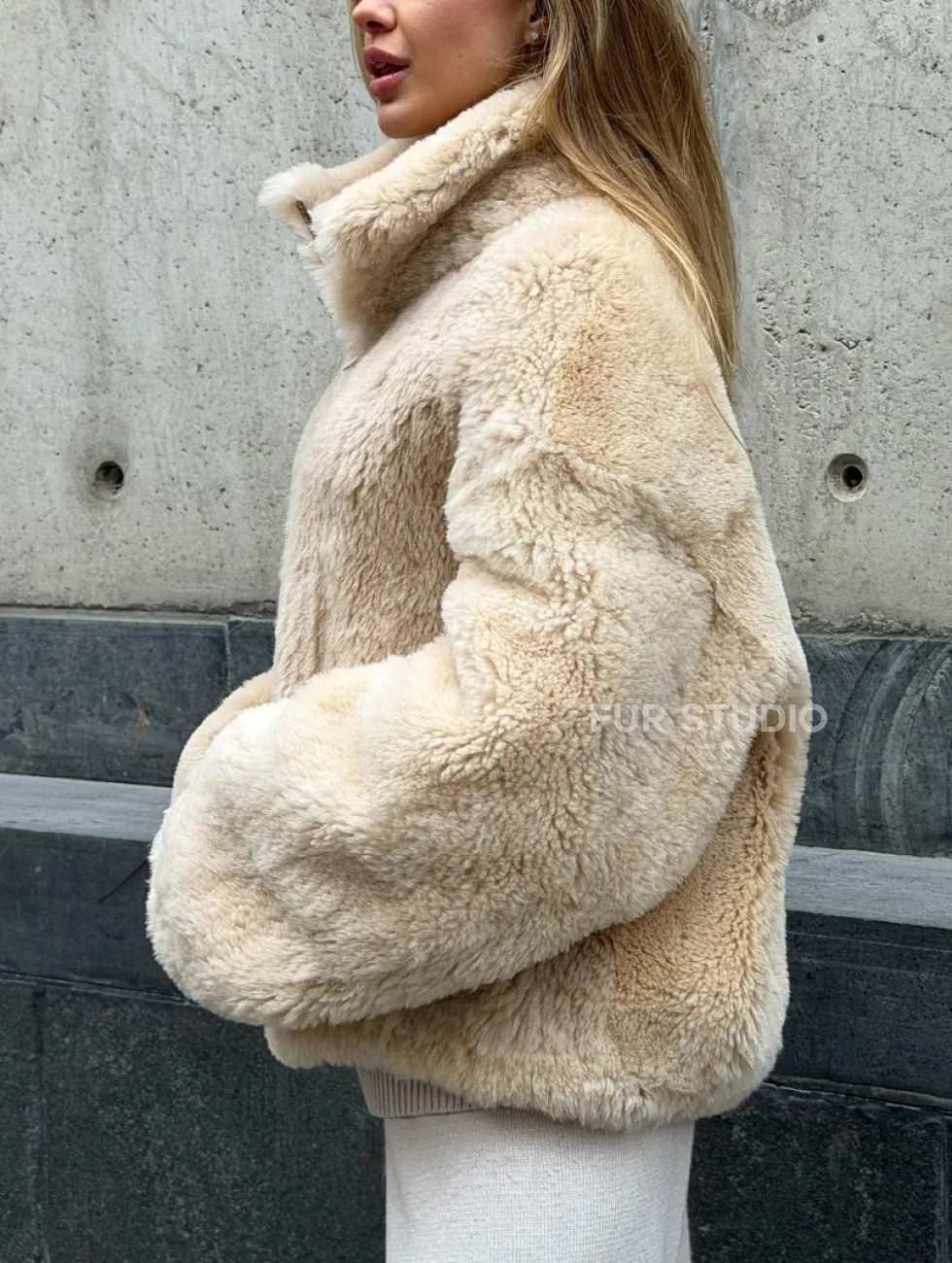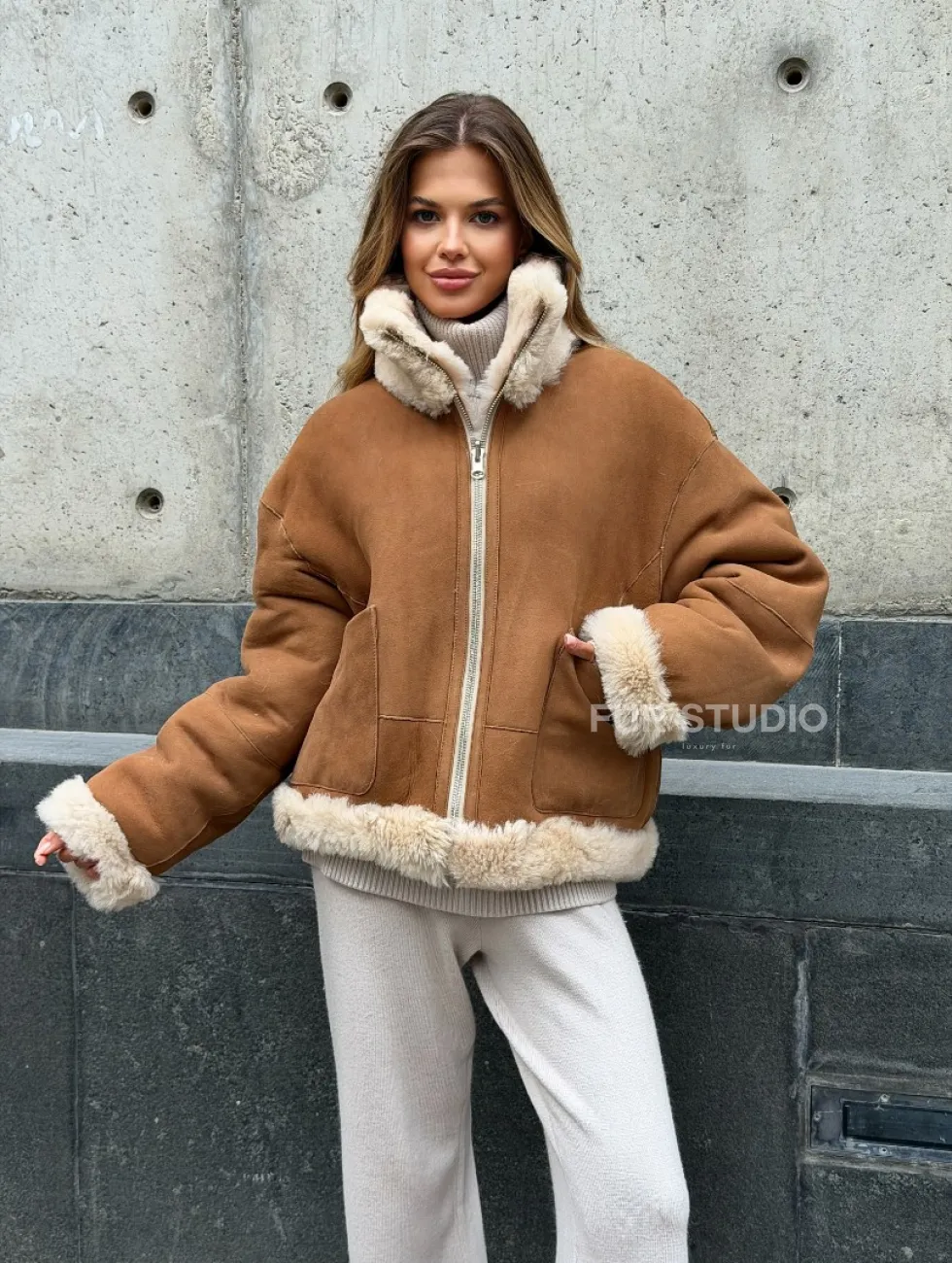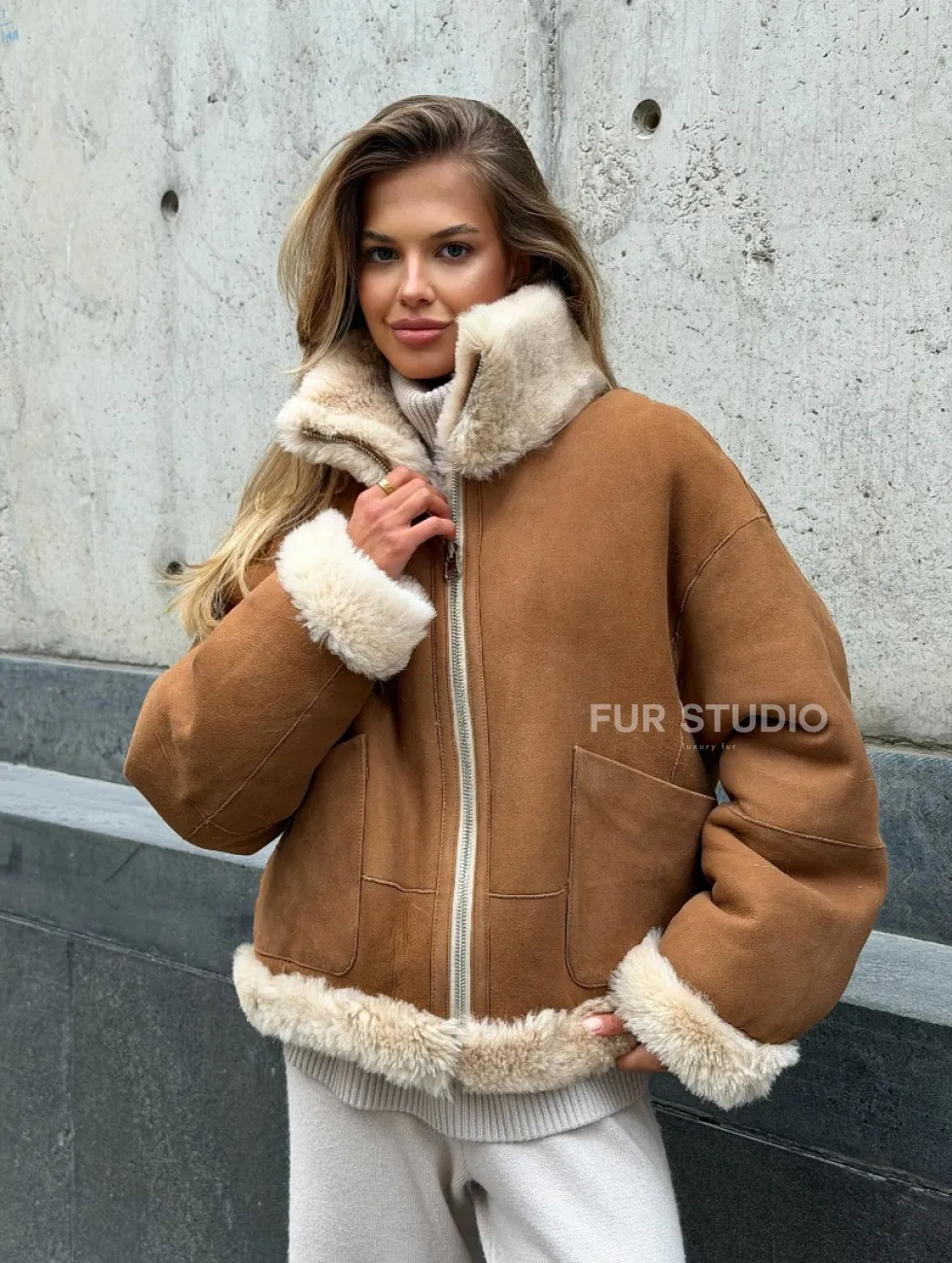 Двухсторонняя короткая дубленка из овчины. Модель предлагается в размерах от 42 до 48. Оптимальная длина моделей 55-60 см подчеркивает линии вашей фигуры. Эта дубленка станет неотъемлемой частью гардероба для тех, кто предпочитает роскошь и утонченность натуральной кожи.