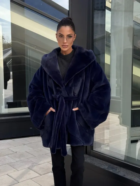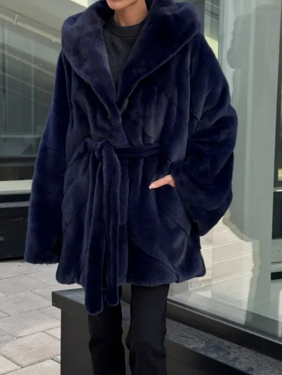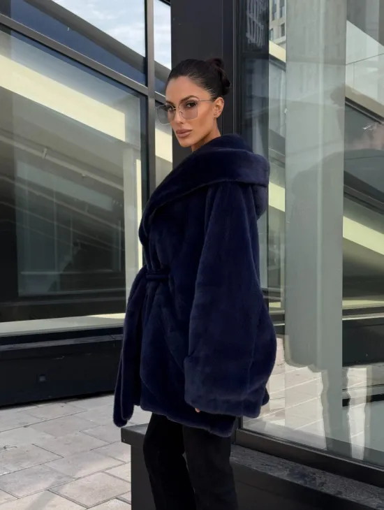 Мех данной шубы аукционная норка, цвет синий. Предлагается в размерах от 42 до 52. Длина модели 115-120 см, что выгодно подчеркивает фигуру девушек. Эта модель идеально подойдет для девушек и женщин, предпочитающих роскошные натуральные меха.