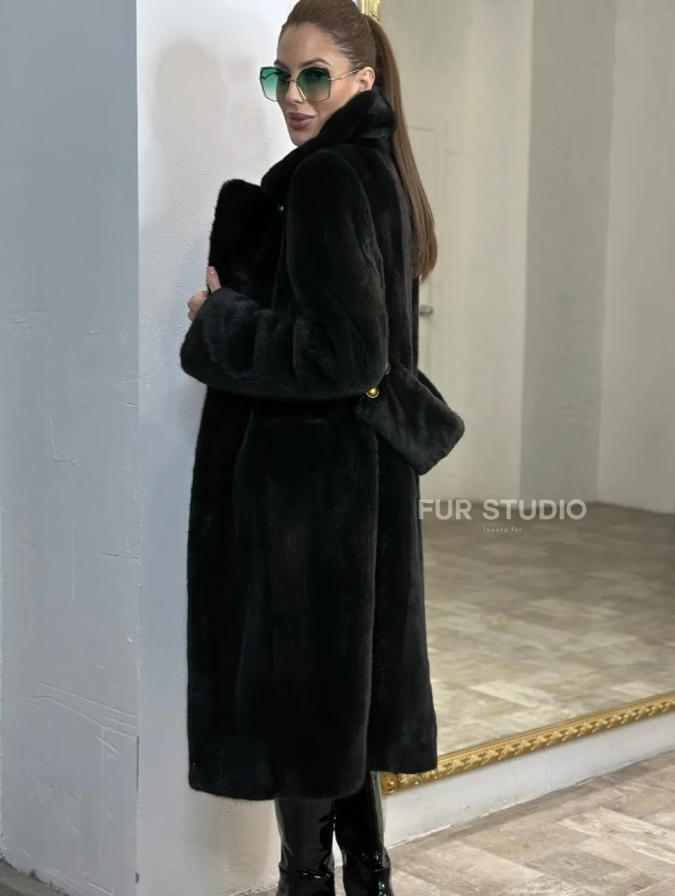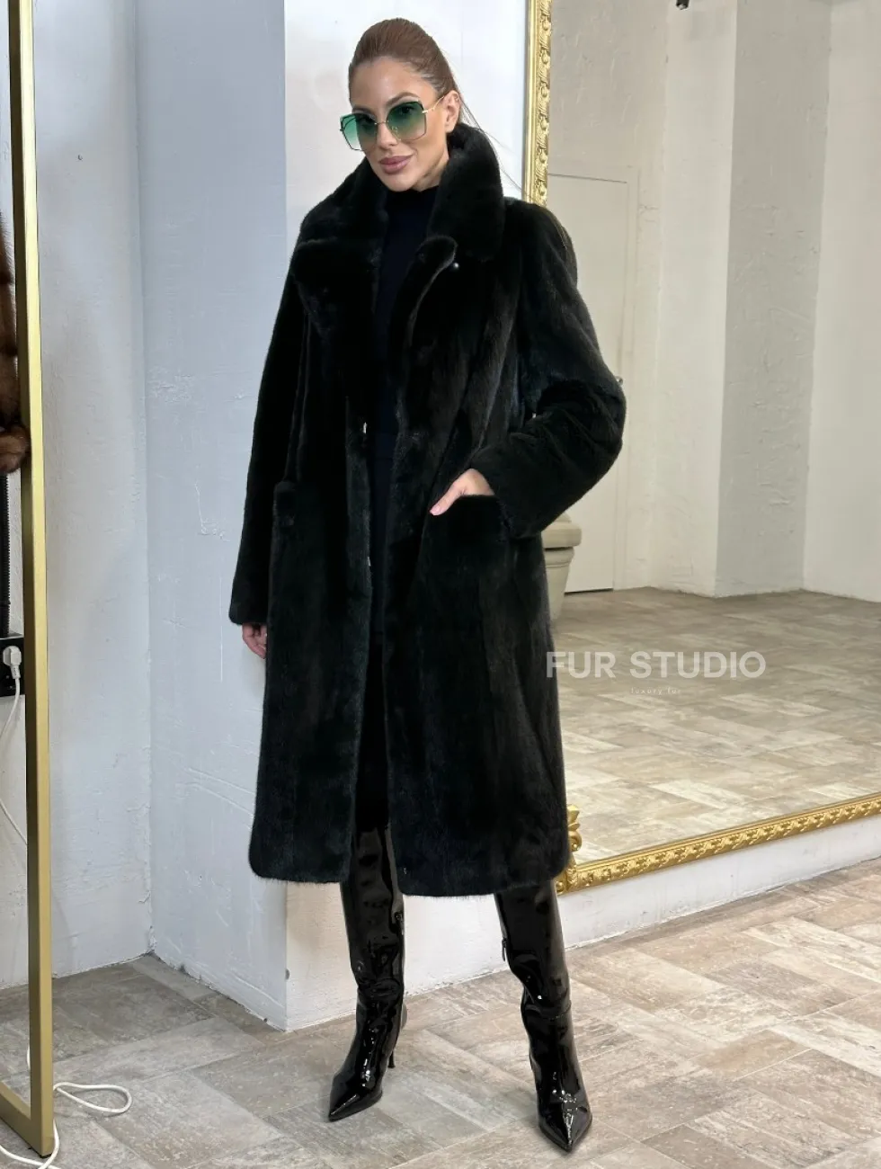 Элегантное пальто из плюшевой норки VELVET - цвет черно-зеленый доступна для покупки в нашем шоуруме Furs Studio в Чите. У нас так же есть доставка во все города России. Добавьте немного роскоши в свой гардероб с этой шубой, которая будет служить вам многие годы.