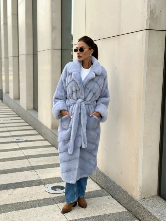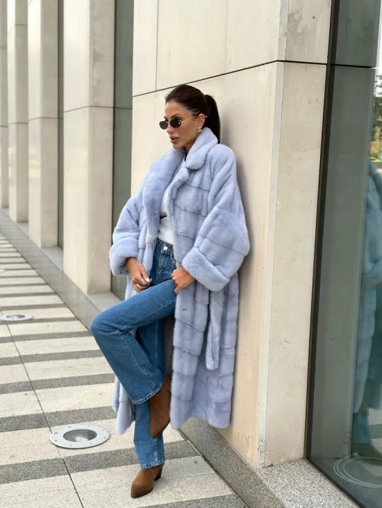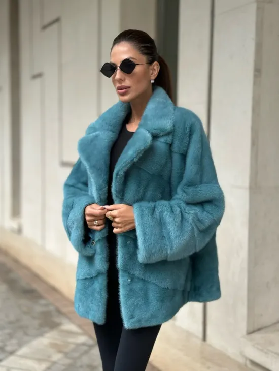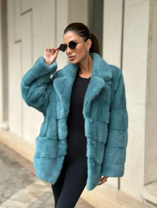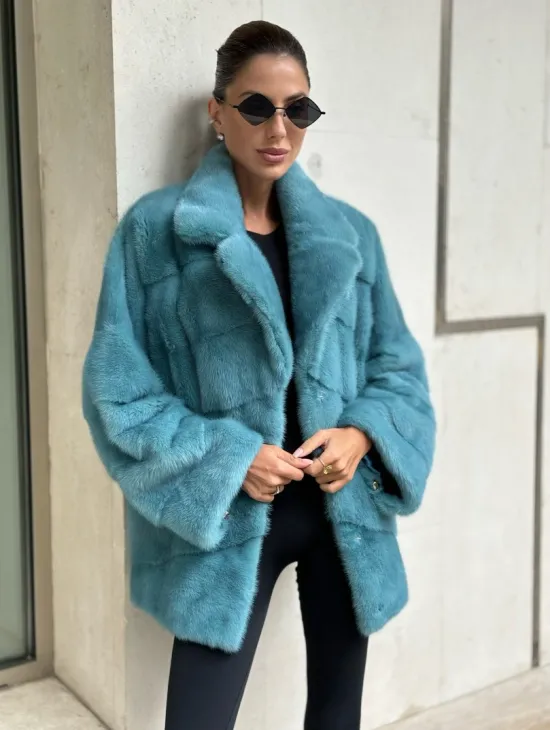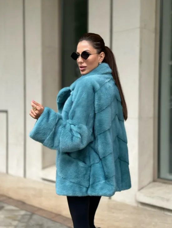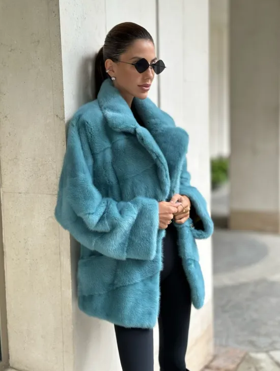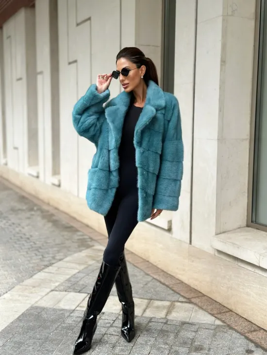 Элегантный полушубок из скандинавской норки небесно-голубого оттенка доступна для покупки в нашем шоуруме Furs Studio в Чите. У нас так же есть доставка во все города России. Добавьте немного роскоши в свой гардероб с этой шубой, которая будет служить вам многие годы.