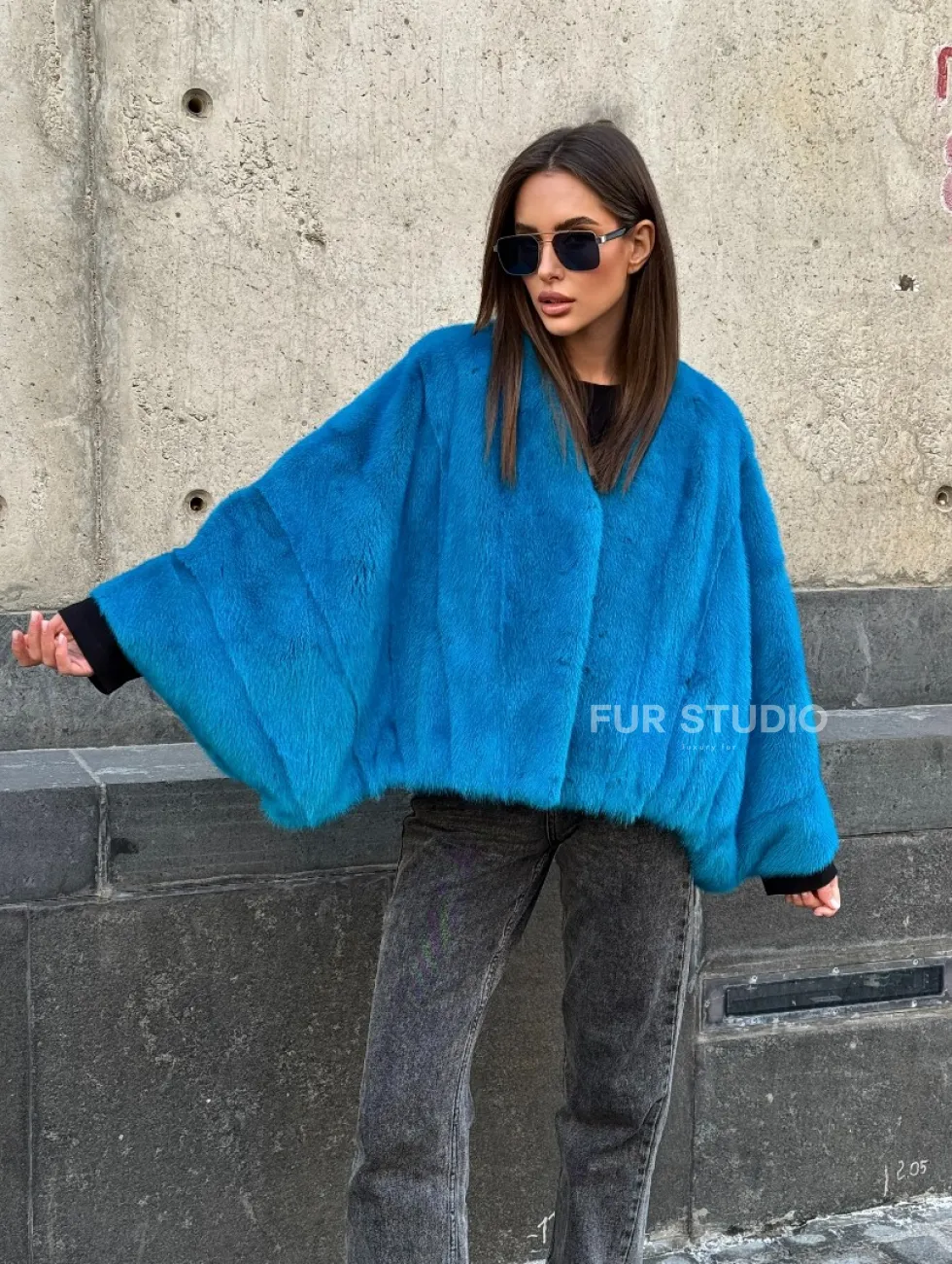 Голубое норковое болеро "Летучая мышь" без воротника доступна для покупки в нашем шоуруме Furs Studio в Чите. У нас так же есть доставка во все города России. Добавьте немного роскоши в свой гардероб с этой шубой, которая будет служить вам многие годы.