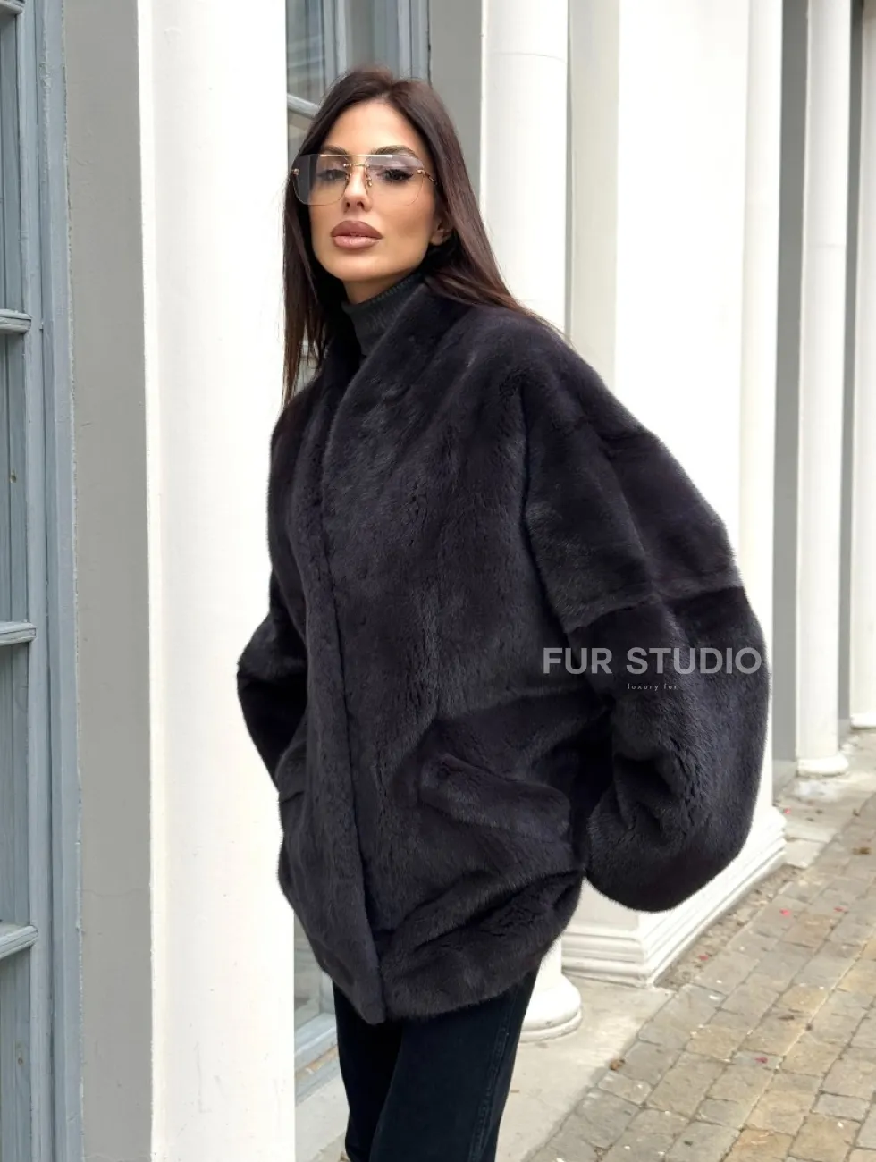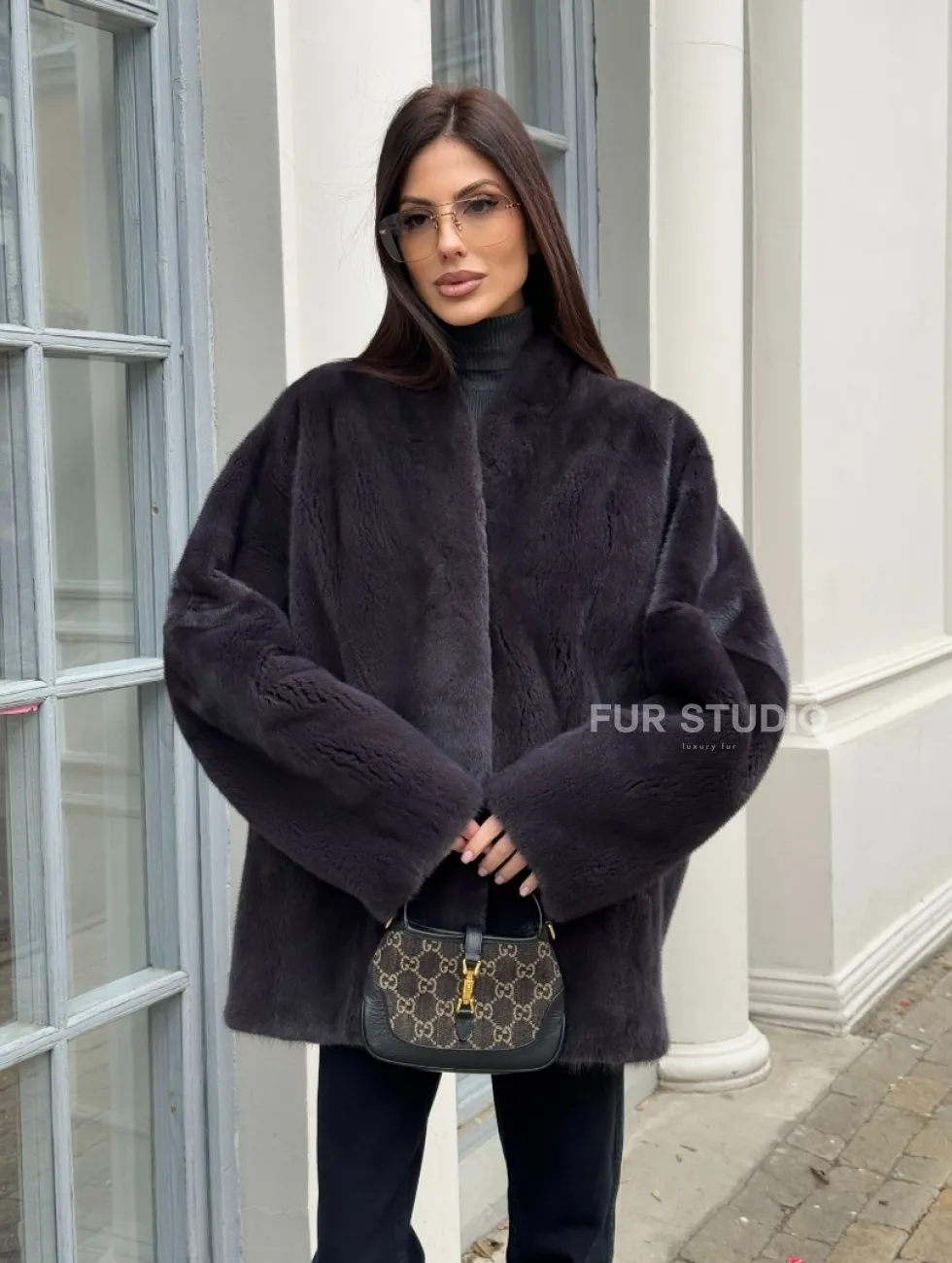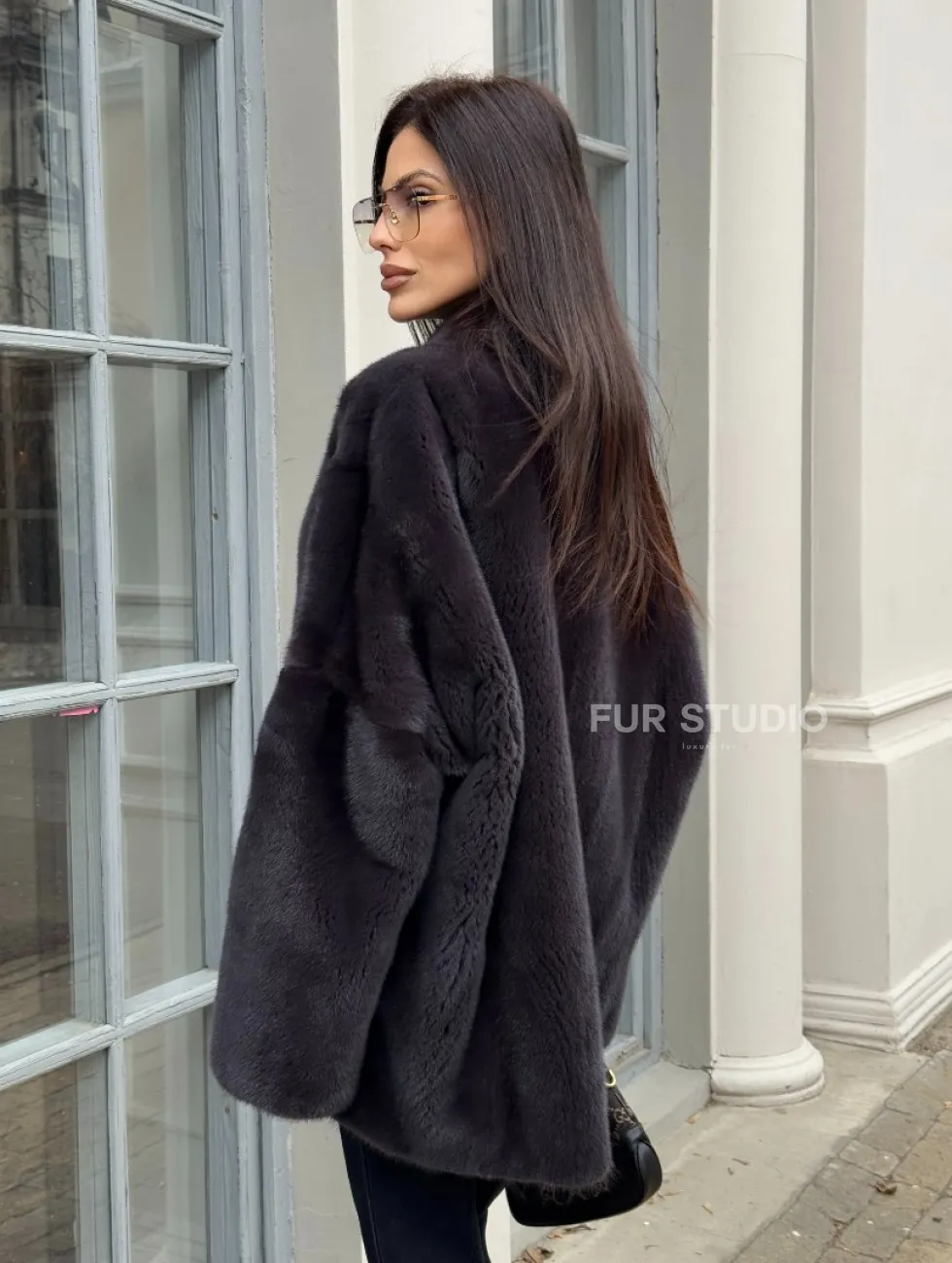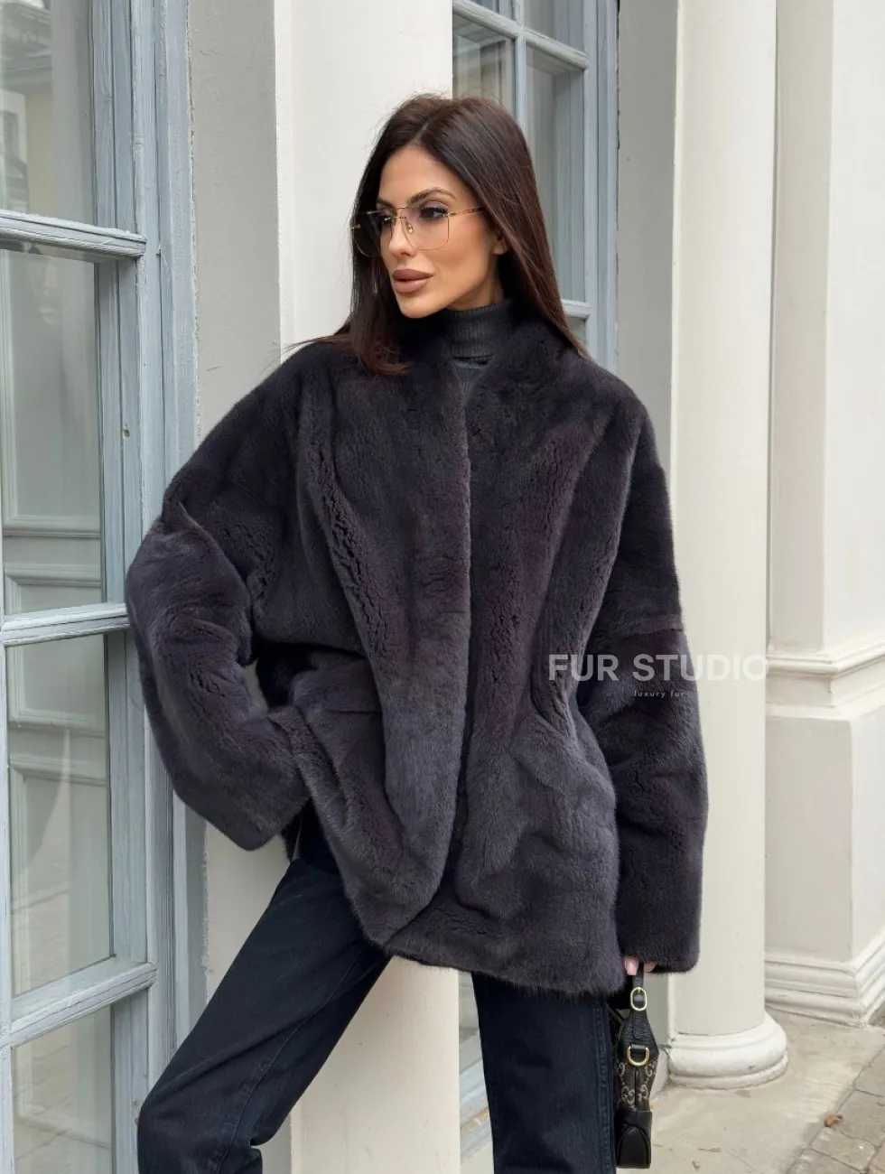 Графитовый норковый жакет с V-образным воротником доступна для покупки в нашем шоуруме Furs Studio в Чите. У нас так же есть доставка во все города России. Добавьте немного роскоши в свой гардероб с этой шубой, которая будет служить вам многие годы.
