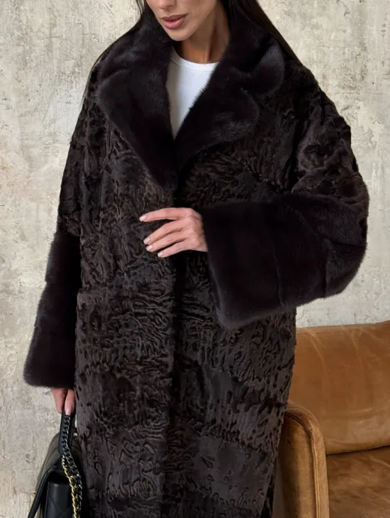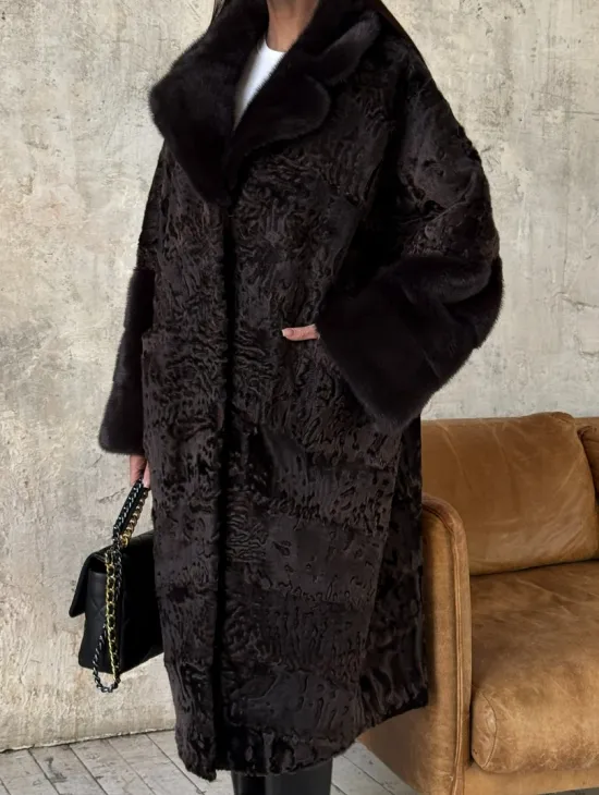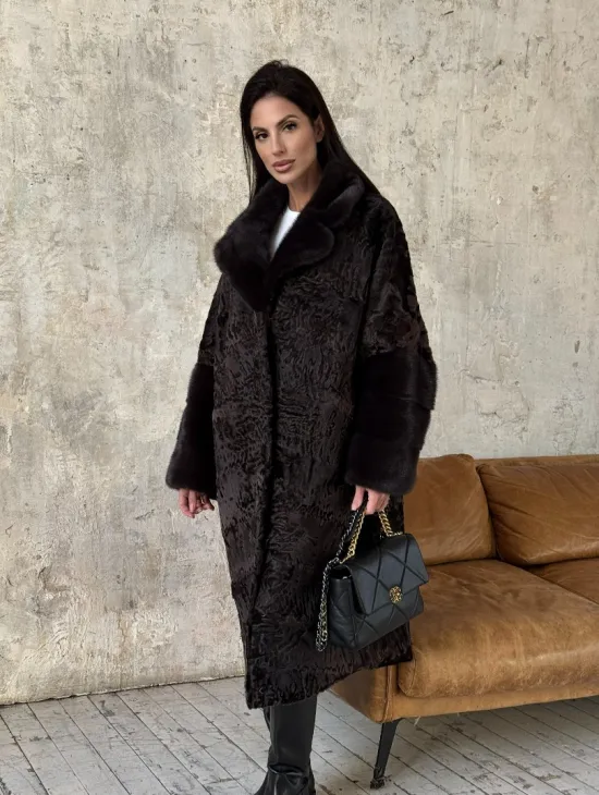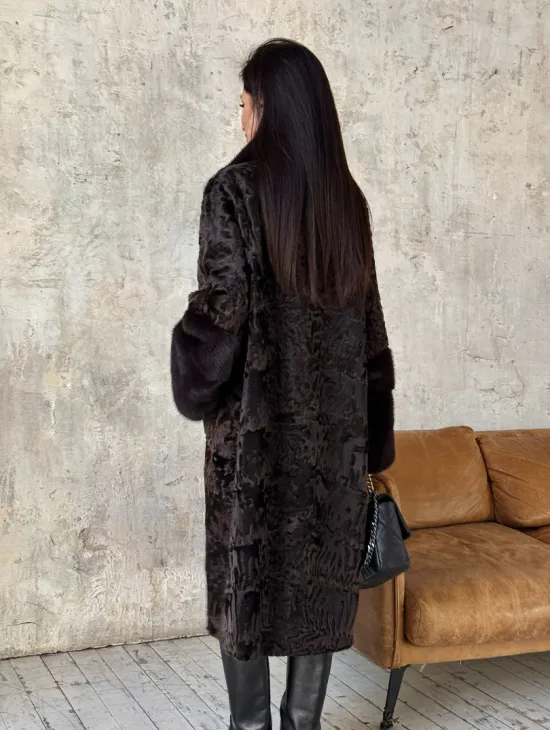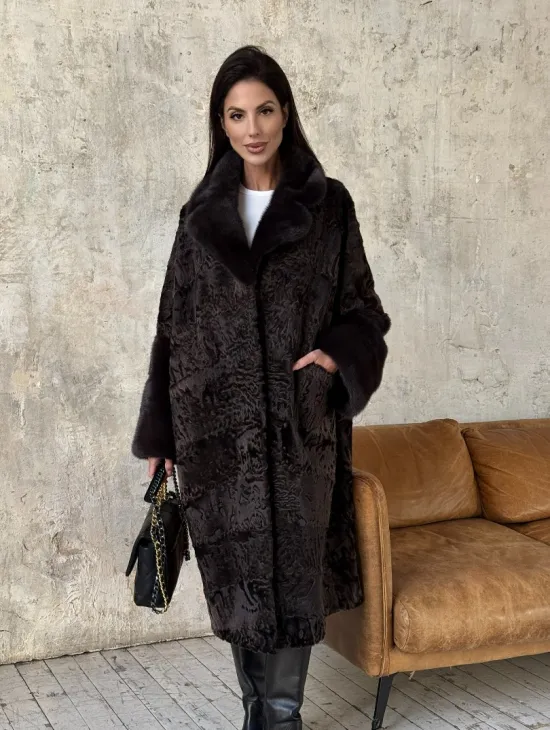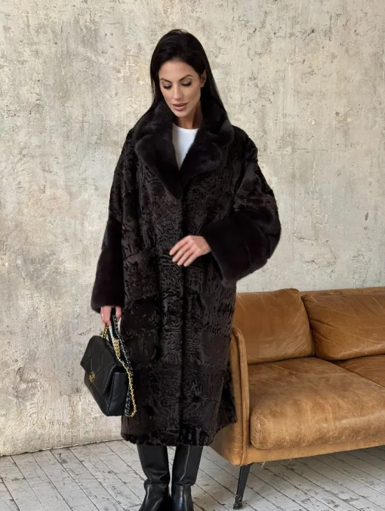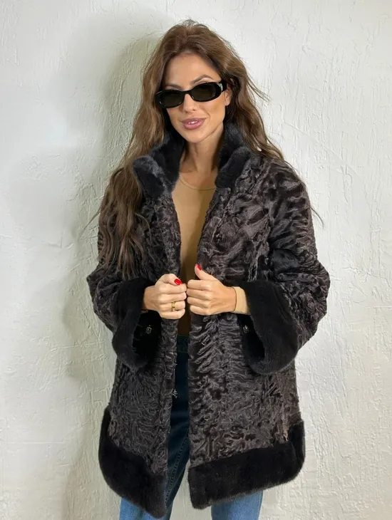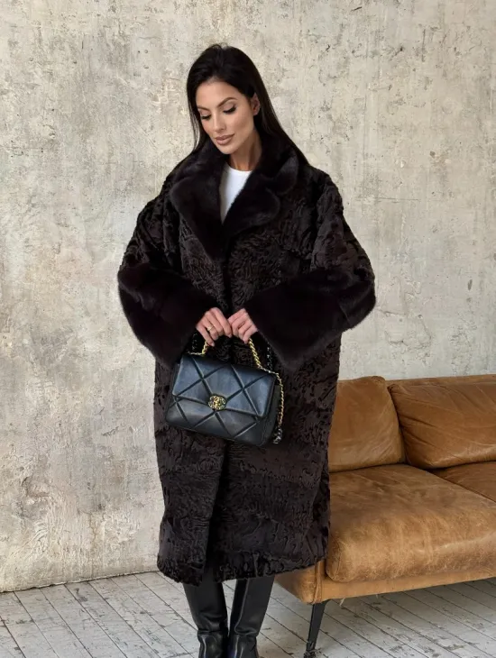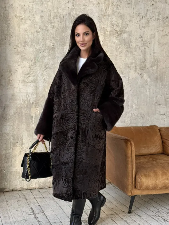 Кимоно каракульча английский воротник паркет - коричневый доступна для покупки в нашем шоуруме Furs Studio в Чите. У нас так же есть доставка во все города России. Добавьте немного роскоши в свой гардероб с этой шубой, которая будет служить вам многие годы.
