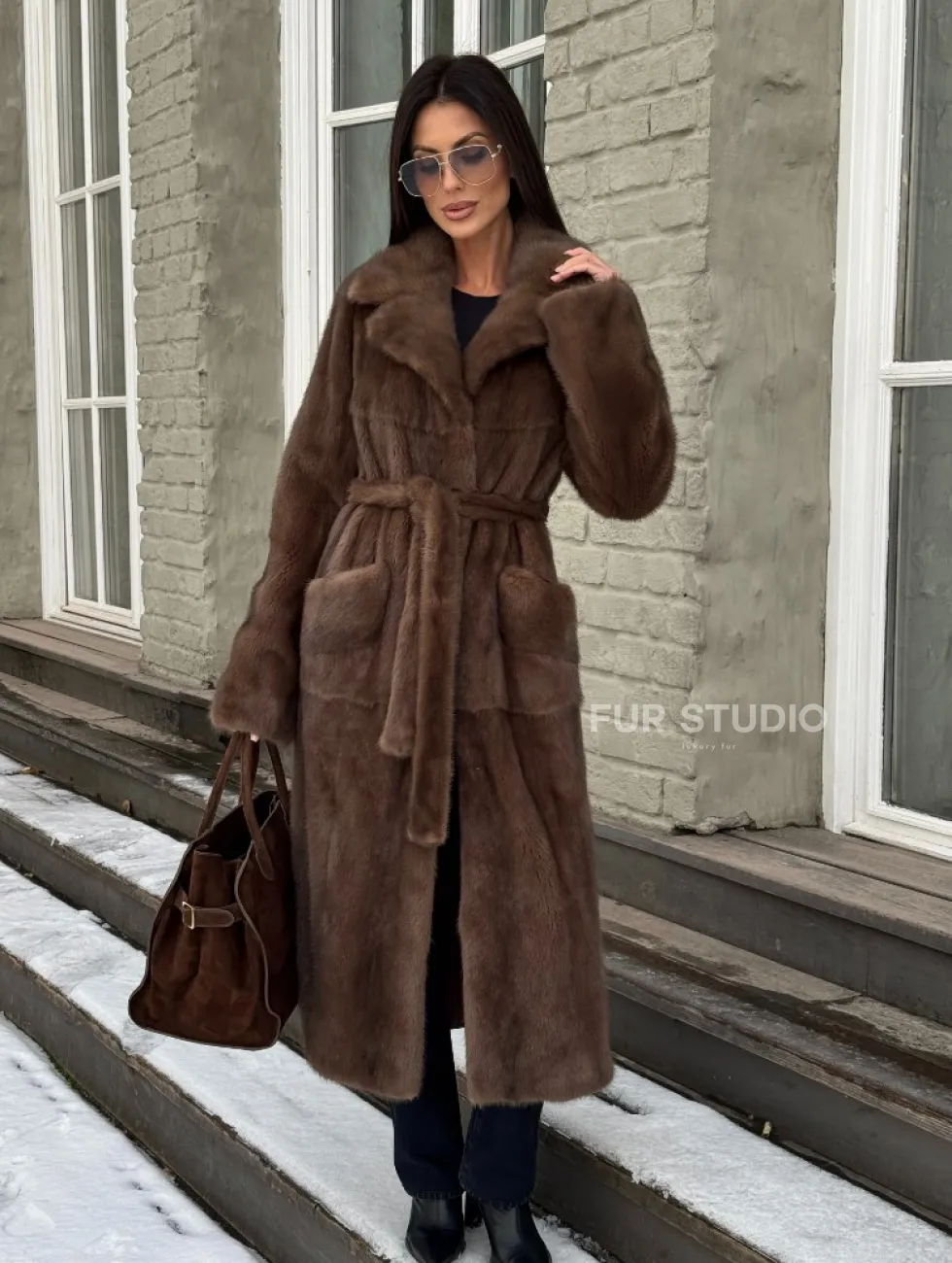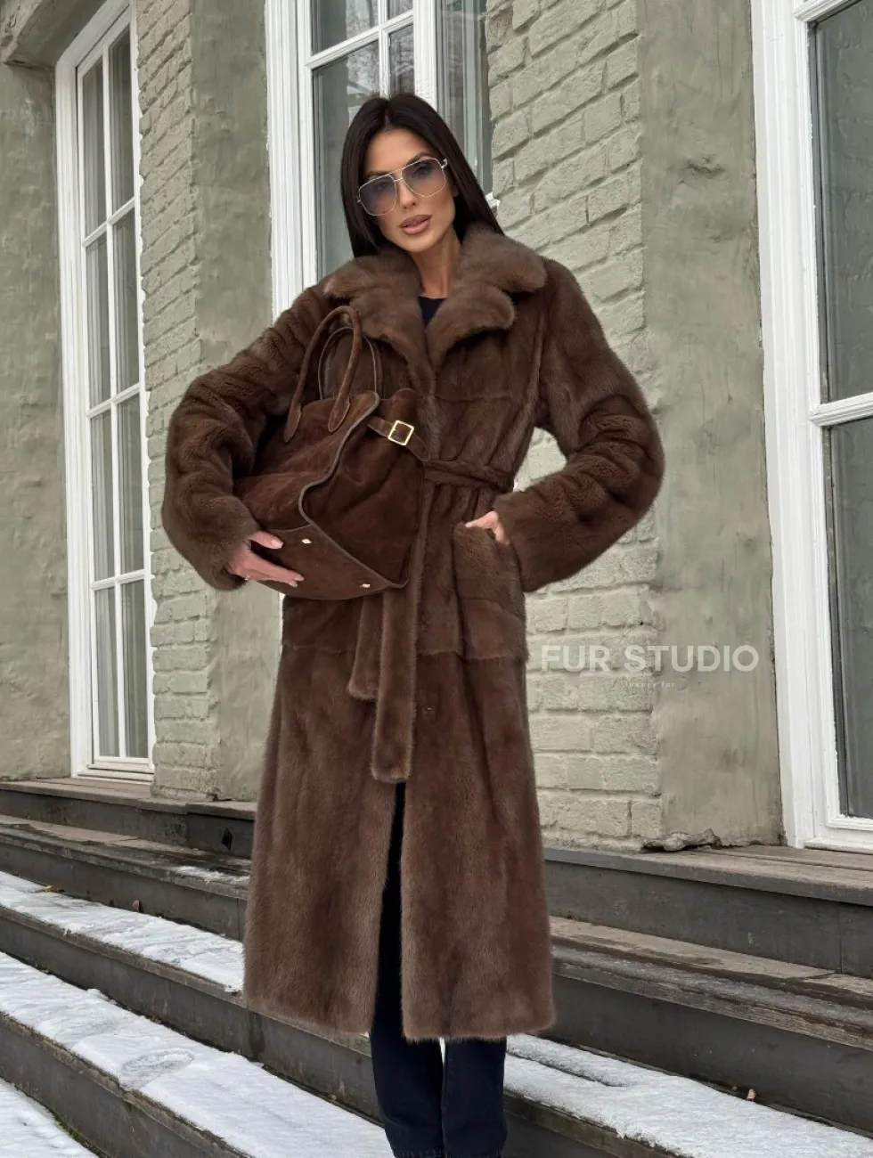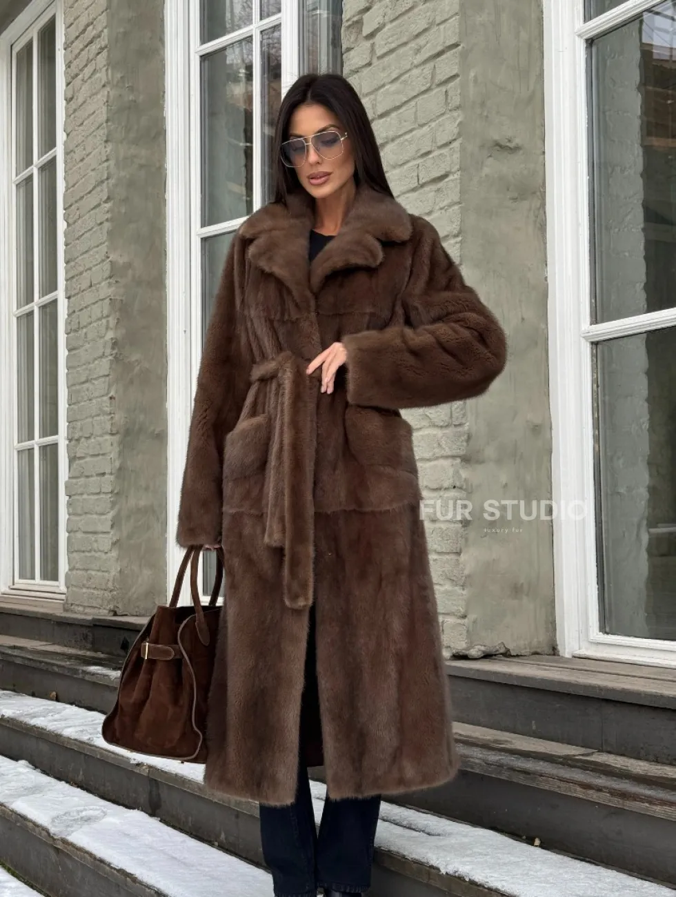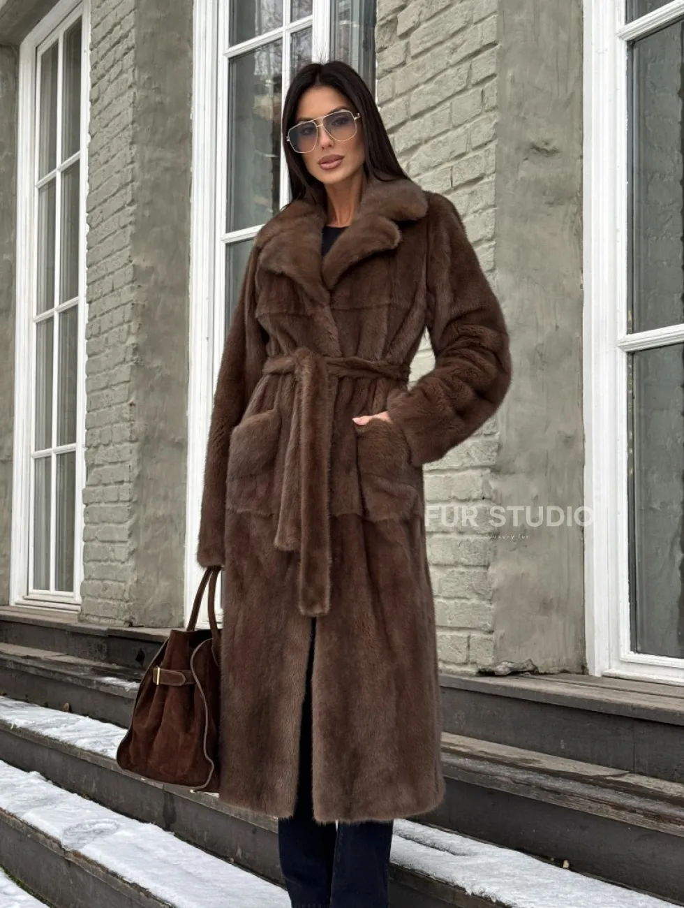 Классическая женская норковая шуба в цвете соболь с поясом и накладными карманами доступна для покупки в нашем шоуруме Furs Studio в Чите. У нас так же есть доставка во все города России. Добавьте немного роскоши в свой гардероб с этой шубой, которая будет служить вам многие годы.