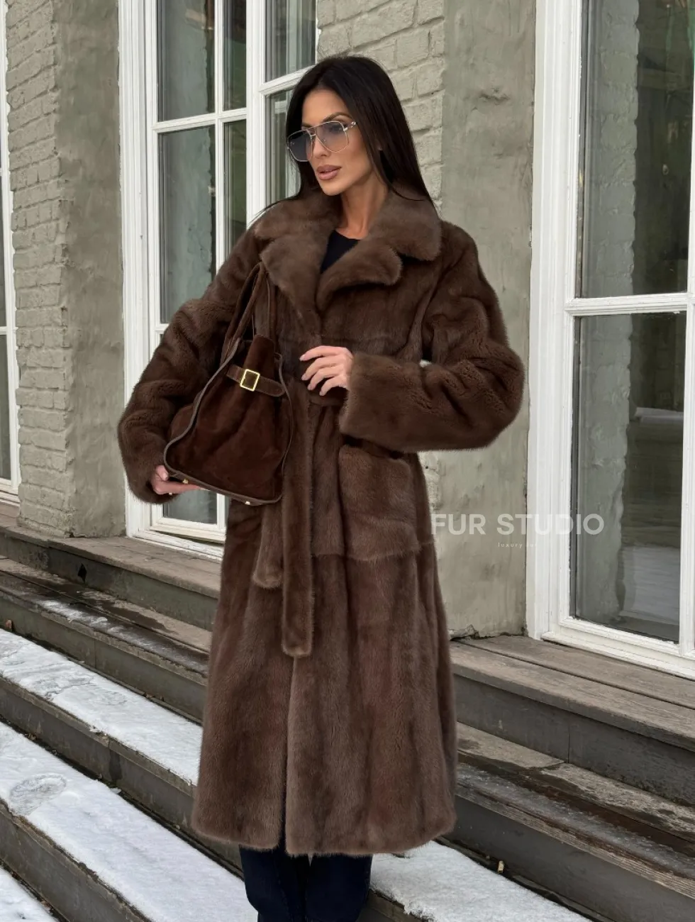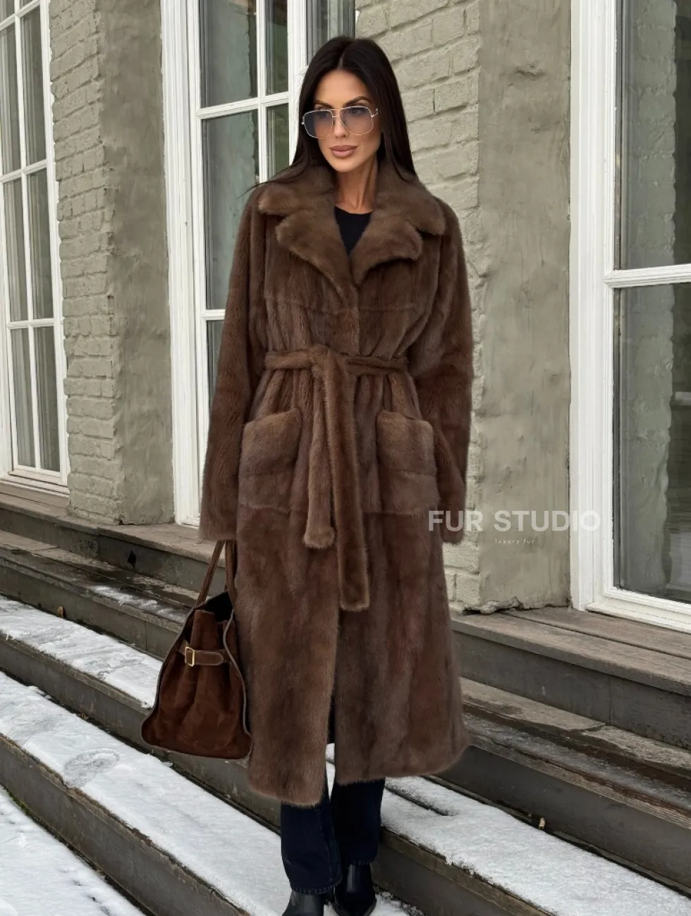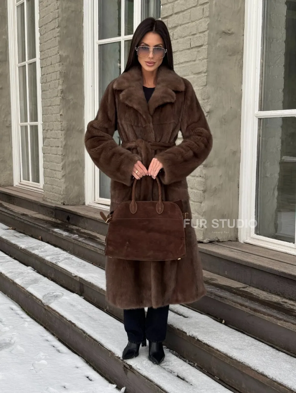 Классическая женская норковая шуба в цвете соболь с поясом и накладными карманами доступна для покупки в нашем шоуруме Furs Studio в Чите. У нас так же есть доставка во все города России. Добавьте немного роскоши в свой гардероб с этой шубой, которая будет служить вам многие годы.