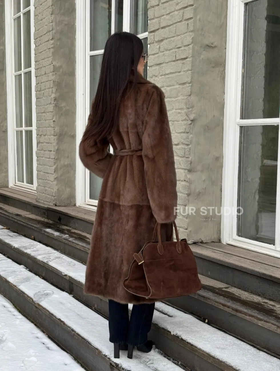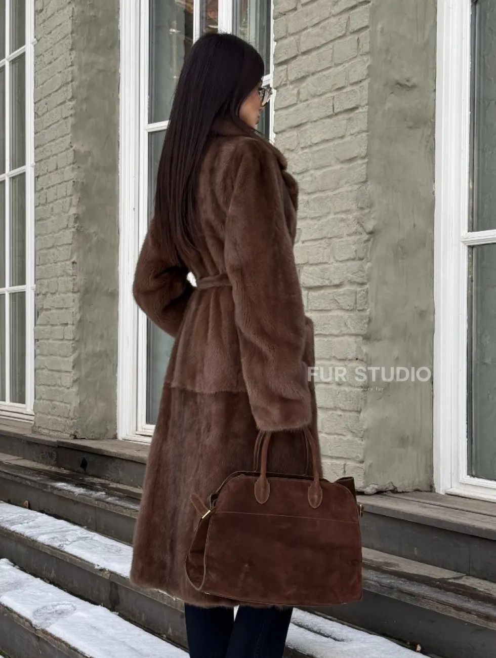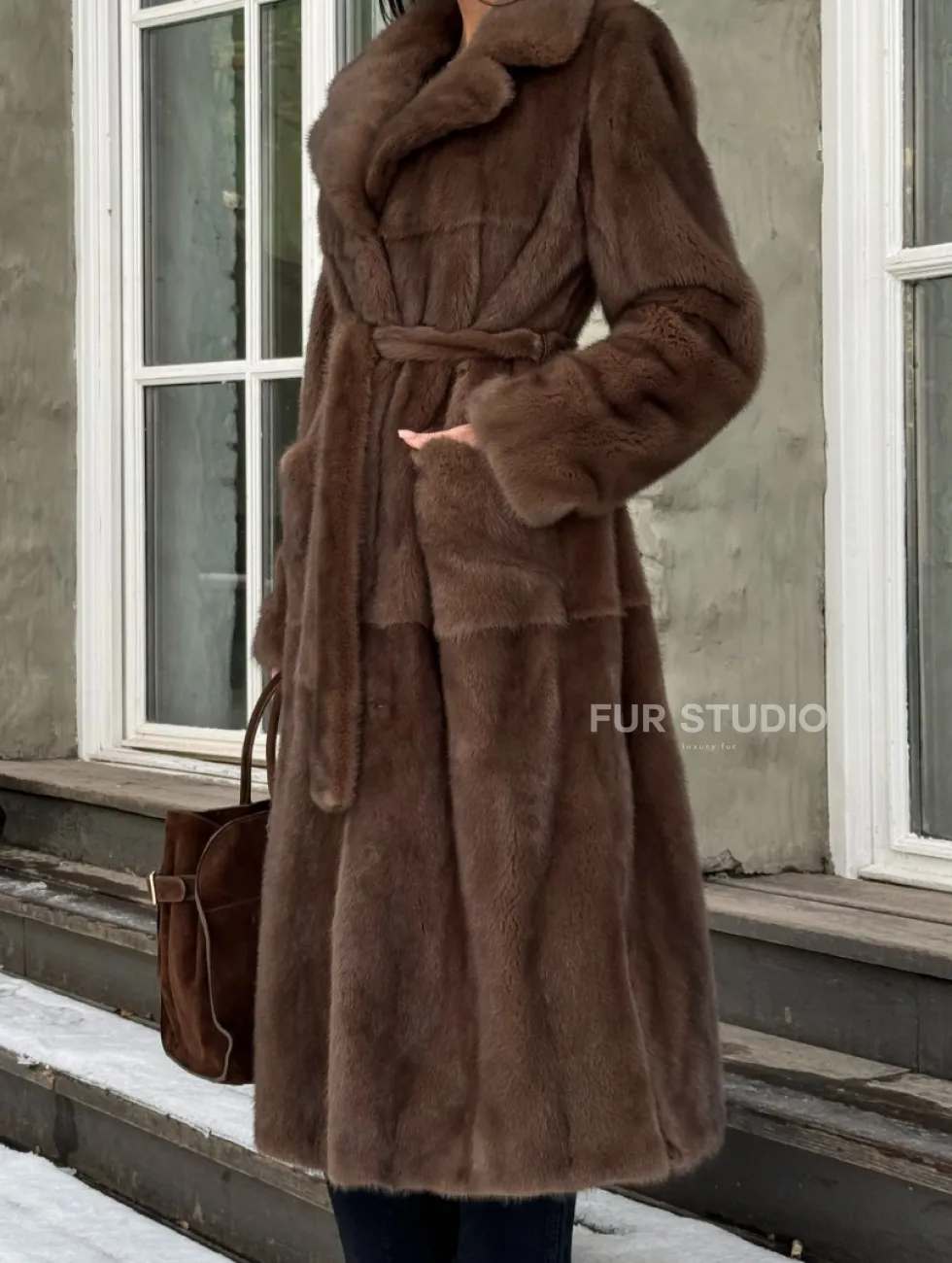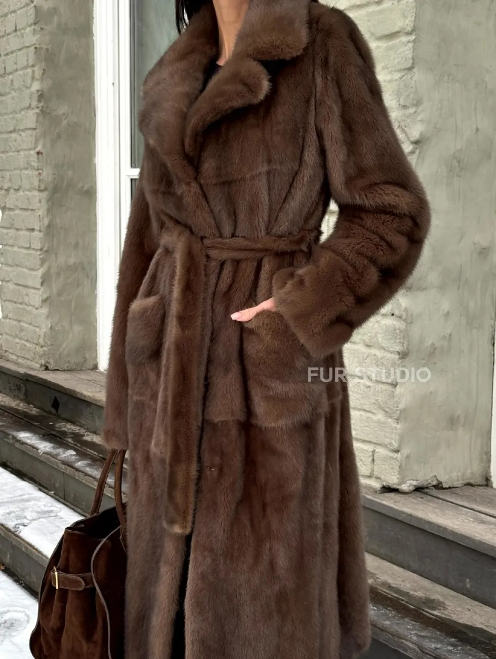 Классическая женская норковая шуба в цвете соболь с поясом и накладными карманами доступна для покупки в нашем шоуруме Furs Studio в Чите. У нас так же есть доставка во все города России. Добавьте немного роскоши в свой гардероб с этой шубой, которая будет служить вам многие годы.