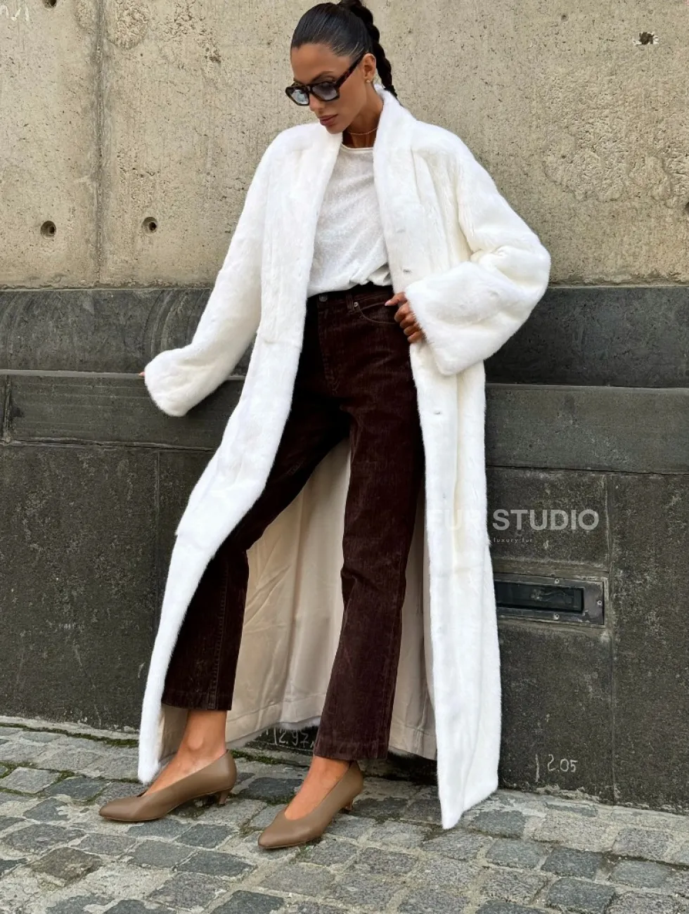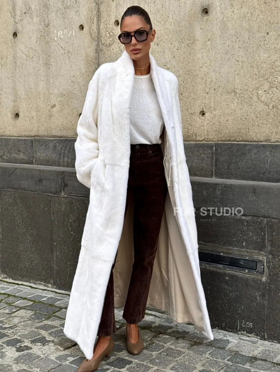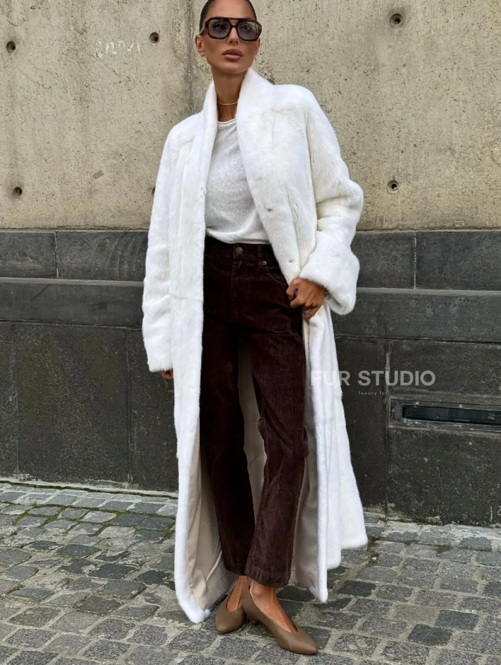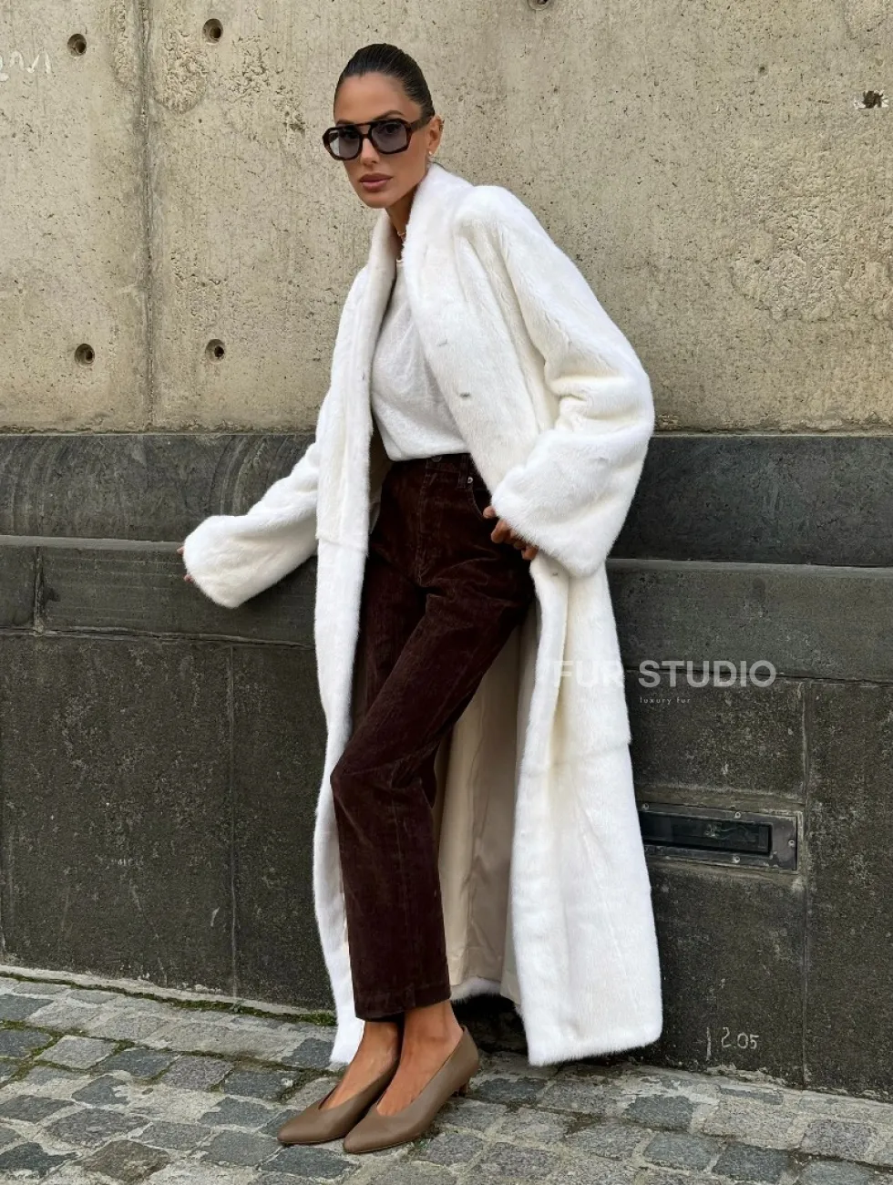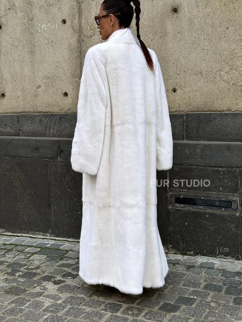 Мех данной шубы аукционная норка, цвет белый. Предлагается в размерах от 42 до 52 (инд.пошив от 54 до 66). Длина модели 125-130 см, что выгодно подчеркивает фигуру девушек. Эта модель идеально подойдет для девушек и женщин, предпочитающих роскошные натуральные меха.